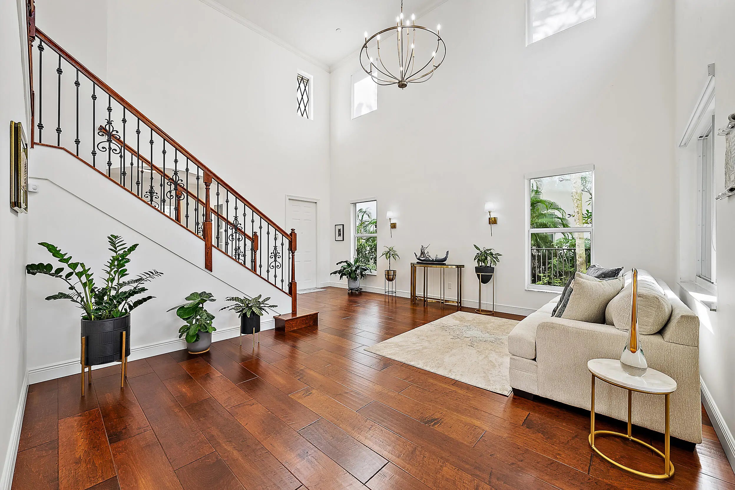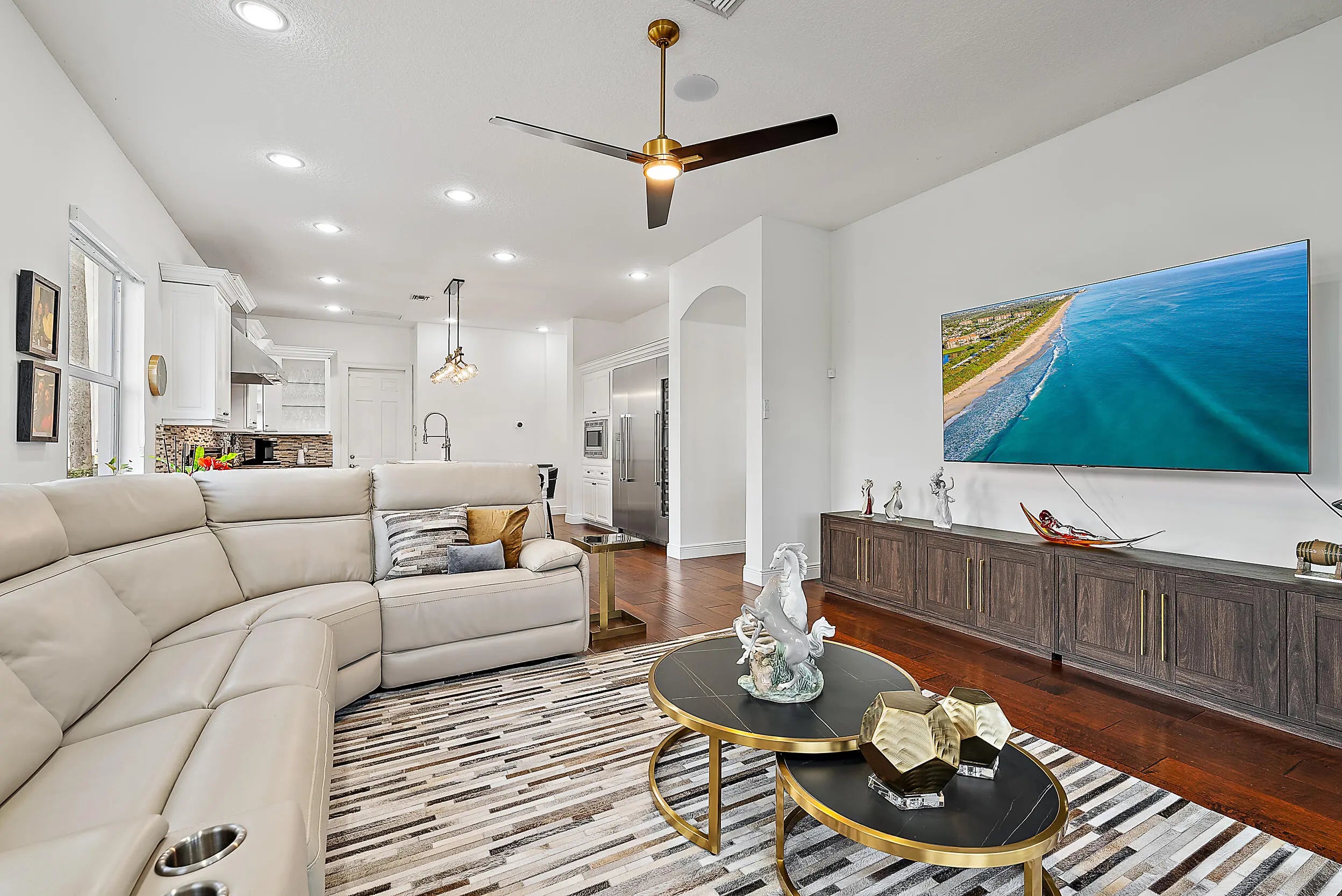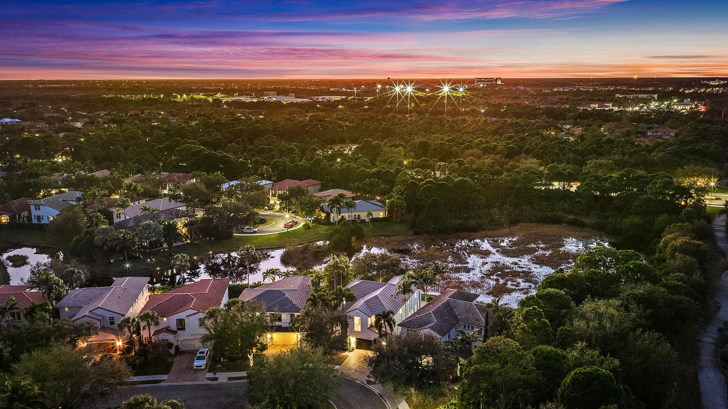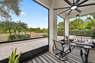 Welcome to this beautifully updated residence located in the Audubon Signature Sanctuary community of Evergrene in Palm Beach Gardens. Offering three spacious bedrooms, three full baths, and a thoughtfully designed layout, the home is ideal for both everyday living and entertaining. Upon entry, soaring cathedral ceilings and abundant natural light highlight two distinct living areas and an elegant formal dining space, while a versatile main-level den or home office provides flexibility for remote work or a quiet retreat. The chef's kitchen serves as the heart of the home, featuring a Thermador gas cooktop and refrigerator, a 50+ bottle wine refrigerator, and a generous center island with ample counter space - perfect for gathering with family and friends. Step outside to the screened patio for morning coffee or unwind on the open patio overlooking the tranquil lagoon, where peaceful water views and local birdlife create a serene setting. Notable upgrades include NEW hurricane impact windows, updated bathrooms, fresh exterior paint, a 16-KW generator, 2021 and 2025 HVAC systems, a 2025 water heater, and the added privacy of a quiet cul-de-sac location. Evergrene offers a private, gated lifestyle with resort-style amenities, including a lakefront clubhouse, Olympic-size pool, tiki restaurant and bar, fitness center with aerobics and weight rooms, basketball, playground, volleyball, and pickleball courts- delivering an effortless balance of refined living, everyday functionality, and peaceful natural surroundings.