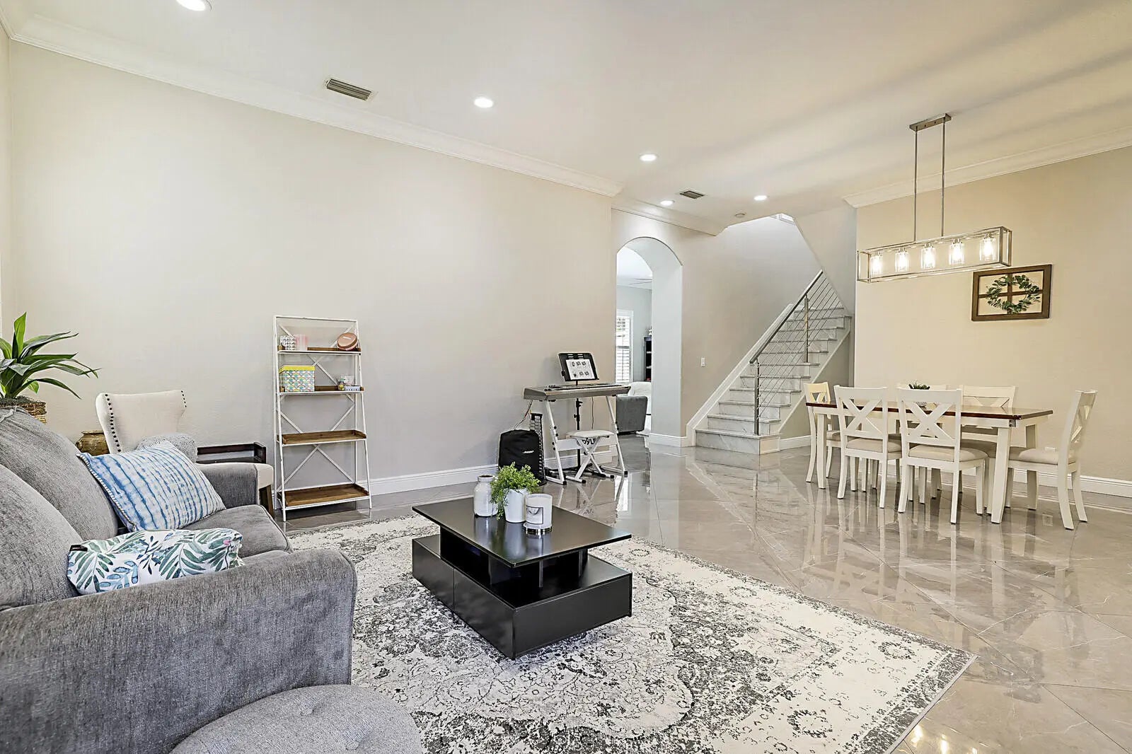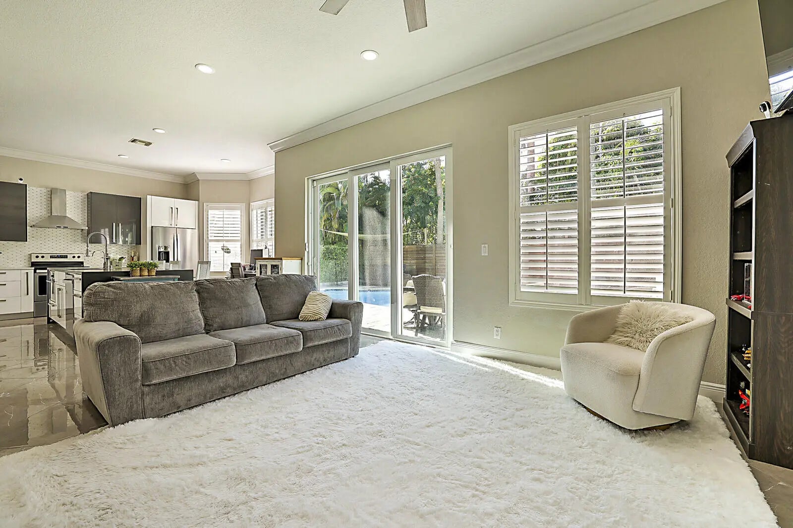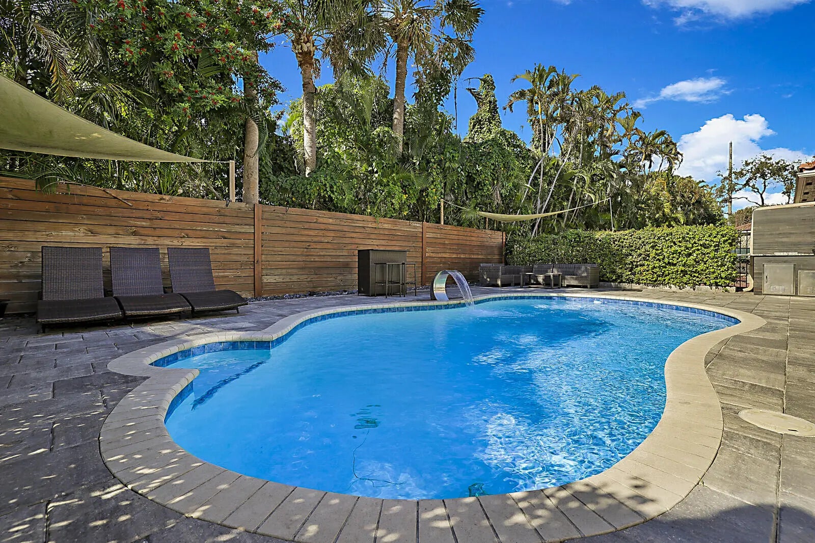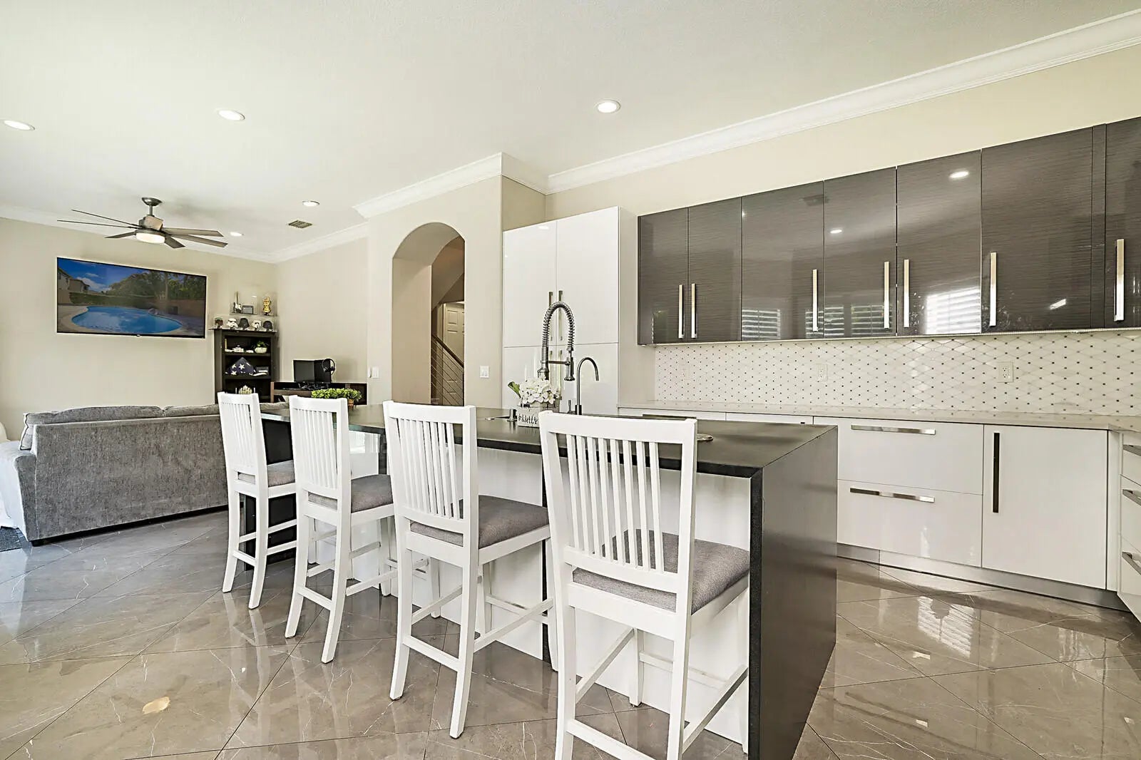 This beautifully upgraded 4-bedroom, 2.5-bath home with a 2-car garage delivers the ideal South Florida lifestyle. Enter through double impact doors to an open living and dining space featuring volume ceilings, recess lighting, crown molding and ceramic flooring throughout the main level. The renovated chef's kitchen showcases quartz countertops, a waterfall island, and abundant cabinetry. Impact sliding doors open to a private backyard oasis with a heated saltwater pool, outdoor kitchen, and outdoor shower. Marble staircases lead to the upper level where the oversized primary suite offers walk-in closets and a private en-suite bath. Additional bedrooms provide for guests, office, or family needs. Minutes from shopping, dining, beaches, and major highways. Inquire for more!!