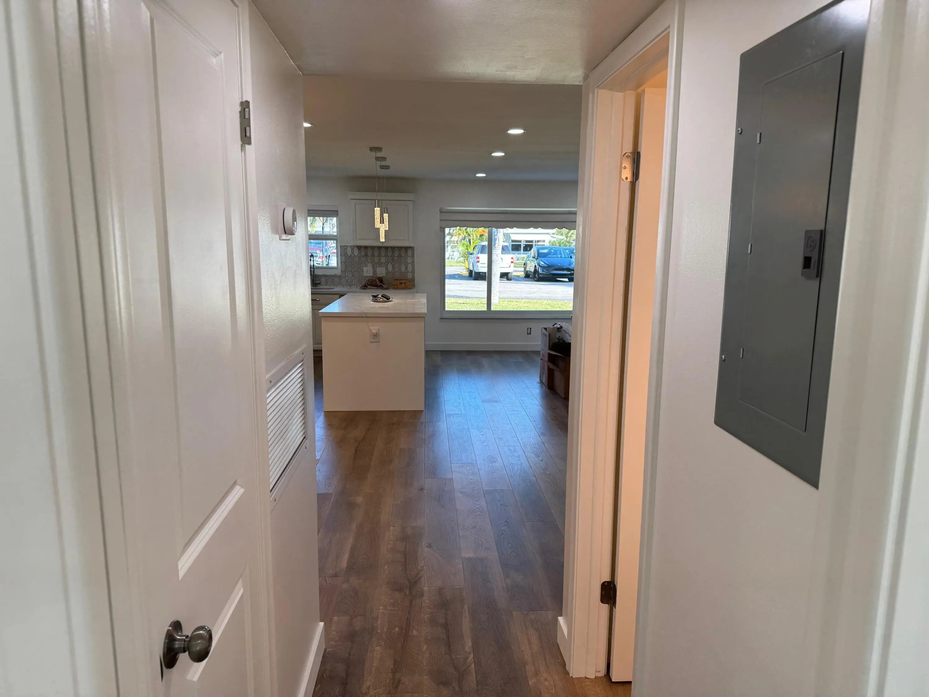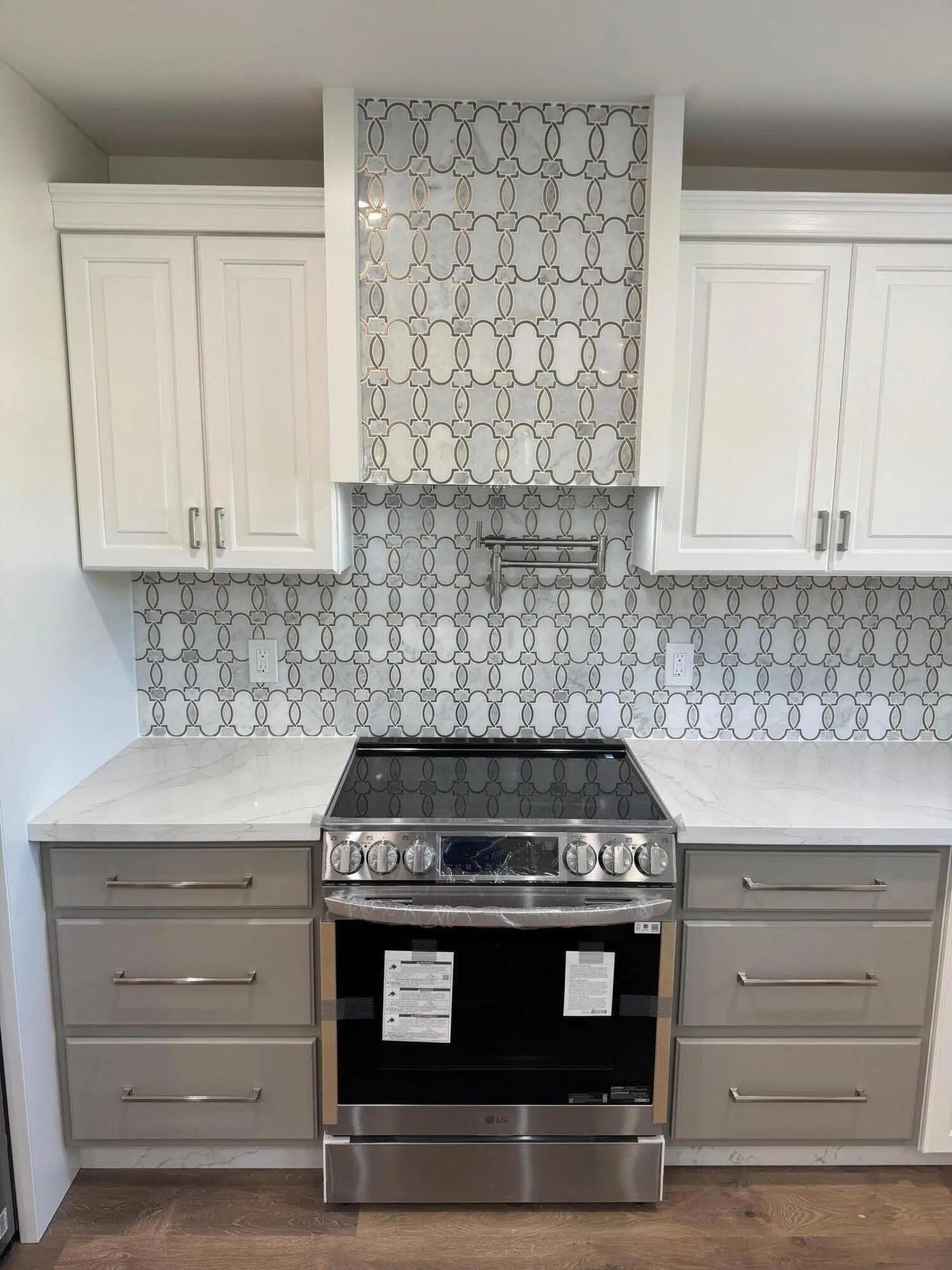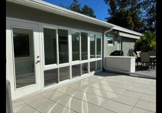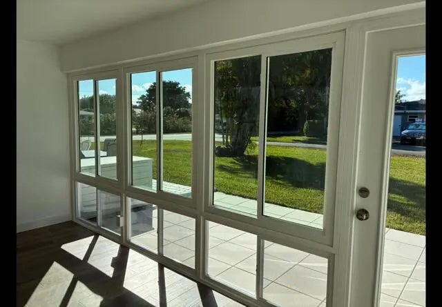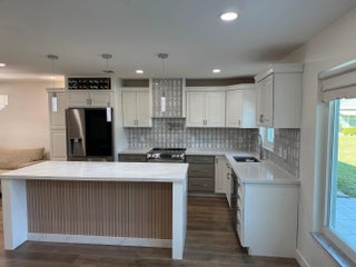 This beautifully designed one story villa offers luxury finishes, quality workmanship, and a spacious layout that truly lives large. The expansive open-concept great room is ideal for both everyday living and entertaining, complemented by recessed lighting, upgraded electrical, and smart wireless features throughout the home. The chef's kitchen showcases quartz countertops, a large movable quartz island, a striking pasta wall faucet, and brand new LG ThinQ smart appliances still in the manufacturer's original wrapping. This home features Luxury Vinyl Wood Planks that blends the elegance of hardwood with exceptional resilience and is water resistant. The LVP was installed over a premium grade underlayment; floorMuffler ultraSeal. All windows and doors have tinted impact glass. This home also features washer and dryer hookups, attic storage and remote controlled lighting for added convenience. Newly extended paved patios in both the front and back provide excellent outdoor living space. Residents enjoy low HOA fees with maintenance that includes internet, cable, water, roof, and exterior care, allowing for truly low maintenance living. Community amenities include a pool, bocce court and clubhouse. This villa combines modern technology, upscale finishes and exceptional value in a resort style setting. Measurements are approximate. Buyer and/or Buyers Agent to verify all information and measurements.