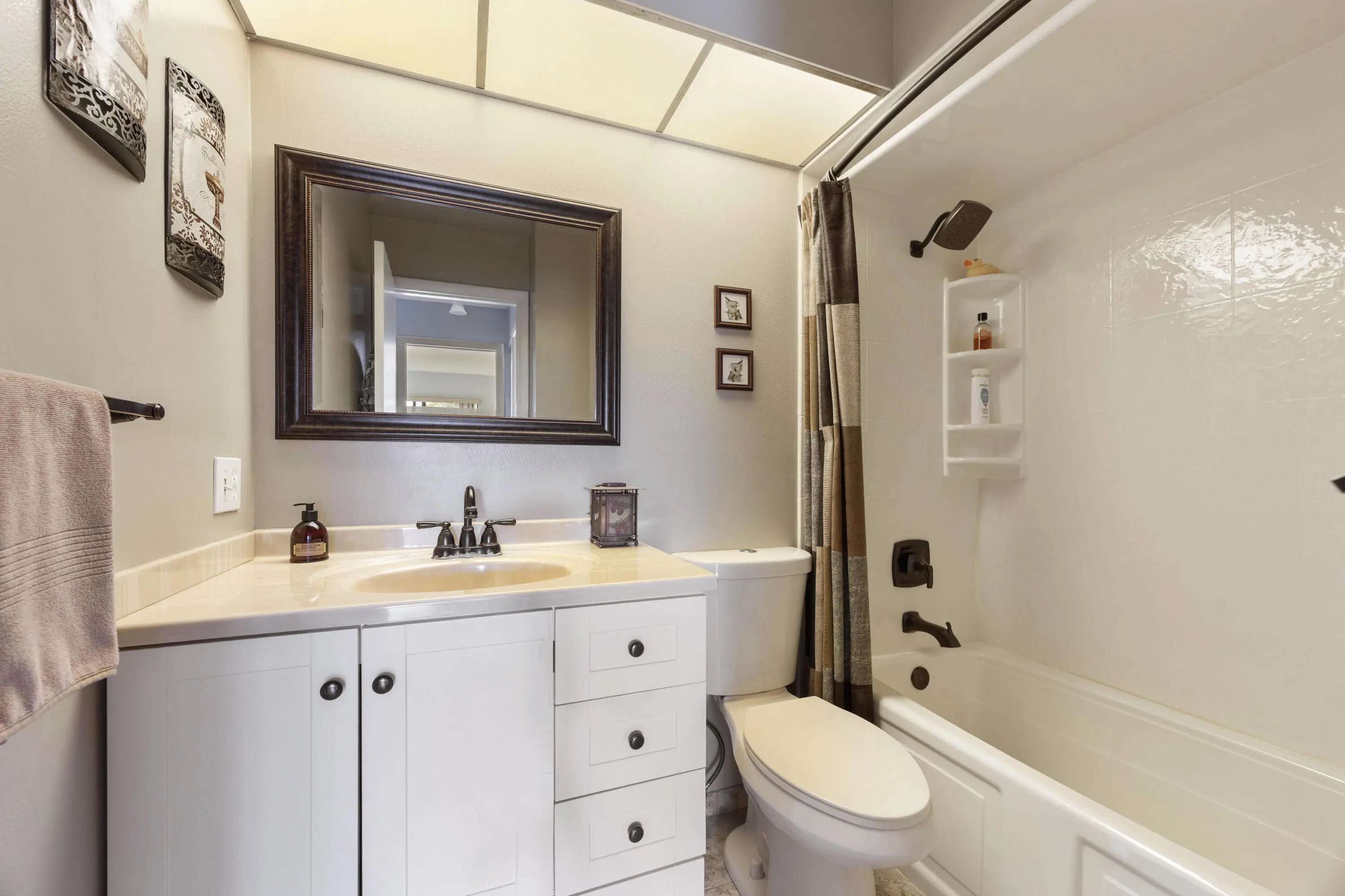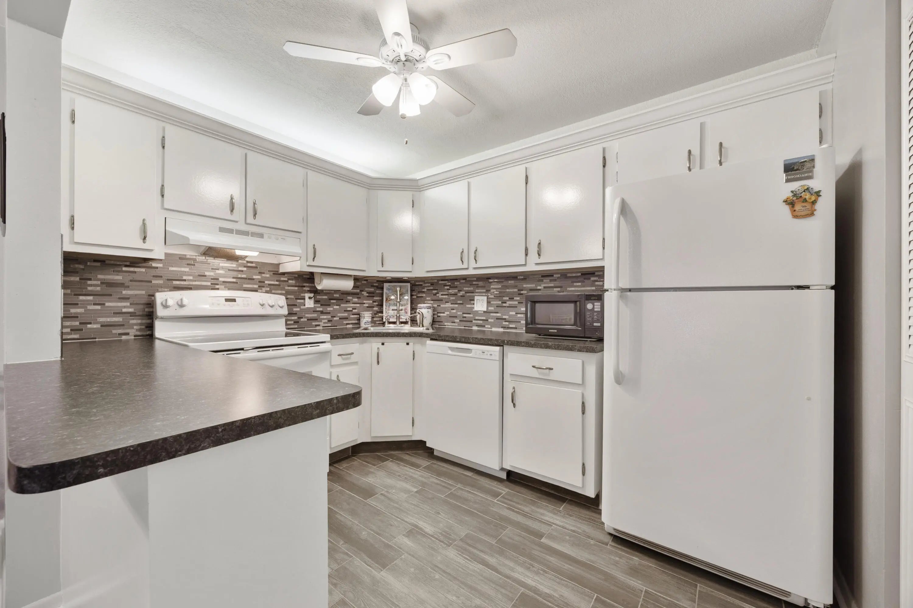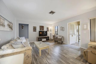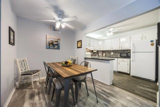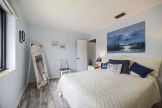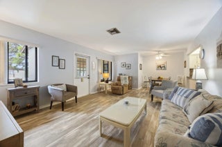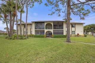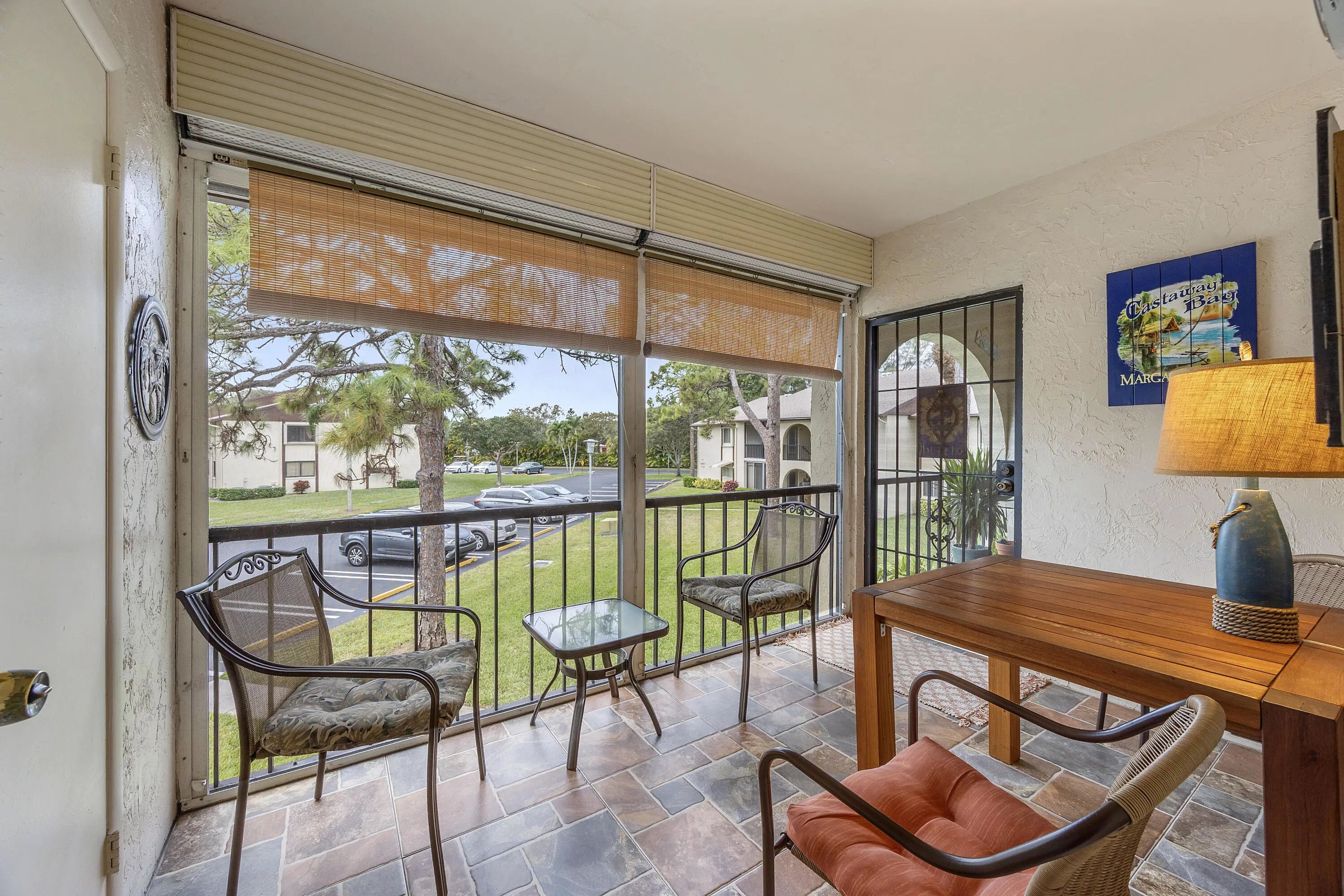 Beautiful and updated 2nd floor 2 bedroom 1 1/2 bath condo. Pretty laminate floors throughout with tile in the kitchen and baths. Nice open floor plan. New counters and backsplash in the kitchen. Fully updated primary bathroom with new vanity, tub and shower enclosure. Impact windows. Popcorn ceiling has been removed. Laundry room with full-size washer and dryer. Storage closet on the porch. Very nicely decorated, super clean, sold furnished and move-in ready. New roof 2025. Located in La Pinata, a 55+ community with clubhouse, pool, bocce, shuffleboard and a scenic walk-in path around a pretty lake. Cable and internet included in the low HOA fees.