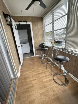 Come take a look at this beautiful corner unit on the second floor with 1bedroom, and 1.5 baths. Fully remodeled, and comes fully furnished. All you need is your suitcase and toothbrush! No carpet! Laminate flooring through out. The kitchen features stainless appliances, custom cabinets, recessed lighting and beautiful countertops. Both Bathrooms have been updated and offer custom tile, and upgraded vanities. Enjoy your coffee on your quiet screened in porch that has a fan and blinds for more privacy. Washer and dryer in unit. There is 24/7 manned guard gate. there are a many amenities, social clubs, pools, fitness center, restaurant, salon, golf course, courtesy bus great entertainment and more!