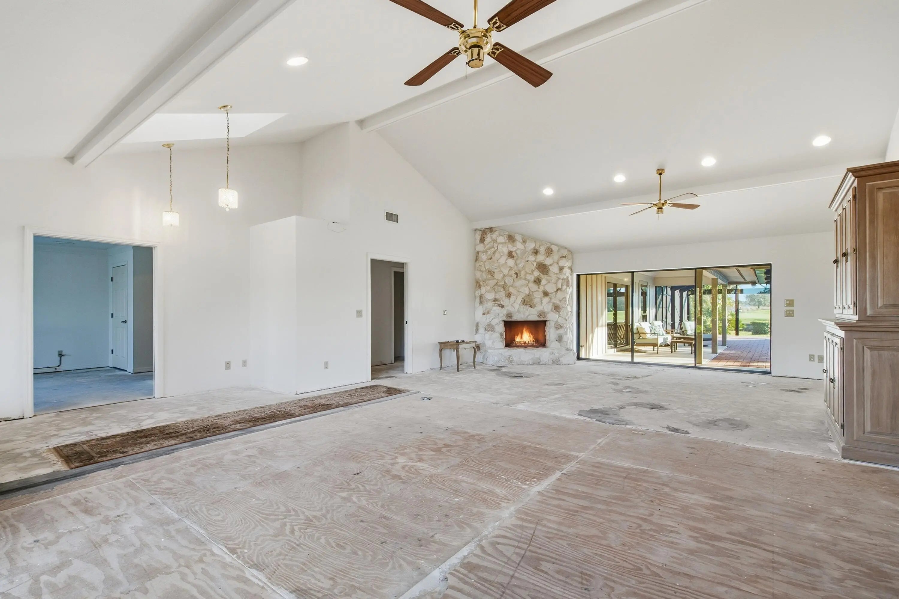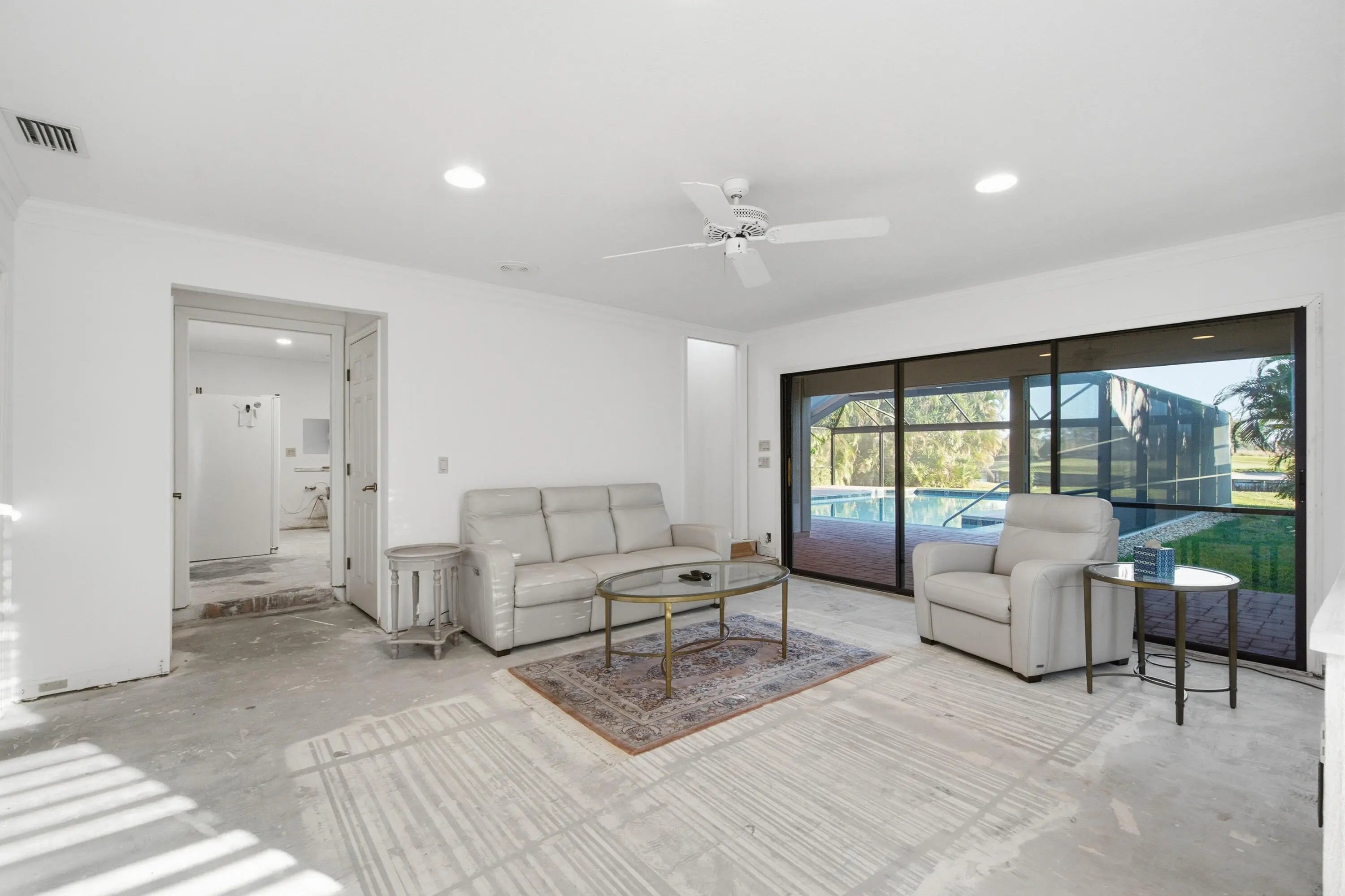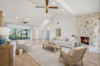An incredible opportunity awaits in the highly desirable Mariner Sands community. The first floor has been fully demoed, offering a true blank canvas for complete customization. With no flooring, kitchen, or bathrooms in place on the first floor, the customization potential is exceptional. Inside, soaring ceilings enhance the open, flexible floor plan, complete with a fireplace, formal dining room, and generous kitchen space ready for redesign. The thoughtfully designed layout includes an oversized primary suite on the first floor with his-and-hers closets and a spacious bathroom footprint ready to be reimagined. Also on the main level are a large guest bedroom with adjacent bath, a den, an additional full bathroom and laundry room with new washer and dryer. Upstairs, you'll find a private guest suite featuring a generous bedroom with ample closet space, a full bathroom, and access to a balcony ideal for enjoying the golf and water views. The true showstopper is the spectacular outdoor living space, highlighted by an oversized pool with a brand-new scenic screen enclosure, expansive patio, tranquil water views, and unobstructed golf course views of the green - creating a private, resort-style setting perfect for entertaining or relaxing. Major improvements have already been completed, including a new metal roof, new A/C units, and a new garage floor, offering peace of mind as you complete the renovation. Situated on a desirable corner lot, this property combines prime location, stunning views, and exceptional potential. A golf cart with new lithium batteries is also included in the sale. Ideal for buyers seeking a renovation project - bring your vision and transform this home into something truly special. Mariner Sands Country Club offers 2 championship golf courses, tennis, pickleball, croquet, a world-class fitness center, resort-style pool, restaurant, and a new $35 million clubhouse.