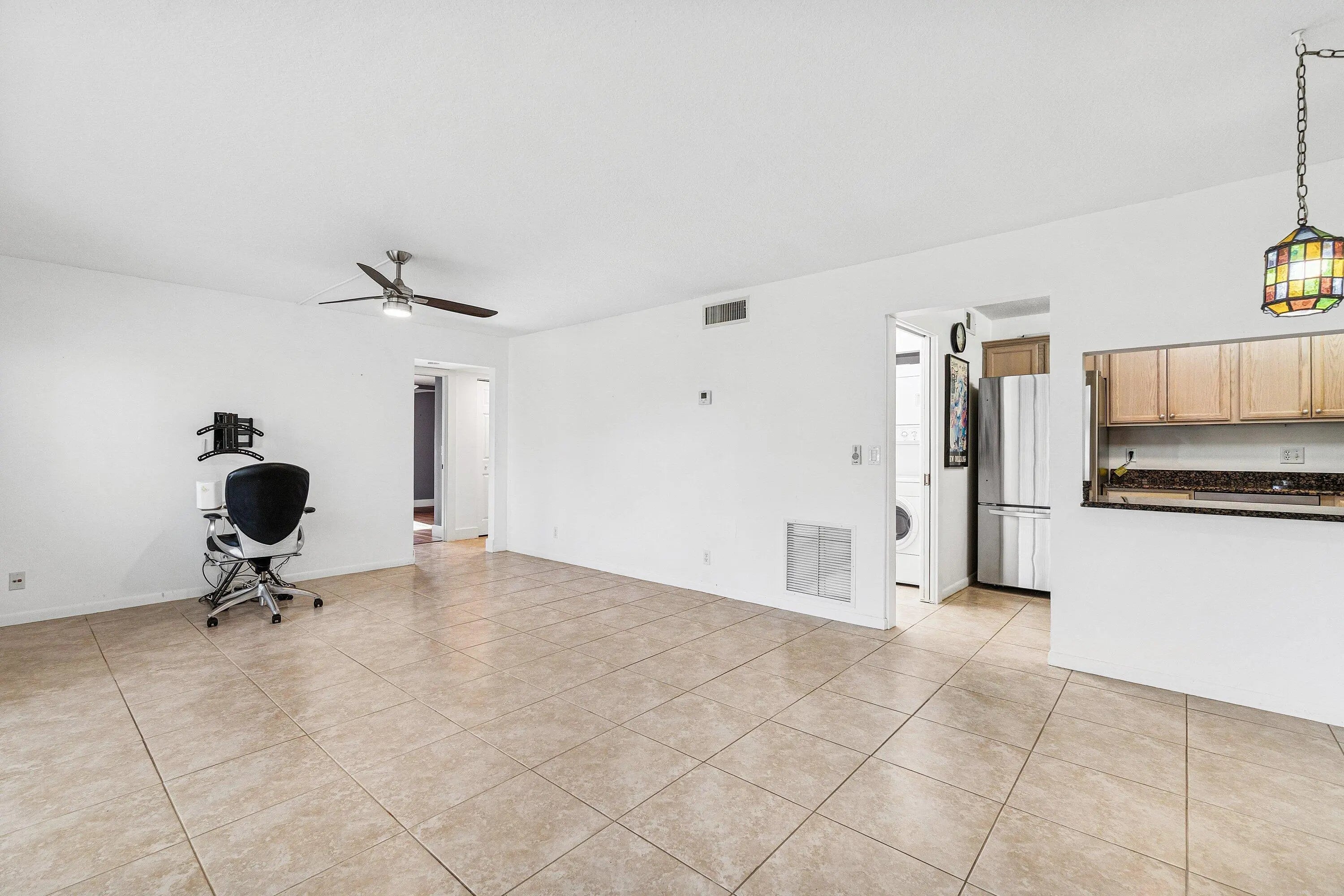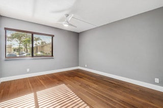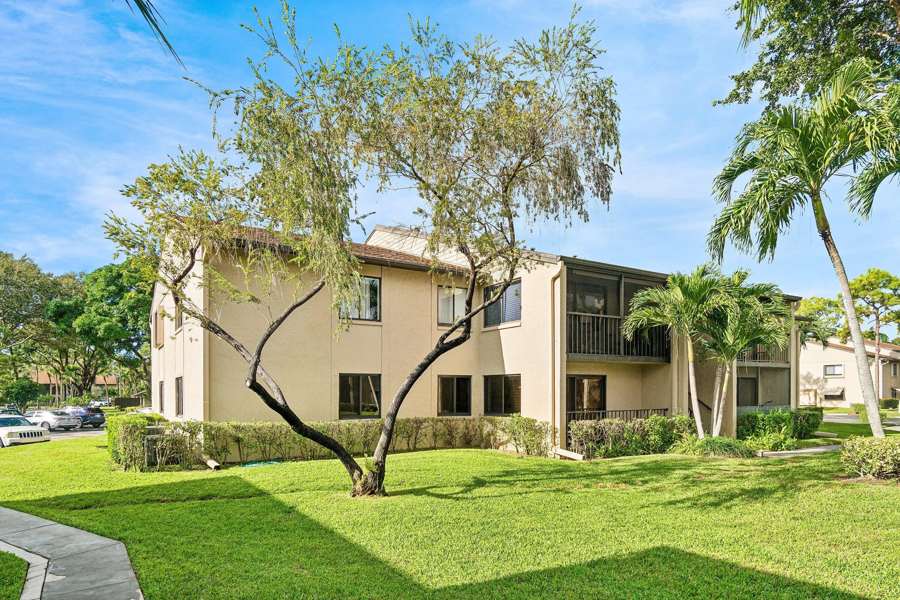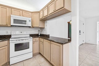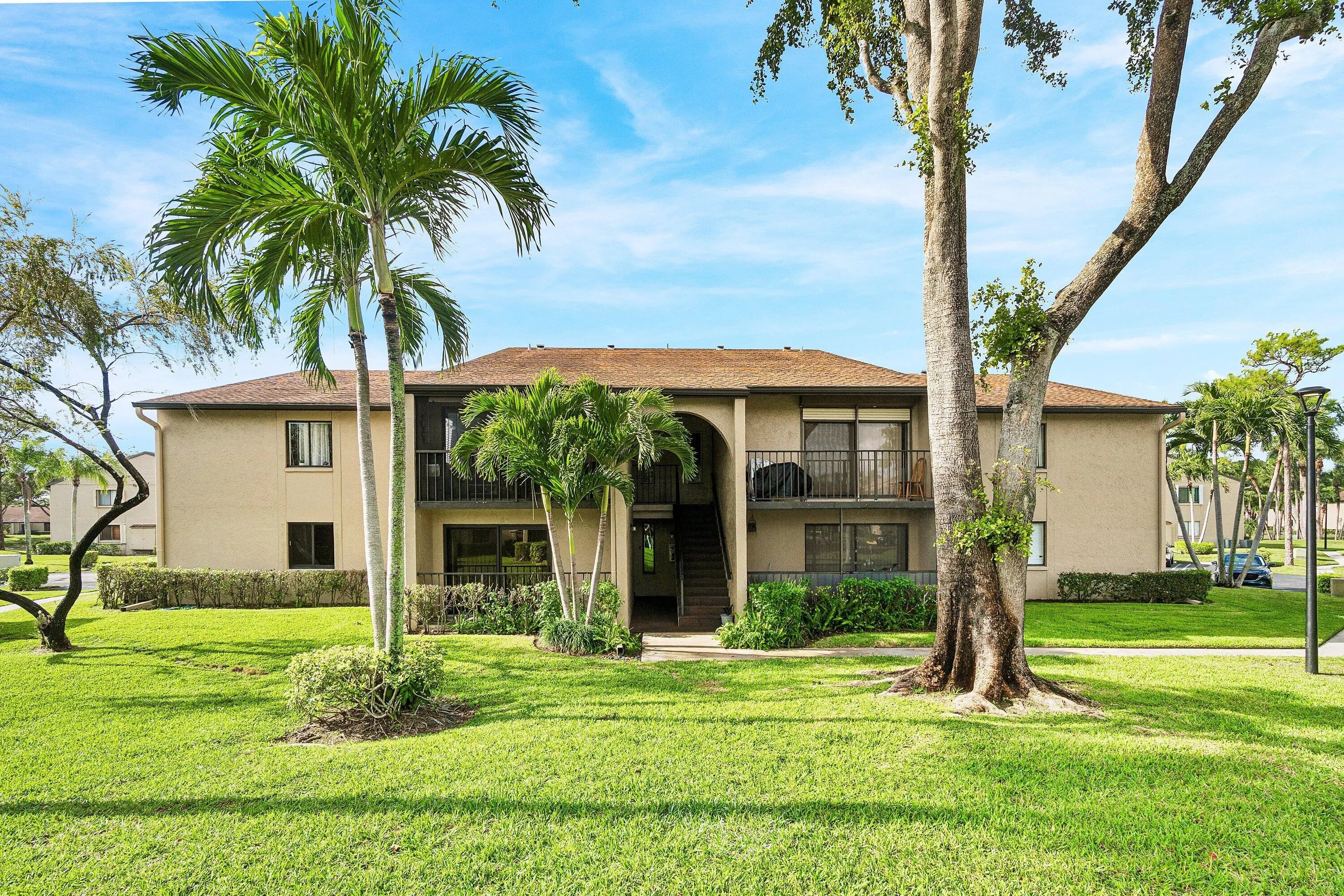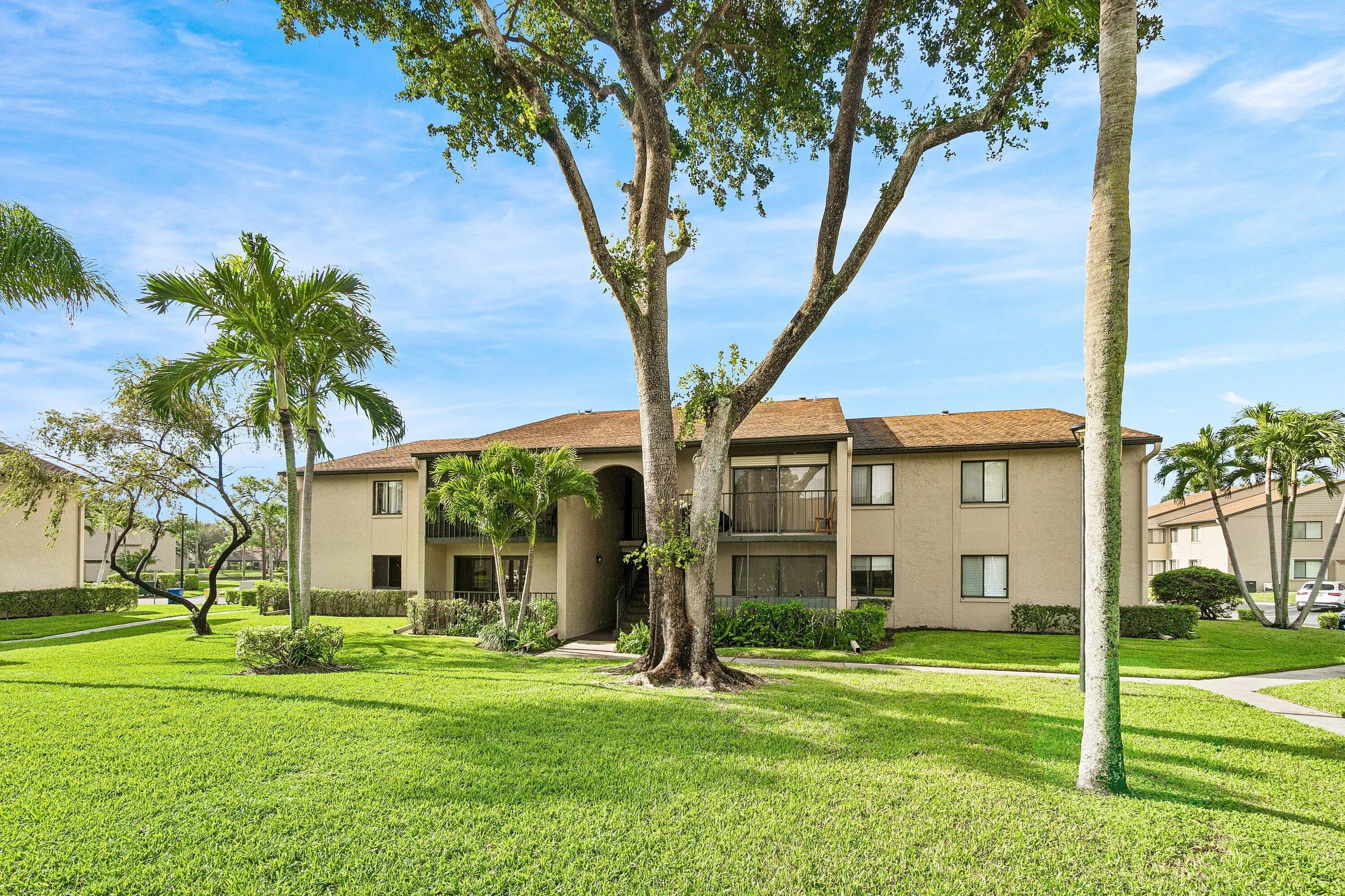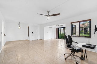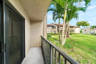 Beautiful 1st Floor Corner unit with Garden View-All Ages Welcome! Eligible for 3% down Conventional financing. Bright 2 Bedrooms, 2 Bathrooms, Den & Covered Patio offers PGT impact windows and sliding doors for quiet and convenience. The knockdown ceiling a modern look, updated kitchen with granite countertops, newer stainless-steel refrigerator & dishwasher. Utility room with cabinets & washer/dryer. Remodeled bathrooms featuring custom built cabinetry, quality finishes, and grab bar for safety. LOW condo fee includes Basic cable, Internet, Exterior building insurance & Building maintenance. Community pool, tennis courts, shuffleboard, clubhouse and grill area. Prime location nearby beaches, parks, dining, library, Publix shopping center, Wellington Mall, Airport, I-95 & Turnpike. This beautifully maintained home features a series of thoughtful upgrades that enhance comfort, style, and long-term value. Recent improvements include a new front door and screen door, solid interior doors with upgraded hardware, new closet doors, porcelain tile flooring, and updated wood molding with modern baseboards. Additional enhancements include upgraded faucets, ceiling fans with LED lighting, custom medicine cabinets, and a master bathroom with custom bead board shelving and lockable storage. A bright, modern, spa inspired guest bathroom with a deep soaking Kohler tub as the focal point, a separate hand-held shower head, clean porcelain tile surfaces, updated lighting, and a refreshed vanity/fixture package that feels both timeless and fresh. Windows are finished with granite sills and wood blinds for a polished look. The kitchen is equipped with an LG refrigerator and dishwasher, along with a newer garbage disposal. A 28-gallon water heater, Trane air conditioner with 14-seer. A complete list of improvements, including detailed descriptions and dates is available. The 2026 Budget & Condo application available.