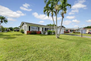 Beautifully renovated and move-in ready lakefront home for rent in desirable West Delray Beach, located on a quiet street in a 55+ community. This spacious 2-bedroom, 2-bath residence features a bright open-concept layout, bamboo flooring, a 1-car garage, and serene lake views from inside the home, plus a huge screened-in patio perfect for indoor-outdoor living. Enjoy peace of mind with accordion hurricane shutters on all windows and doors. The primary suite features a walk-in closet, and the guest bedroom includes two large closets plus a linen closet in the hallway. Lawn maintenance, cable, & internet are included. Community amenities include heated pool, hot tub, tennis courts, fitness center, clubhouse, and craft room. One small pet allowed. Schedule your private showing today!