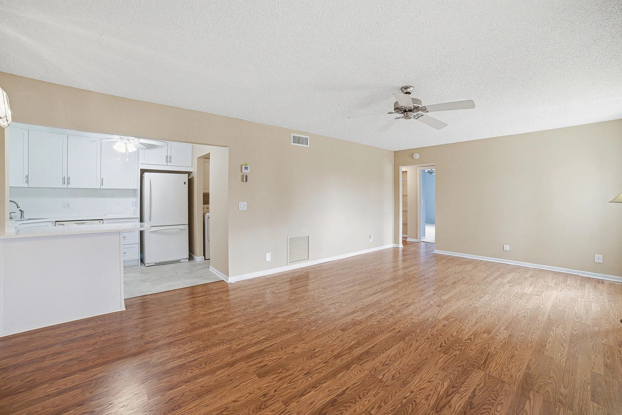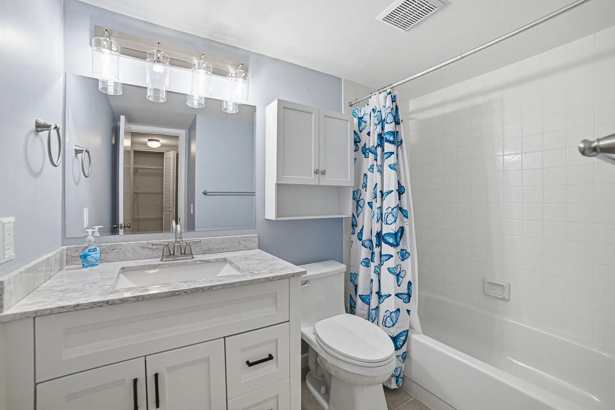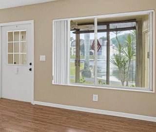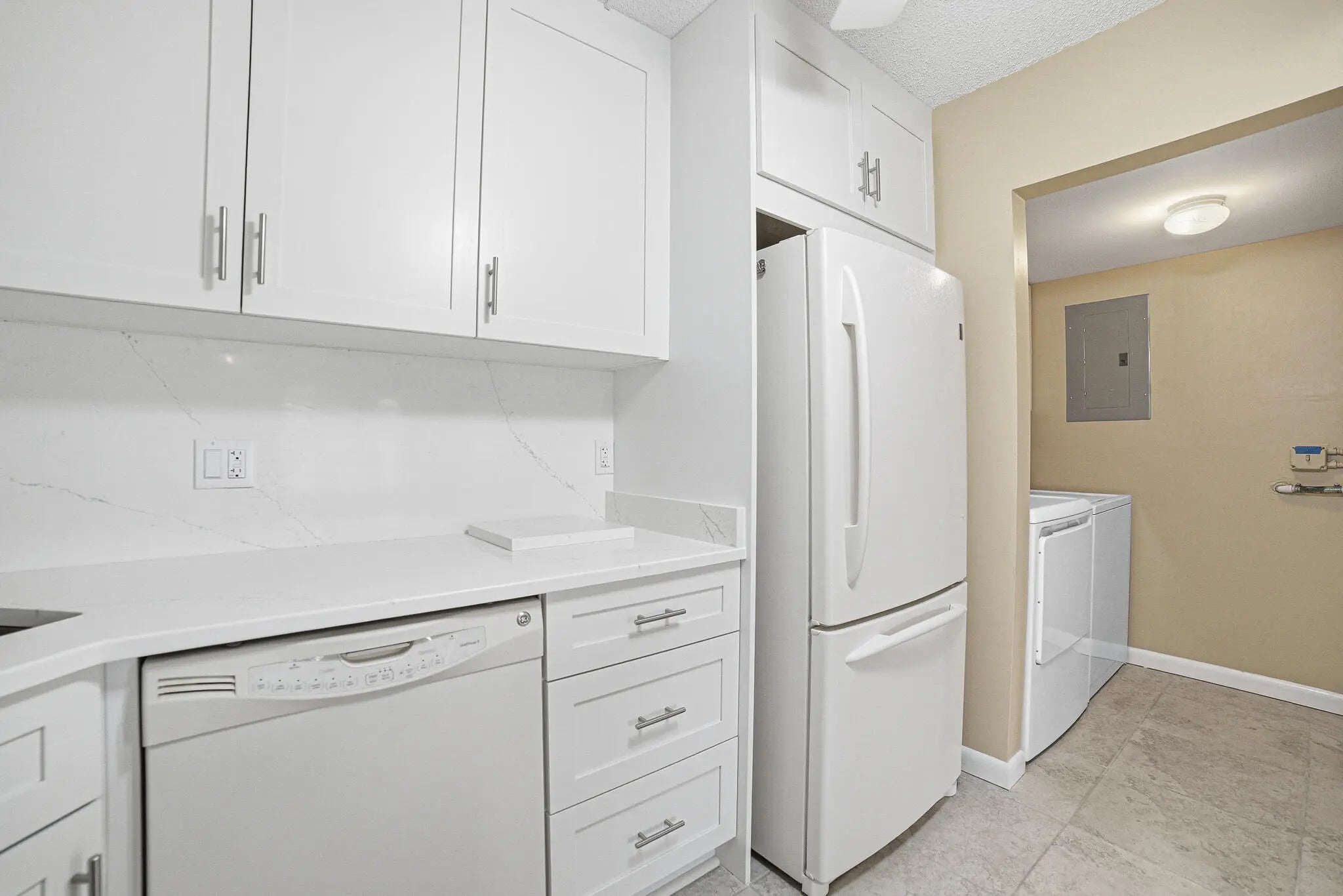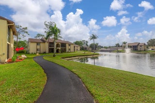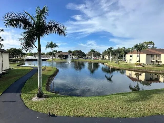 Rarely available premier unit in the highly desirable Pine Ridge South! A renovated, 1st Floor, 2BR/2Bath Condo now on the market for the first time in 40 years! This lakefront unit features unobstructed lake, fountain, and clubhouse views and as a 1st floor unit provides easy access without having to climb stairs. Have peace of mind with impact glass windows and accordion-style hurricane shutters. Move right in, this home is completely turnkey! Be the first to enjoy this beautiful new kitchen, featuring shaker cabinets, stunning quartz countertops, matching quartz full height backsplash, Blanco deep sink, and a stainless-steel range hood that brilliantly illuminates the cooking surface. Both bathrooms have been upgraded. Bathroom upgrades include modern vanities, sinks, mirrors, lighting and more. All rooms including the lanai have been freshly painted. Wood laminate flooring throughout the living room, dining room, and hallway, contrast well with the tile floors in the kitchen, laundry, and baths as well as the carpet in both bedrooms. Additional improvements include electric panel, Decora outlets, GFCI's, switches and wall plates, new under sink plumbing and all valves, all new door hardware and new lanai screens. Enjoy private in-unit laundry room with extra storage, pantry closet and microwave. Along with the lanai storage closet, each bedroom has walk-in closets complete with Closet Maid Systems with overhead storage, as well as new adjustable shelving in the linen closet. Every detail has been thoughtfully addressed. Relax in your enclosed lanai with fabulous, captivating water and fountain views, perfect for sunrise coffee, midday chats, or sunset drinks, overlooking your own beautiful private paver edged garden. Community enhancements include new roofs and exterior paint completed in 2025, as well as refreshed landscaping. Residents of Pine Ridge South 1 enjoy amenities like a heated pool, clubhouse, bocce courts, shuffleboard, walking paths with benches and an active social calendar. Schedule a showing today!