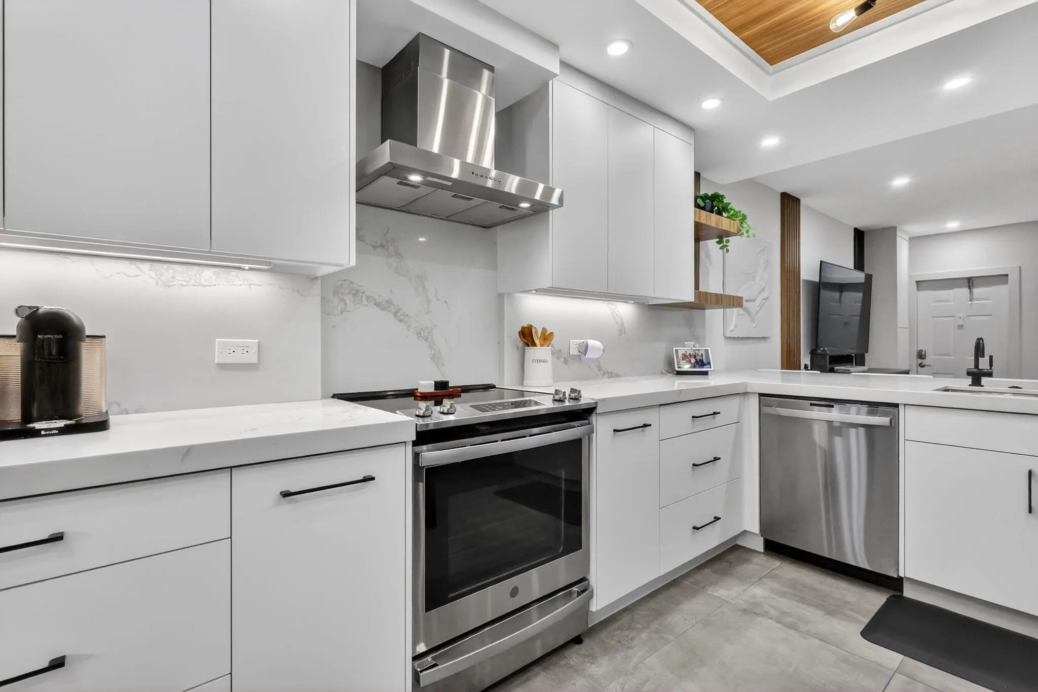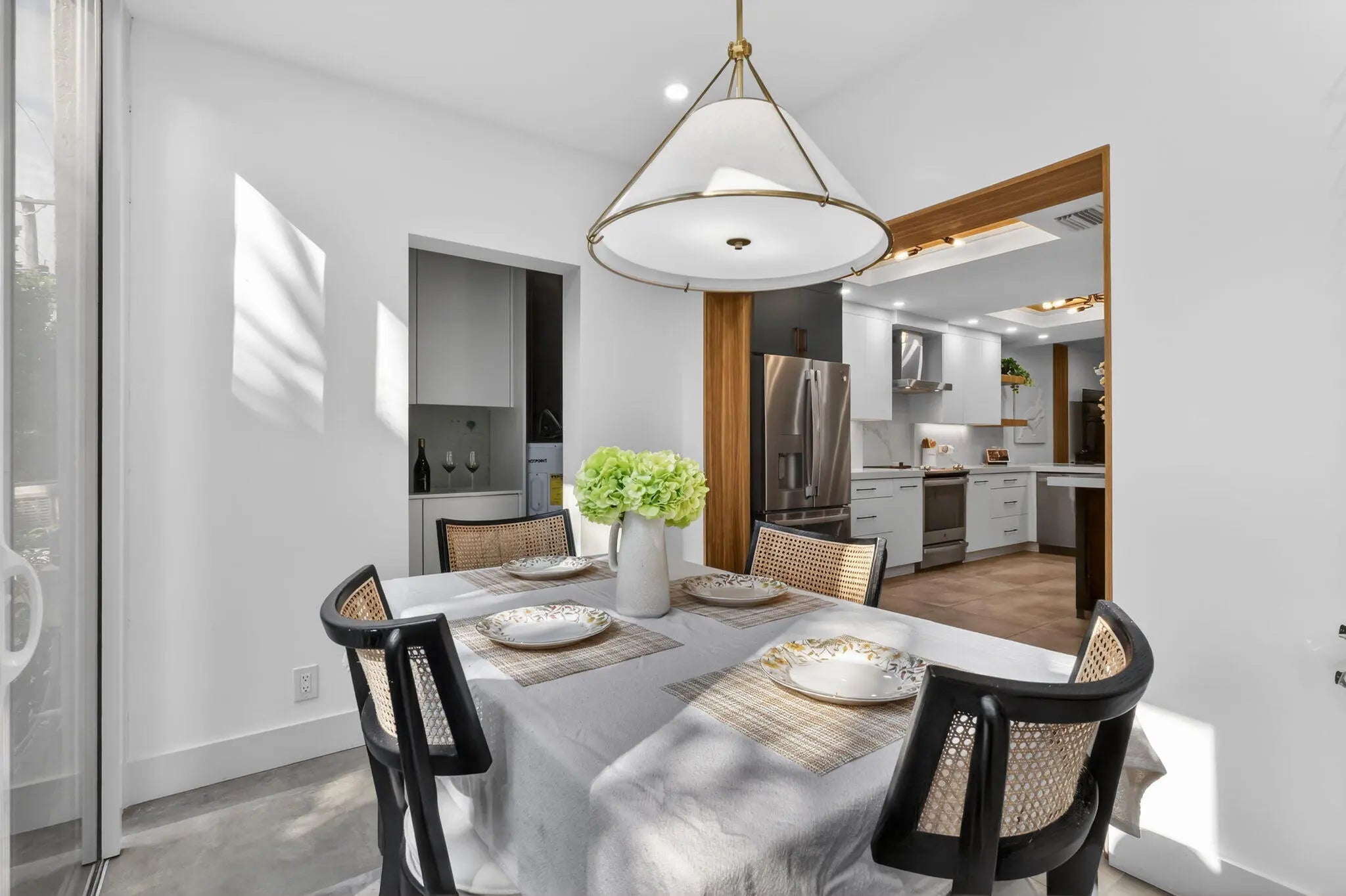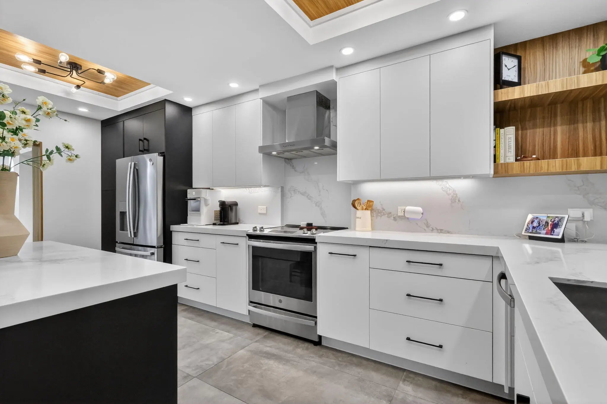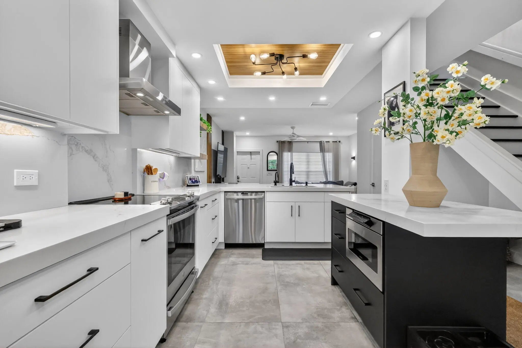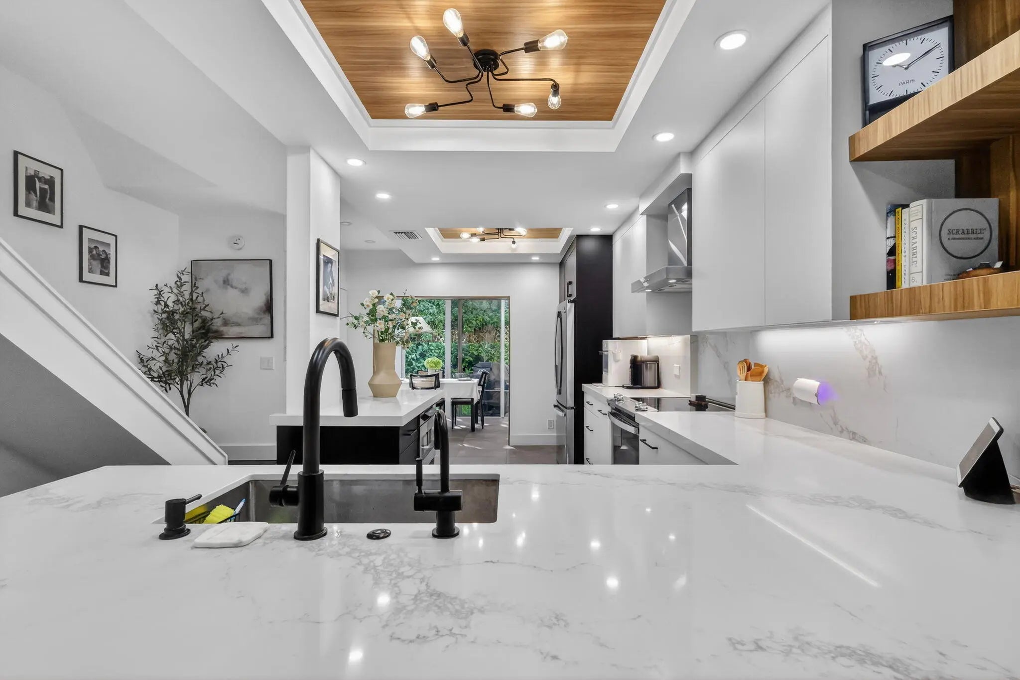 WATCH the VIDEO attached to appreciate this beautifully updated and upgraded townhome in a waterfront community in east Delray Beach. A gated entrance, and intimate pet friendly community with waterfront amenities for residents. This beautiful home was Recreated from a three bedroom to 2 bedrooms creating a larger primary and a second bedroom. Renovated with high end finishes. A home with solid core doors, designer cabinetry with pull outs, Quartz countertops, custom lighting, and all new appliances. The Open kitchen and expanded dining area is a great place for entertaining and has a stunning Custom ceiling with wood coffers. Gorgeous 24 x 48 porcelain tile on first floor and high baseboard moldings. Luxury Laminate wood flooring upstairs. Relax outside and BBQ on your private patio. Bathrooms have new tile and vanities, the primary bedroom has a built-in wall unit, nightstands and decorative wall paneling. Hurricane Impact sliders on patio. New plumbing pipes added in kitchen and powder bath and both upstairs baths, Ac unit replaced in 2021. New light fixtures throughout. Some furnishings can be included. It's a wow of a home and fantastic location close to Downtown Delray, Atlantic Avenue, shopping, dining and the Beach! The current HOA fee is $531 and the rental restrictions are: rent once per year, cannot rent for the first year of ownership and can lease minimum of 6 months