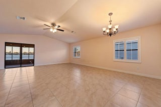 Welcome to this mint-condition 3-bedroom, 2-bath home in the desirable 55+ community of Spanish Lakes Fairways. This beautifully maintained residence offers a bright, open layout with laminate wood flooring throughout—no carpet—creating a clean and modern feel. The spacious great room connects seamlessly to the open kitchen, featuring granite countertops and ample cabinetry. The primary suite includes a generous walk-in closet and double vanity for added comfort. Enjoy peaceful Florida living on the large covered and screened patio overlooking the lake, perfect for morning coffee or relaxing sunsets. The home also features plantation shutters, a 1-car garage, an indoor laundry room, and manicured landscaping. The home comes equipped with accordion hurricane shutters, full protection around the screened patio. Residents enjoy access to exceptional amenities including two pools, a clubhouse, tennis, pickleball, and an 18-hole golf course. This vibrant community offers endless opportunities to stay active, social, and engaged. Conveniently located near beautiful beaches, the charm of Vero Beach, and a wide selection of shopping, dining, and everyday conveniences, this home offers both relaxation and accessibilityan ideal blend for Florida living.