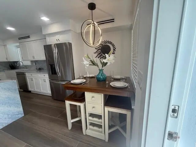 This one bedroom, one & a half unit 0f Paget House section in Crown Colony has been totally rebuilt from the concrete in & must be seen to appreciate the details of all the work that has been done. There is new drywall, floors, electrical, air ducts, cabinets, quartzite counter tops -backsplash, AC in ceiling, Water heater, impact windows, frosted glass barn doors, washer/dryer hook ups, blinds, & much more. The porch is enclosed with impact windows & looks out at the courtyard & pool area. The private beach access is walking distance & has its own large deck with tables & shower area with storage for beach chairs, umbrella's, kayaks, etc. There are two clubhouses, one has two gyms pingpong, billiards tables, pool & shuffleboard areas & One clubhouse sits at the inter-coastal .
