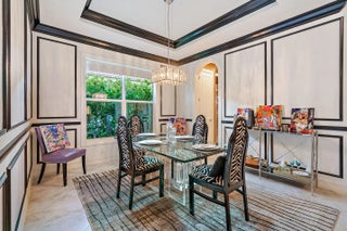 Exquisite 3 bedroom, 3 full bathroom plus office single-family pool home located on a massive .43 acre lot in Jupiter Country Club, including a FULL GOLF Membership with NO waitlist. Built by the esteemed Toll Brothers, this Salerno model is an exceptionally designed, single-story residence offering over 2,600 square feet of refined living space with a desirable split floor plan and complete privacy. From the moment you enter, you are greeted by a luxurious ambiance featuring soaring ceilings, porcelain tile throughout the main living areas, spectacular wood trim work, tray ceilings, high-end designer paint, Capitol Lighting fixtures, and stunning Swarovski crystal chandeliers. The home office showcases a custom built-in desk by Schrapper's of Jupiter, while the two guest bedrooms feature custom woodworking, chair rail, and detailed trim. The heart of the home is the ultramodern chef's kitchen, beautifully appointed with stainless steel appliances, wine refrigerator, 5 burner gas range, double ovens, and generous counter space. The kitchen flows effortlessly into the family room, breakfast area, and formal dining room, perfect for entertaining, while offering picturesque views of the backyard oasis. A custom wood entertainment center by Schrapper's and Sonos surround sound throughout the home and patio complete the space. Additional upgrades include hard wired exterior security cameras and outdoor speakers powered by Sonos. Step outside to an entertainer's dream backyard, set on a fully fenced, oversized lot surrounded by custom landscape lighting and lush tropical landscaping, offering total privacy. The expansive enclosed patio overlooks a sparkling saltwater heated pool and spa, featuring a brand new pool heater installed in 2025 and upgraded lighting controlled via a Jandy smart remote. The outdoor space is complemented by brand new West Elm patio furniture, a putting green, and ample room to relax or entertain year round. The primary suite is a true retreat, filled with natural light and enhanced by custom blackout shades. This spacious suite features a sitting area, two large walk in closets with built ins, linen storage, and a spa inspired ensuite with dual vanities, black granite countertops, soaking tub, oversized walk in shower, and built in television. Additional highlights include a new AC system installed in 2024, a 3 car garage, and an electric golf cart with Bluetooth sound system included. The home is offered fully furnished with high end furniture and is move in ready. As a resident of Jupiter Country Club, enjoy world class amenities including an 18 hole Greg Norman Signature Golf Course, Har Tru tennis courts, pickleball and bocce, resort style pools, a state of the art fitness center, and on site dining, all within a beautifully maintained gated community. Ideally located near top rated schools, pristine beaches, shopping, dining, and with easy access to I 95 and the Florida Turnpike, this home offers the perfect blend of luxury, privacy, and convenience without highway noise. Don't miss this exceptional opportunity. This home is move in ready and includes a FULL GOLF MEMBERSHIP with no waitlist. Schedule your private showing today before it's gone.