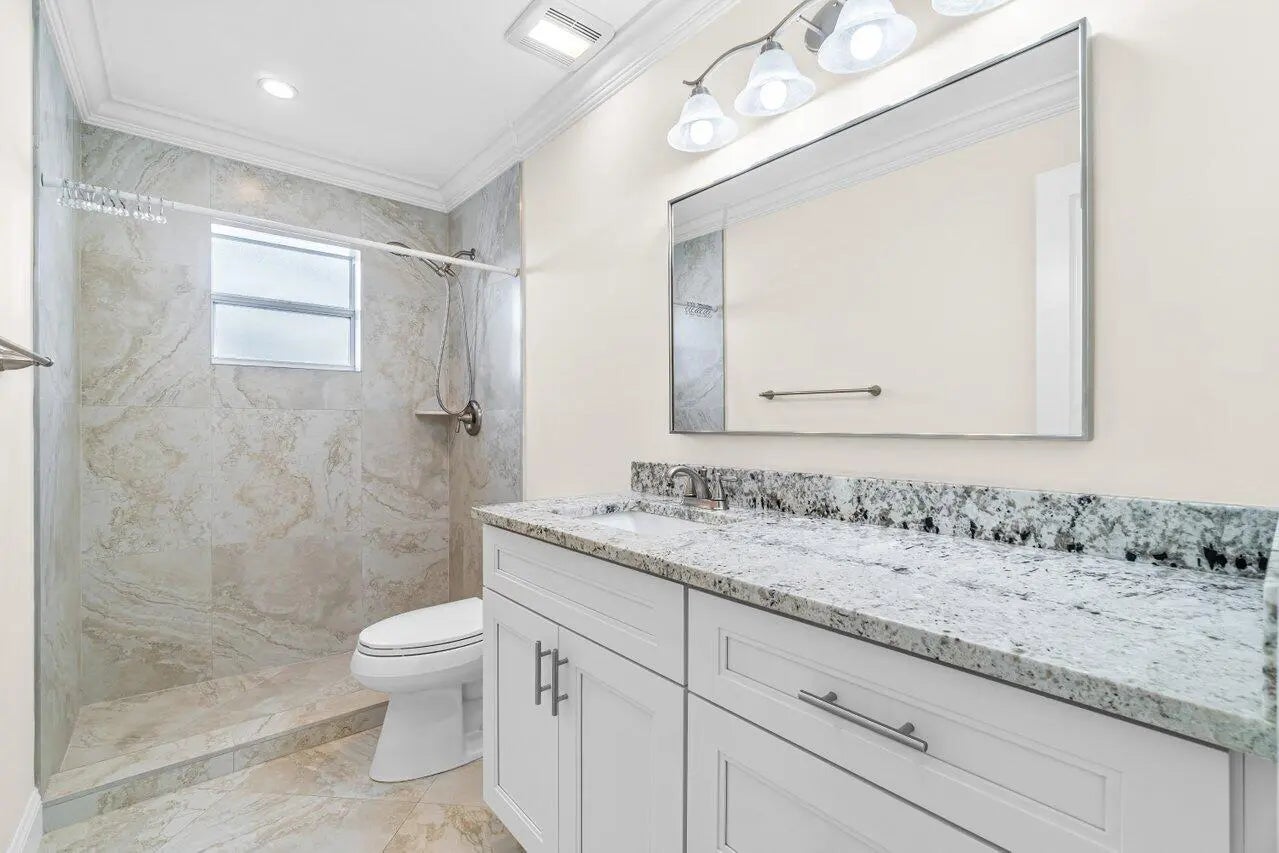 This Community is for Adults at Least 55+ Years Old. One of a Kind Beauty! TOTALLY RENOVATED with ALL NEW HIGH END Finishes! New Covered Patio! Large Open ''Edgewood'' floor plan! Offering Formal Living & Dining rooms, Family Room & Gourmet Kitchen with Granite Counters, Glass Mosaic Back splash & New Stainless Steel appliances! Crown Molding Everywhere, Porcelain Diagonal ''Marble Look'' Tile Floors with No Grout lines and Upgraded Lighting, Fans & Doors. The Master Suite Offers Large Closet& Gorgeous Bathroom! Location, Location! Palm Beach Leisureville is a Super Active Community with 3 Clubhouses & Par 3, 18-Hole Golf is also included! Close to Restaurants, Shopping, Beaches & Just West of I95! Possible 1 small dog- pets Taken on Case-by-Case Basis