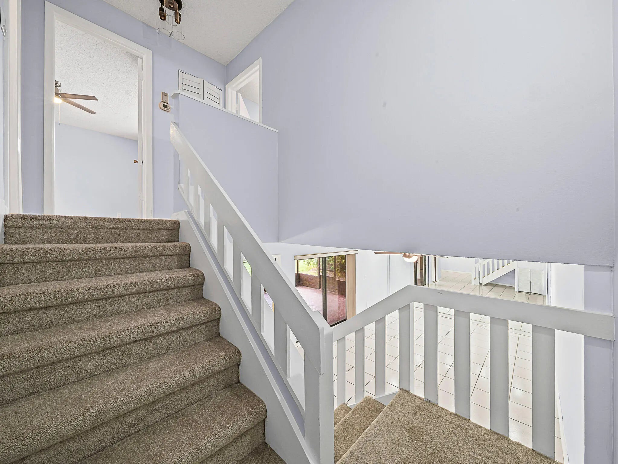 Amazing potential in Delray Beach! 2 Bed, 2.5 Bath ideally located just steps from the community pool - Rainberry Bay is a 55+ gated community, with resort style amenities. Enjoy the bright and functional layout of this courtyard townhome. Freshly painted interiors, new light fixtures, ceiling fans, and new carpet on the stairs create a clean, welcoming feel. The first floor features a spacious living and dining area, kitchen, convenient half bath, in-unit washer+dryer, a large screened porch that can be set up for outdoor entertaining or used as an extension of the indoor living space. Upstairs, a split-bedroom layout provides added privacy, with two generously sized bedrooms each featuring a full bath -Take advantage of this great opportunity to make this place your own!