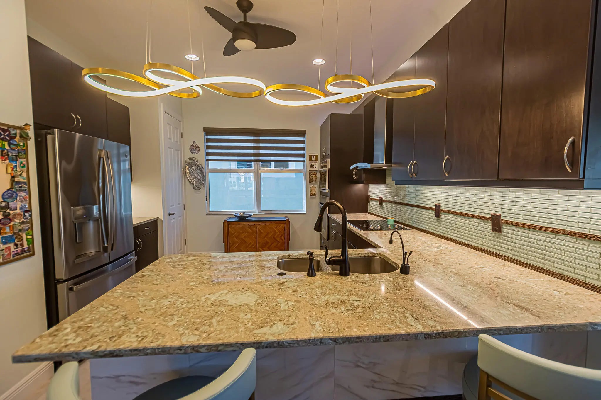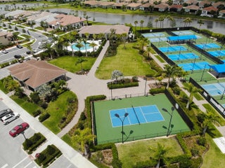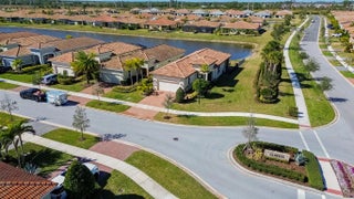 PGA Verano! Boasting $95k+ in upgrades, this Arezzo home sits on prime corner lot with tranquil lake views & fenced backyard. Home offers 2 bedrooms plus a versatile den, 2 baths & 2-car garage. Inside features include open airy layout showcasing 10ft ceilings, porcelain tile floors, designer lighting & custom Hunter Douglas Zebra window treatments. The chef-inspired kitchen shines with quartz counters, 40in espresso soft-close cabinetry, premium appliances & walk-in pantry. Relax in the elegant primary suite with tray ceiling & spa-style bath. Enjoy sunset lake views from the extended screened lanai. Impact glass windows & lanai electric hurricane shutters offer piece of mind. HOA covers lawn care, cable, internet, security & access to Club Talavera. Close proximity to PGA Golf Club.