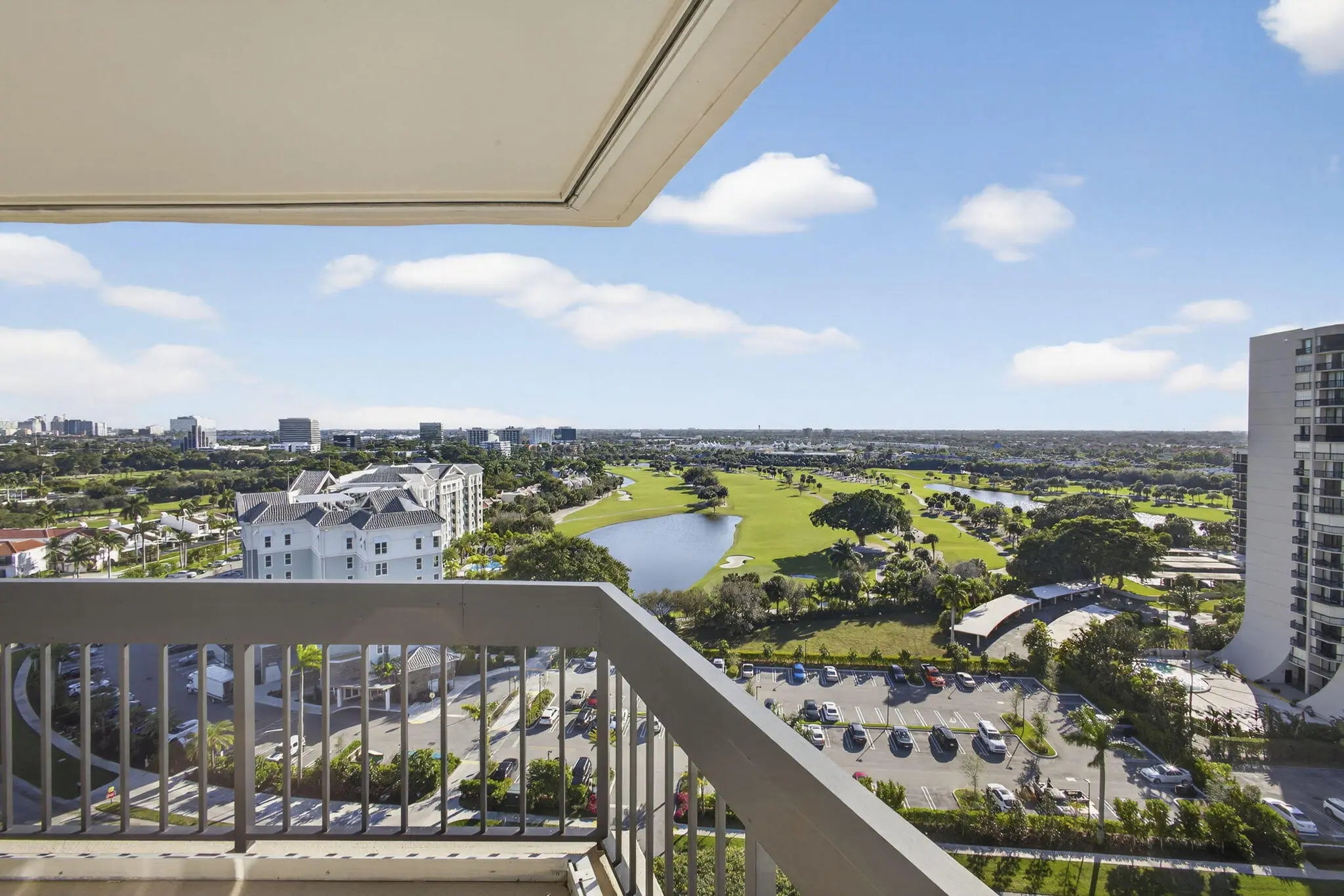 BEAUTIFUL OPEN 2/2, CORNER UNIT WITH VIEW GOLF AND CITY IN A PRIVATE GOLF COURSE, GATED COMMUNITY, 24/H GUARD GATE, NO MEMBERSHIP MANDATARY, (SOCIALE MEMBERSHIP AVAILABLE). OPEN KITCHEN, GRANITE, COUNTERTOP, NEW APPLIANCES, WASHER AND DRYER 2025, AC AND WATER HEATER 2024, 2 NEW BATHROOM, 2 BALCONIES (MASTER BEDROOM HAS A PRIVATE BALCONY), 2 WALKING CLOSET, 2 PARKINGS, 1 STORAGE, SALTY POOL, COMMUNITY ROOM WITH KITCHEN , FITNESS CENTER, CLOSE TO EVERYTHING, I.95, OUTLET MALL, CITY, RESTAURANTS, 12 MINUTES TO THE BEACHES AND PBI AIRPORT. WELCOME TO EVERYONE.