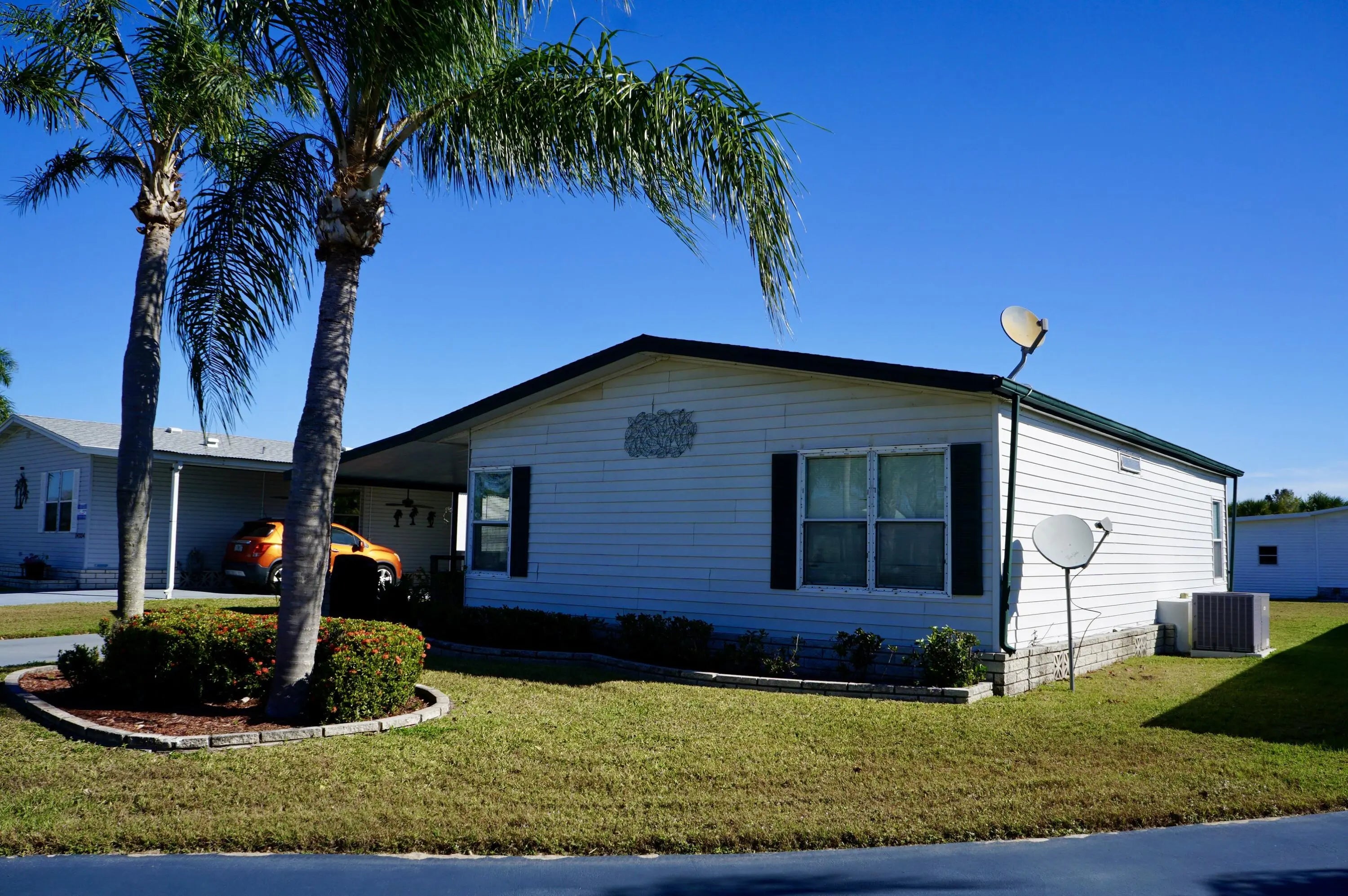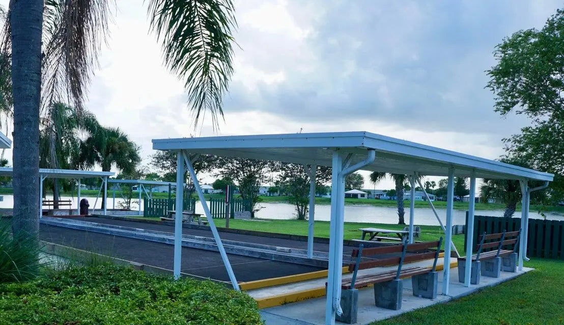 FREE GOLF! Located on a cul-de-sac this beautifully maintained 2-bed/2-bath home is offered fully furnished and ready for immediate occupancy. Features include large kitchen, inside washer & dryer, 2023 a/c, and an extra chest freezer. Large screened Florida Room! Shed for tools & pool floats! For peace of mind, home comes with Kevlar hurricane screens to protect windows from storms. Perfect home for full-time residence, or a seasonal escape from the cold! Offered at a great price, ready to sell! This land leased home is located in the desirable Spanish Lakes Fairways Community. You must be approved by the park to purchase a home. This is a 55+ park that offers a relaxed lifestyle for those who are ready for a break. And for the active seniors, Spanish Lakes offers all inclusive... resort like, amenities with a community clubhouse, FREE golf, social events, tennis, billiards, shuffleboard, swimming, fitness center, and more. There is NO HOA fee. Your $931 land lease pays for everything including your lawn maintenance, trash removal, property taxes and community activities. You'll find this home is tucked away into a private community, yet within a few miles of the beach, hospitals, and shopping.