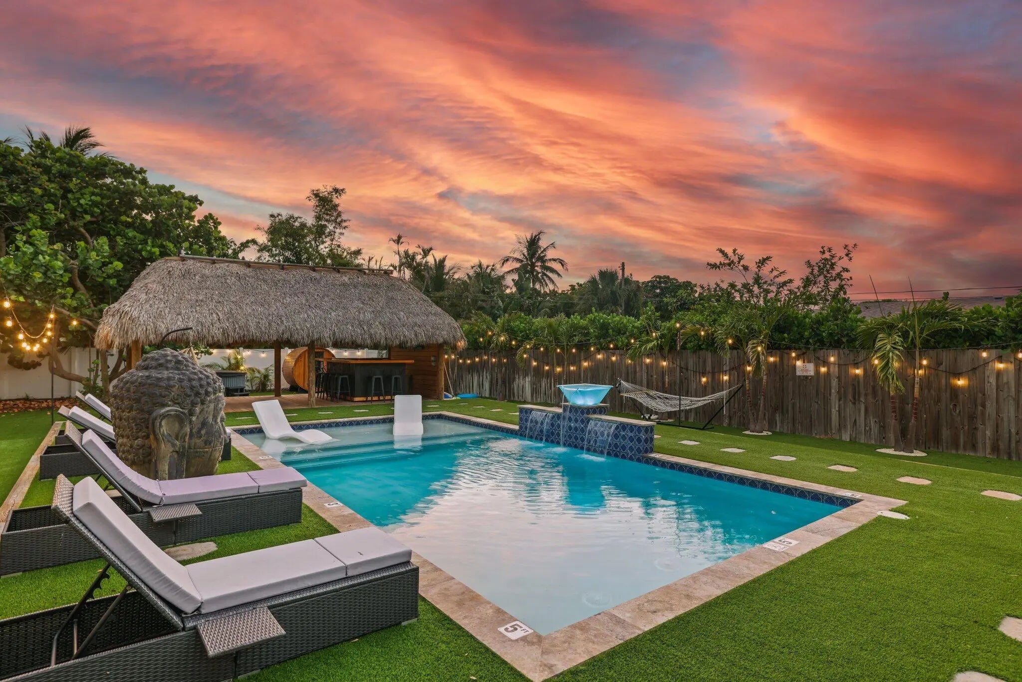 Welcome to an exceptional coastal offering in the heart of Delray Beach, where resort style living meets prime downtown convenience. This lucrative short-term rental presents a proven income producing opportunity with flexibility for personal use or long-term appreciation. Situated on an expansive 0.26 acre lot, this beautifully maintained three bedroom residence presents a rare opportunity to enjoy a private retreat while being just moments from the energy of Atlantic Avenue. The outdoor space is a true highlight, designed to evoke the feel of a private resort. The lush, tropical backyard features a sparkling swimming pool, relaxing hot tub, and private sauna, creating an ideal environment for both entertaining and unwinding. A thatched tiki hut with a built in BBQ and generous seating area serves as the perfect backdrop for gatherings, while mature landscaping ensures privacy and tranquility. Inside, the home offers a bright and functional layout tailored to modern living. The kitchen is well-appointed for both everyday use and entertaining, and a dedicated workspace accommodates today's work from home lifestyle. Additional conveniences include a washer and dryer, EV charging capability, and ample onsite parking, ideal for guests or rental use. Located just minutes from Delray Beach's renowned Atlantic Avenue, residents enjoy easy access to award-winning dining, boutique shopping, nightlife, and cultural attractions. With Delray Beach recently recognized as the Best Beach in Florida by USA Today, pristine coastline, nearby parks, and premier golf courses are all within close reach. Adding to the property's long-term value, the oversized lot allows for future expansion. City-approved plans permit the addition of a guest cottage or in-law suite, and architectural renderings for a 520-square-foot accessory dwelling unit (ADU) are available upon request. Whether envisioned as a primary residence, a vacation getaway, or a high-performing investment, this turnkey property offers unmatched versatility in one of South Florida's most desirable coastal communities. The owner is open to exploring creative financing options, making this a truly unique opportunity in downtown Delray Beach. DISCLAIMER: Information published or otherwise provided by the listing company and its representatives including but not limited to prices, measurements, square footages, lot sizes, calculations, statistics, and videos are deemed reliable but are not guaranteed and are subject to errors, omissions or changes without notice. All such information should be independently verified by any prospective purchaser or seller. Parties should perform their own due diligence to verify such information prior to a sale or listing. Listing company expressly disclaims any warranty or representation regarding such information. Prices published are either list price, sold price, and/or last asking price. The listing company participates in the Multiple Listing Service and IDX.DISCLAIMER: Information published or otherwise provided by the listing company and its representatives including but not limited to prices, measurements, square footages, lot sizes, calculations, statistics, and videos are deemed reliable but are not guaranteed and are subject to errors, omissions or changes without notice. All such information should be independently verified by any prospective purchaser or seller. Parties should perform their own due diligence to verify such information prior to a sale or listing. Listing company expressly disclaims any warranty or representation regarding such information. Prices published are either list price, sold price, and/or last asking price. The listing company participates in the Multiple Listing Service and IDX.