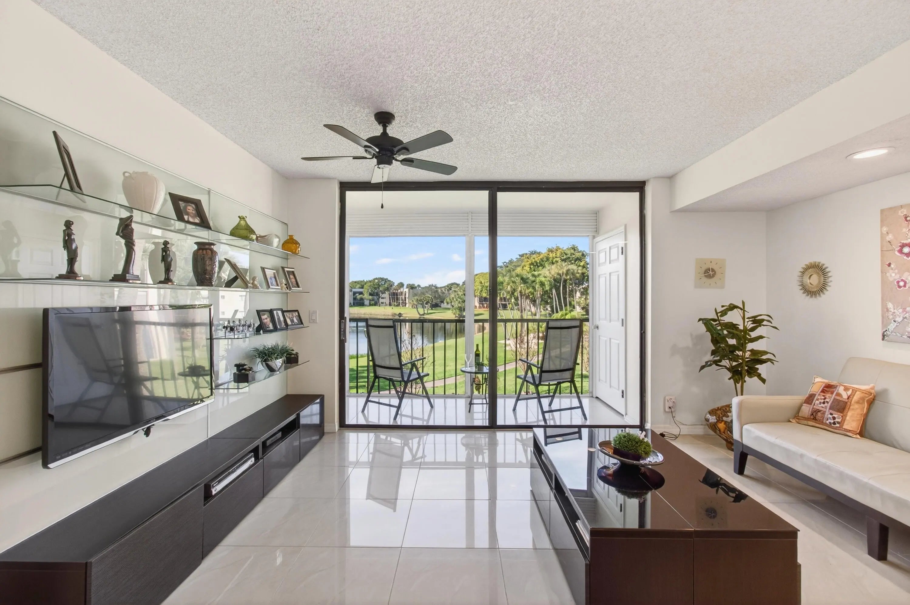 Renovated turn key bright airy lakefront condo in an all age building in Delray Beach. Your living area is cozy overlooking the lake, and magnificent sunsets. Once you enter the unit you are invited into a spacious dining room, galley kitchen, living area and lake. The master suite features a walk in closet and separate dressing and shower areas. The guest bedroom also has cross ventilation and lake and garden views. Nothing to do in this unit just move in. The gated community is like a park setting with walking paths, club house, tennis, pickleball, and many activities. This is being offered furnished and one of a kind unit like this in Las Verdes. Easy to view. Must see in person. Call Listing agent Sue