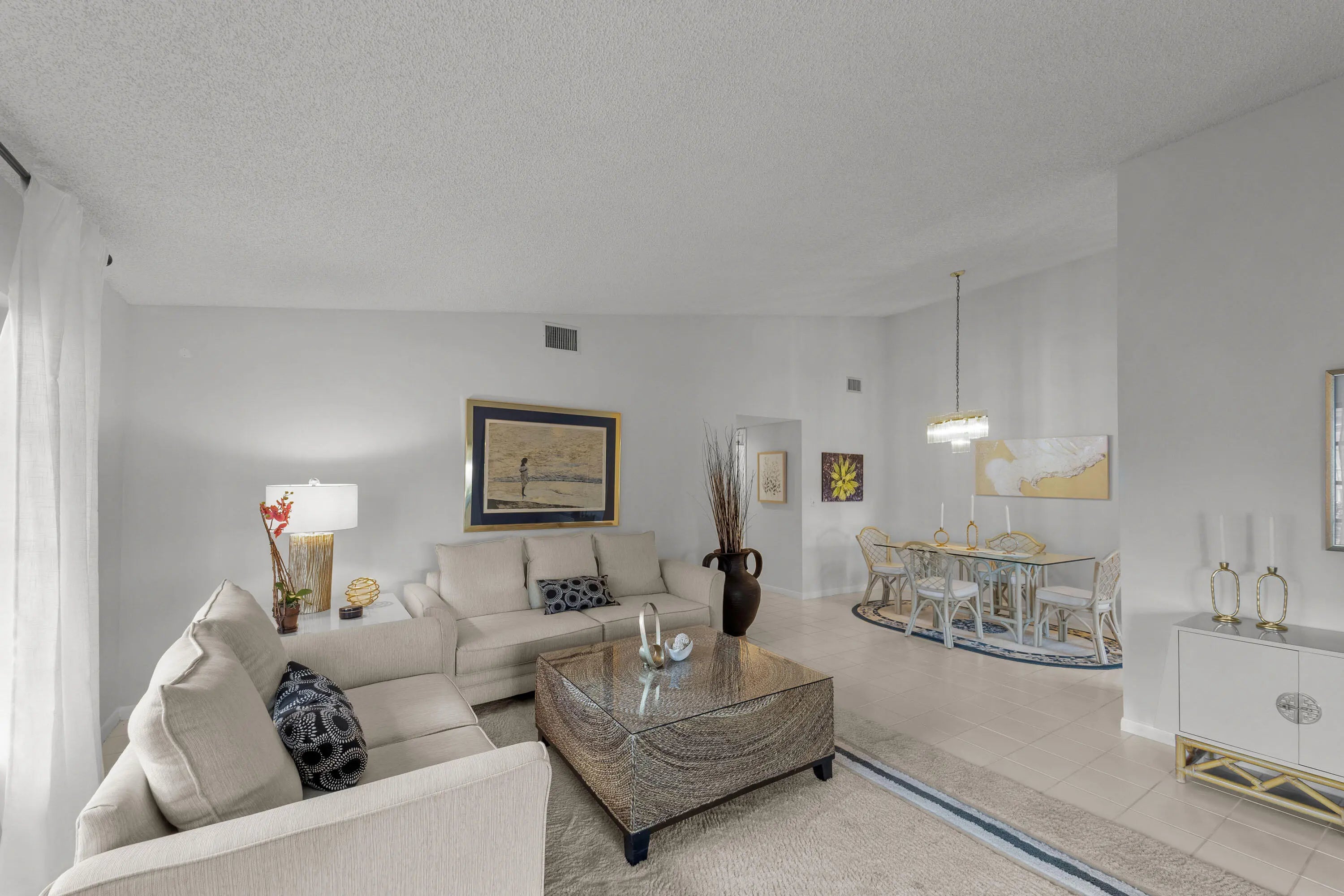 Discover this exceptional CORNER townhome villa, offering extra SIDE windows for abundant natural light, enhanced privacy, and a serene tropical setting with a private patio. Ideally located in the highly sought-after High Point community with low HOA fees, this immaculate, move-in-ready home is a true find. Enjoy HIGH ceilings that create a bright and airy atmosphere. The private master suite is conveniently situated, featuring a spacious walk-in closet and a large full bath. An additional bedroom and full bath provide ample space for guests or family. The screen-enclosed Florida room offers versatile indoor-outdoor living. The association has recently replaced the ROOF.