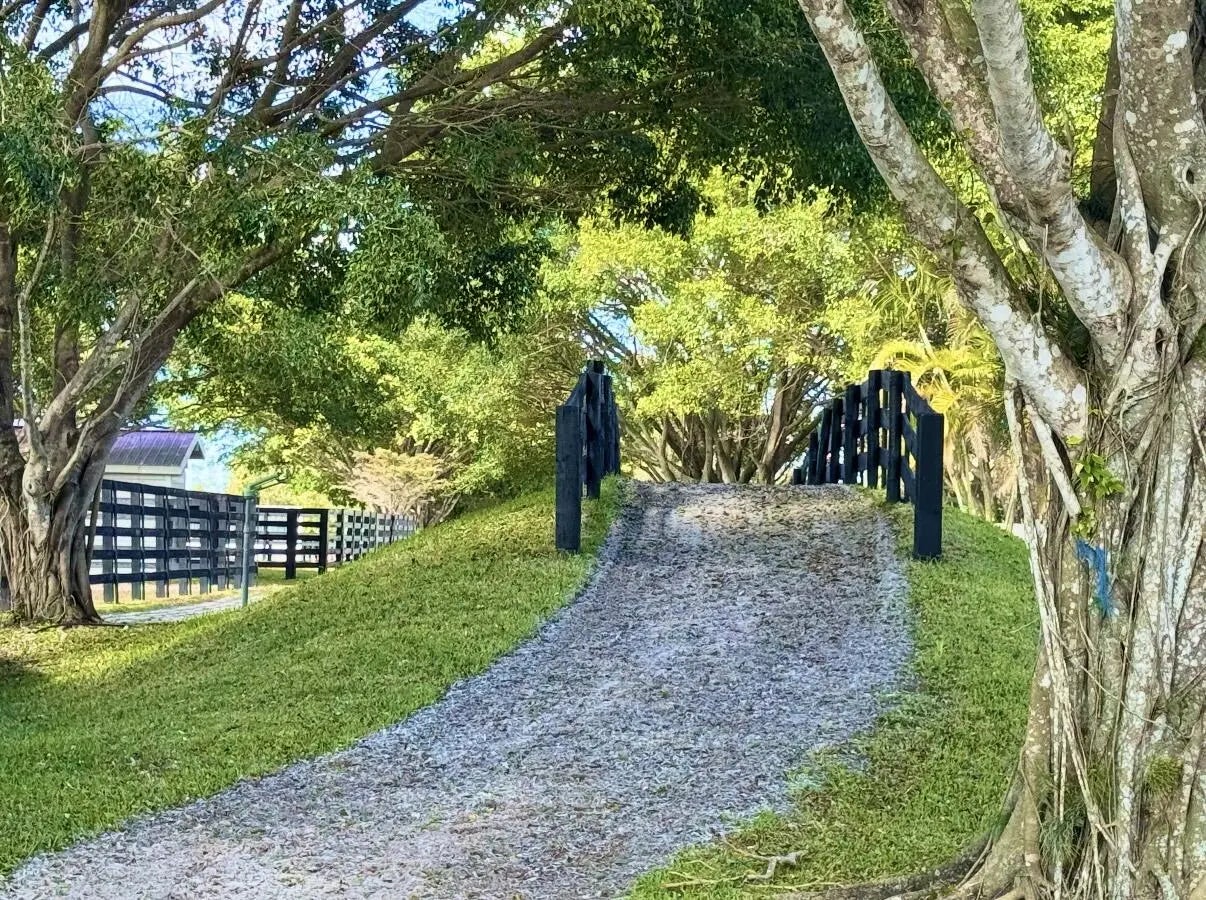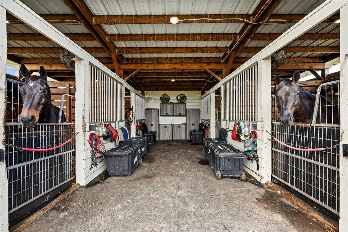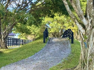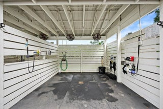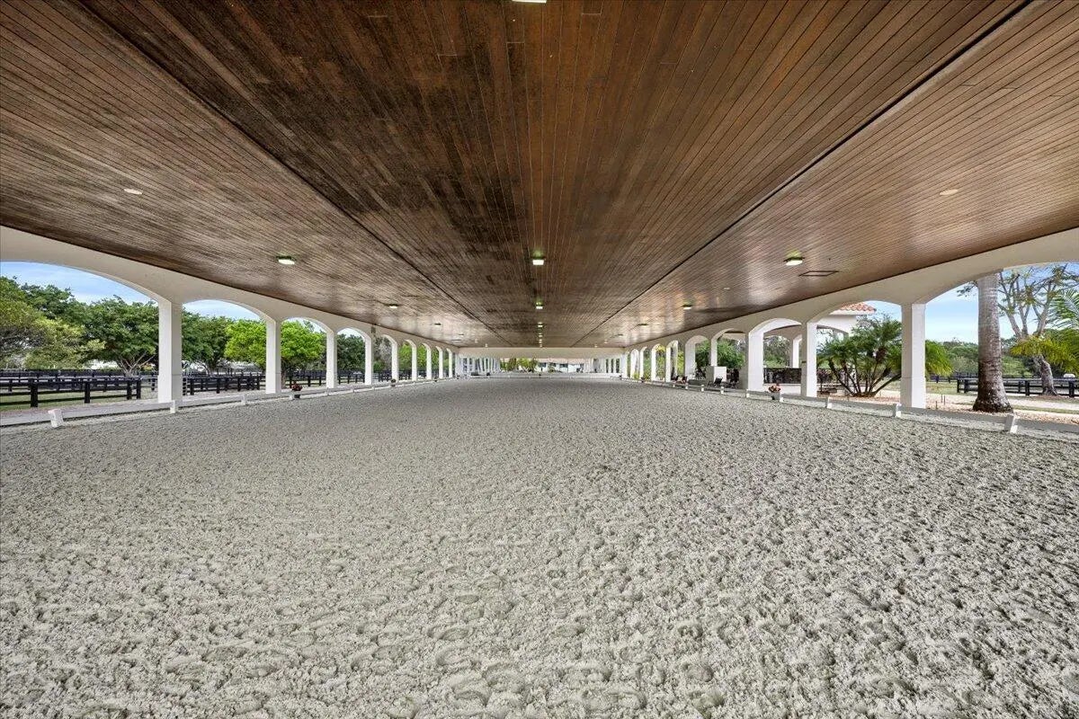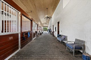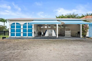 Enjoy the peaceful ambiance of this exceptional 20.72-acre professional Equine training facility with 4 barns totalling 41 stalls, 3 arenas (1 covered), 27 paddocks, a tree-shaded 6-horse Euro walker, Lunging ring, GGT exercise track, 3 apartments, and an owner's retreat, all nestled under the cool shade of mature, majestic Banyan and Royal Palm trees. Each of the 3 main show barns features a separate gated entry, fly spray systems, wash stalls, tack rooms, 1 staff apartment, barn bathrooms, feed rooms, privacy, functionality, and space for all equestrian disciplines. There are 37 main barn stalls, a 4-stall centre aisle pole barn with electricity, an attached tackroom, and two wash stalls. In addition, there are 8-In&Out stalls with generously sized paddocks, stall doors and electricity. Your horses will enjoy top-quality care with an on-site Equine Treatment/Exam room, an Aqua Treadmill, and two large farrier bays with automatic retractable awnings. The covered arena features an Ebb & Flow watering system, mirrors, lights and GGT footing. The 2-outdoor arenas are also mirrored and in private proximity to one another. The 3-bedroom owner's apartment is located on the second floor over two oversized garages and offers beautiful views of the farm. Owners will also have peace of mind with an excellent source of income-producing dry stalls, an 80 KW Kohler diesel generator, 4 RV hookups, a full farm water filtration system and plenty of space for horse trailers.