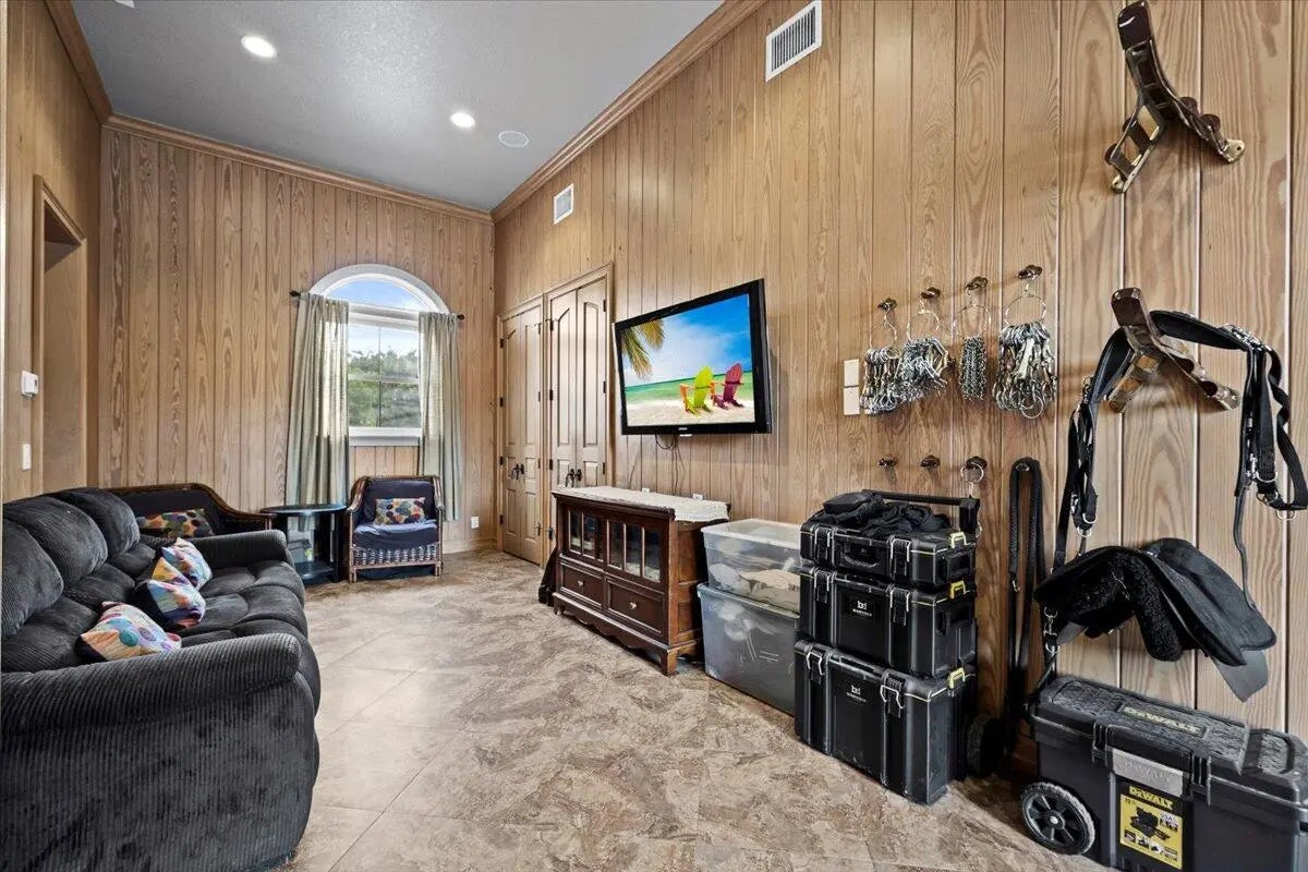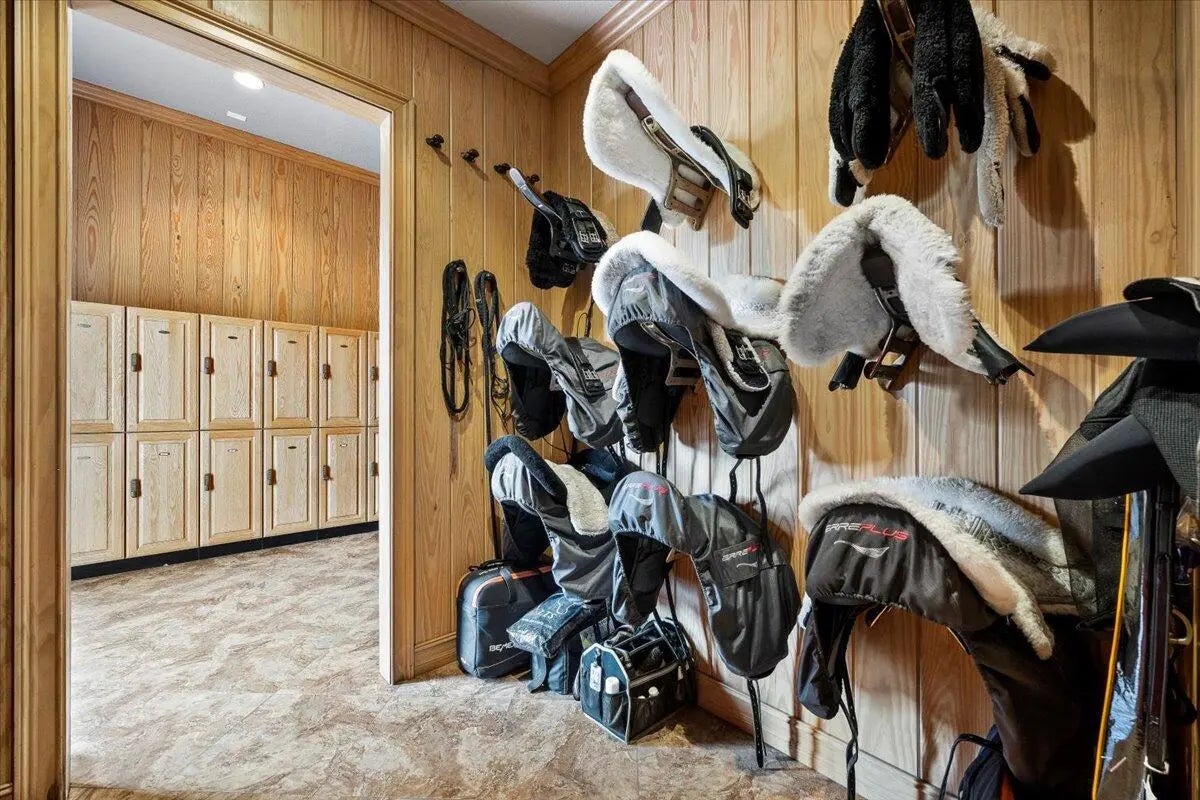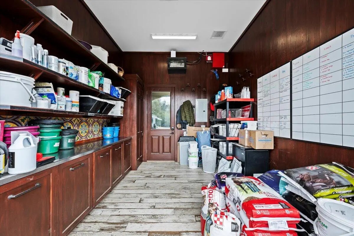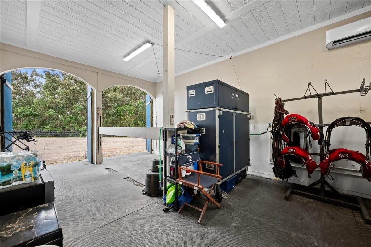 Enjoy the peaceful ambiance of this exceptional 20.72-acre professional Equine training facility with 4 barns totalling 41 stalls, 3 arenas (1 covered), 27 paddocks, a tree-shaded 6-horse Euro walker, Lunging ring, GGT exercise track, 3 apartments, and an owner's retreat, all nestled under the cool shade of mature, majestic Banyan and Royal Palm trees. Each of the 3 main show barns features a separate gated entry, fly spray systems, wash stalls, tack rooms, 1 staff apartment, barn bathrooms, feed rooms, privacy, functionality, and space for all equestrian disciplines. There are 37 main barn stalls, a 4-stall centre aisle pole barn with electricity, an attached tackroom, and two wash stalls. In addition, there are 8-In&Out stalls with generously sized paddocks, stall doors and electricity. Your horses will enjoy top-quality care with an on-site Equine Treatment/Exam room, an Aqua Treadmill, and two large farrier bays with automatic retractable awnings. The covered arena features an Ebb & Flow watering system, mirrors, lights and GGT footing. The 2-outdoor arenas are also mirrored and in private proximity to one another. The 3-bedroom owner's apartment is located on the second floor over two oversized garages and offers beautiful views of the farm. Owners will also have peace of mind with an excellent source of income-producing dry stalls, an 80 KW Kohler diesel generator, 4 RV hookups, a full farm water filtration system and plenty of space for horse trailers.