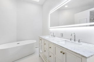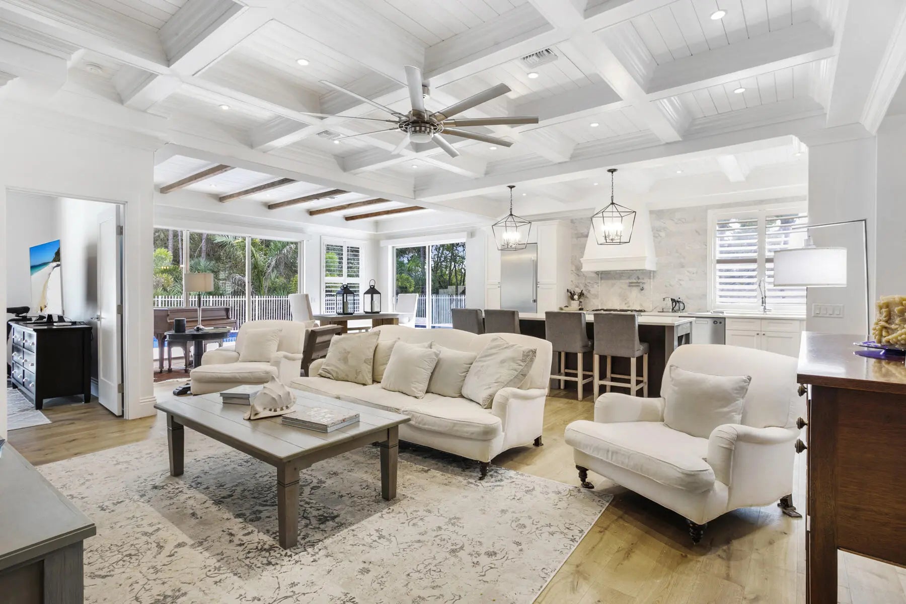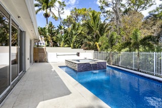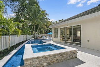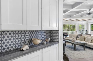 Completely transformed and unlike any other home in the community, this custom-renovated 3-bedroom, 2-bath residence with a dedicated office is situated on a quiet cul-de-sac with a wide lot backing to a preserve. Rebuilt from the ground up by a builder and pool contractor, the home showcases exceptional craftsmanship, architectural detail, and high-end finishes throughout. Interior highlights include European white oak flooring, custom coffered ceilings, designer lighting, impact windows and sliders, and a striking living area with electric fireplace and custom wood accent wall. The chef's kitchen features a 10-foot center island, quartz countertops, solid wood cabinetry, gas cooktop with pot filler, dual-fuel range, built-in Thermador refrigeration, ASKO dishwasher, wine/beverage refrigerator, and Carrera backsplash. The primary suite offers a spa-like bath with freestanding tub, custom shower, dual-sink vanity, and a fully built-out walk-in closet. Outdoor living is equally impressive with a heated gas pool and spa, shell white pavers, outdoor shower, firepit, putting green, artificial turf, custom BBQ area, and extensive landscape lighting. Additional features include a 19kW whole-house Generac generator, custom garage flooring and cabinetry, tile roof, seamless gutters, and a well-appointed laundry room. A rare opportunity to own a thoughtfully executed custom residence with superior quality throughout.