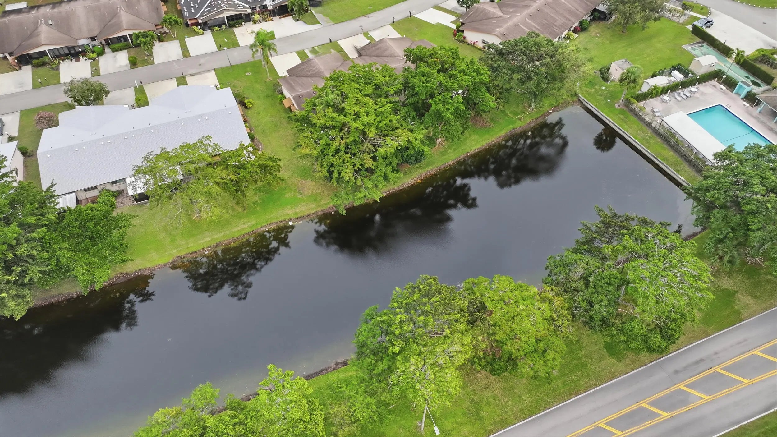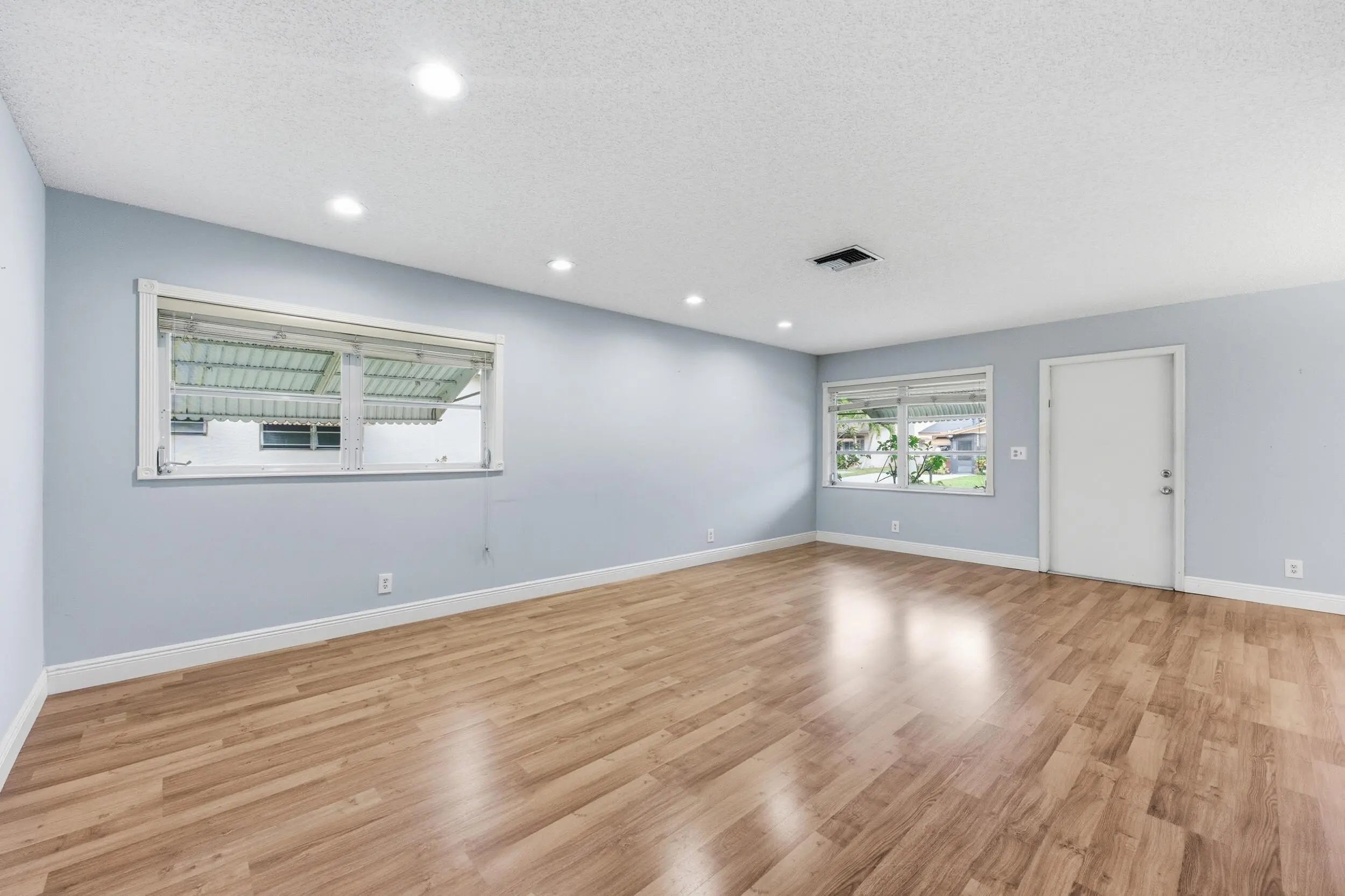 Welcome home to this charming two bedroom, two full bathroom waterfront villa featuring a screened-in patio with tranquil lake views. As you enter, you'll immediately notice the wood-look laminate flooring throughout the main living areas, complemented by updated recessed lighting and modern fixtures that create a bright and inviting atmosphere. The kitchen offers solid wood cabinetry, durable wood laminate countertops, a tiled backsplash, and an oversized dual sink with disposal. A convenient laundry closet is located within the kitchen, adding to the home's functional layout. The kitchen flows seamlessly into the living and dining areas, both generous in size and enhanced by updated trim, recessed lighting, and contemporary fixtures. The primary bedroom features wood-look vinyl flooring, a spacious walk-in closet, and peaceful views of the lake. The primary bathroom includes a solid wood shaker-style vanity and a fully tiled shower-tub combination. The secondary bedroom also offers wood-look laminate flooring, a full walk-in closet, and sliding glass doors that lead to the private screened patio overlooking the water. The secondary bathroom is equally updated with a solid wood vanity and modern hardware. The HOA covers lawn care and common area maintenance, making this a low-maintenance option for buyers seeking an easy lifestyle. Delray Villas 3 is a well-established 55+ community located just off Atlantic Avenue. You are minutes away from essential shopping, dining, and medical facilities, while the vibrant energy of Downtown Delray and award-winning beaches are just a short drive away. Community amenities include a pool and shuffleboard, providing the perfect balance of relaxation and activity.