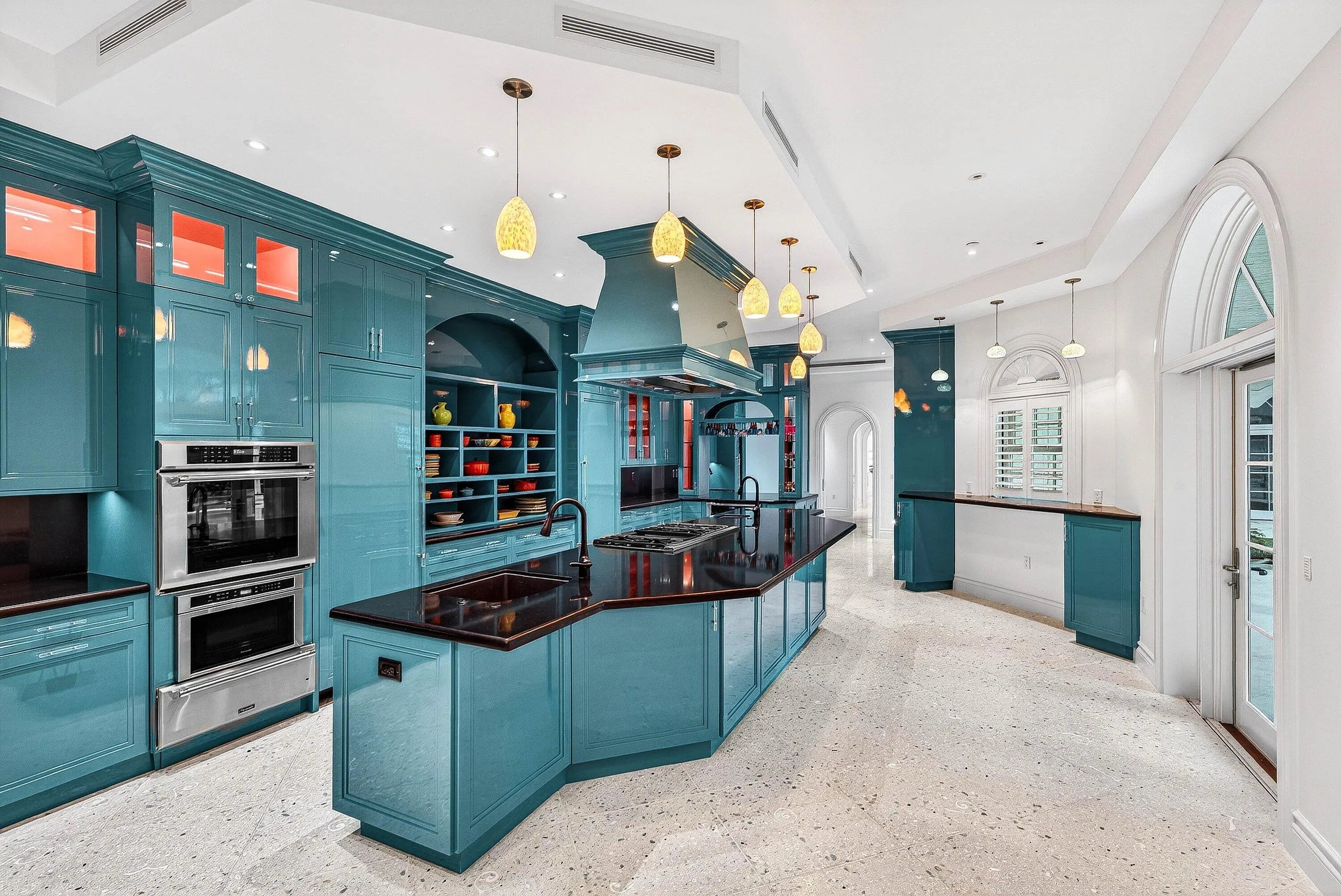 Built-in Barbecue, Outdoor Shower, Custom Lighting, Pool Bathroom