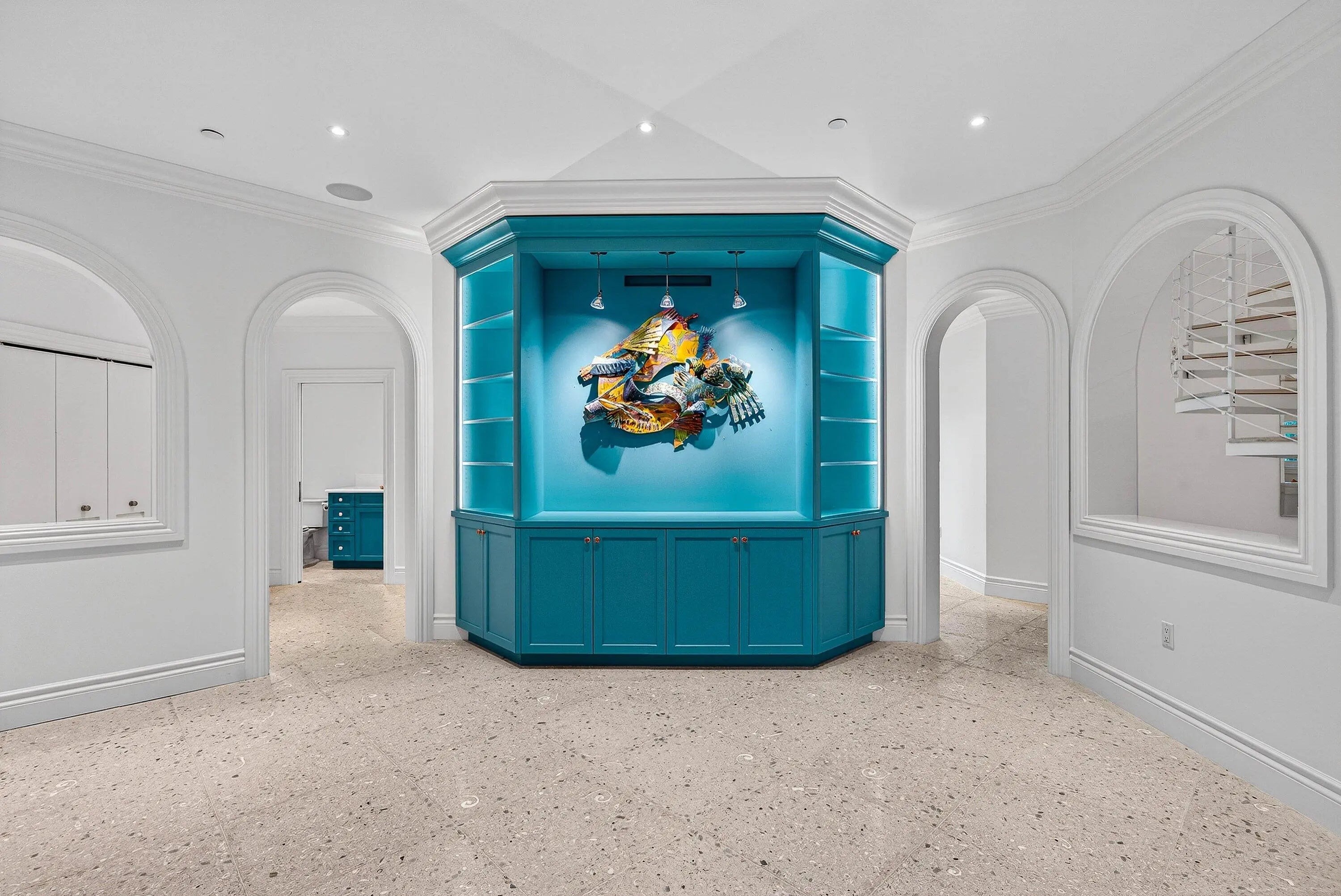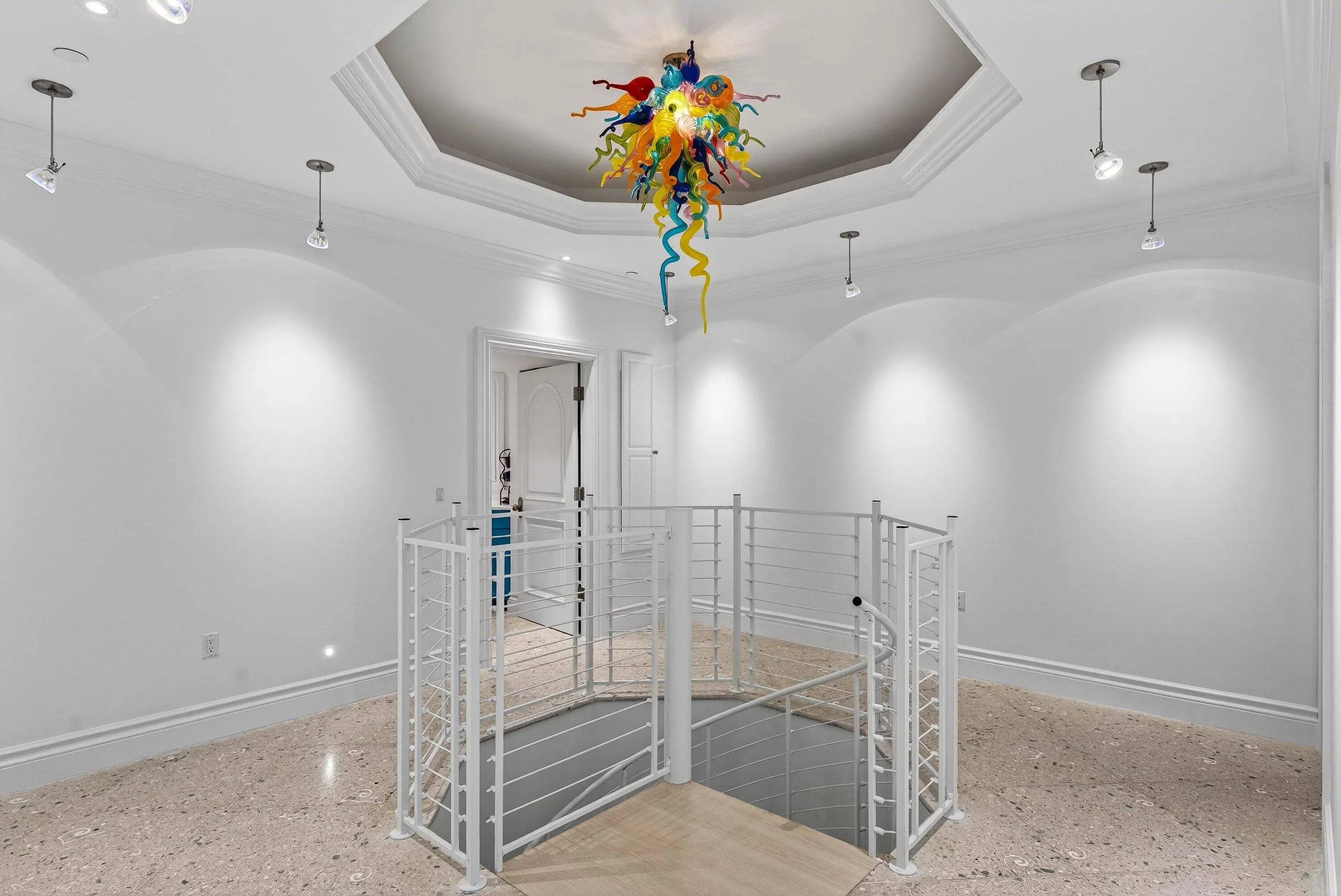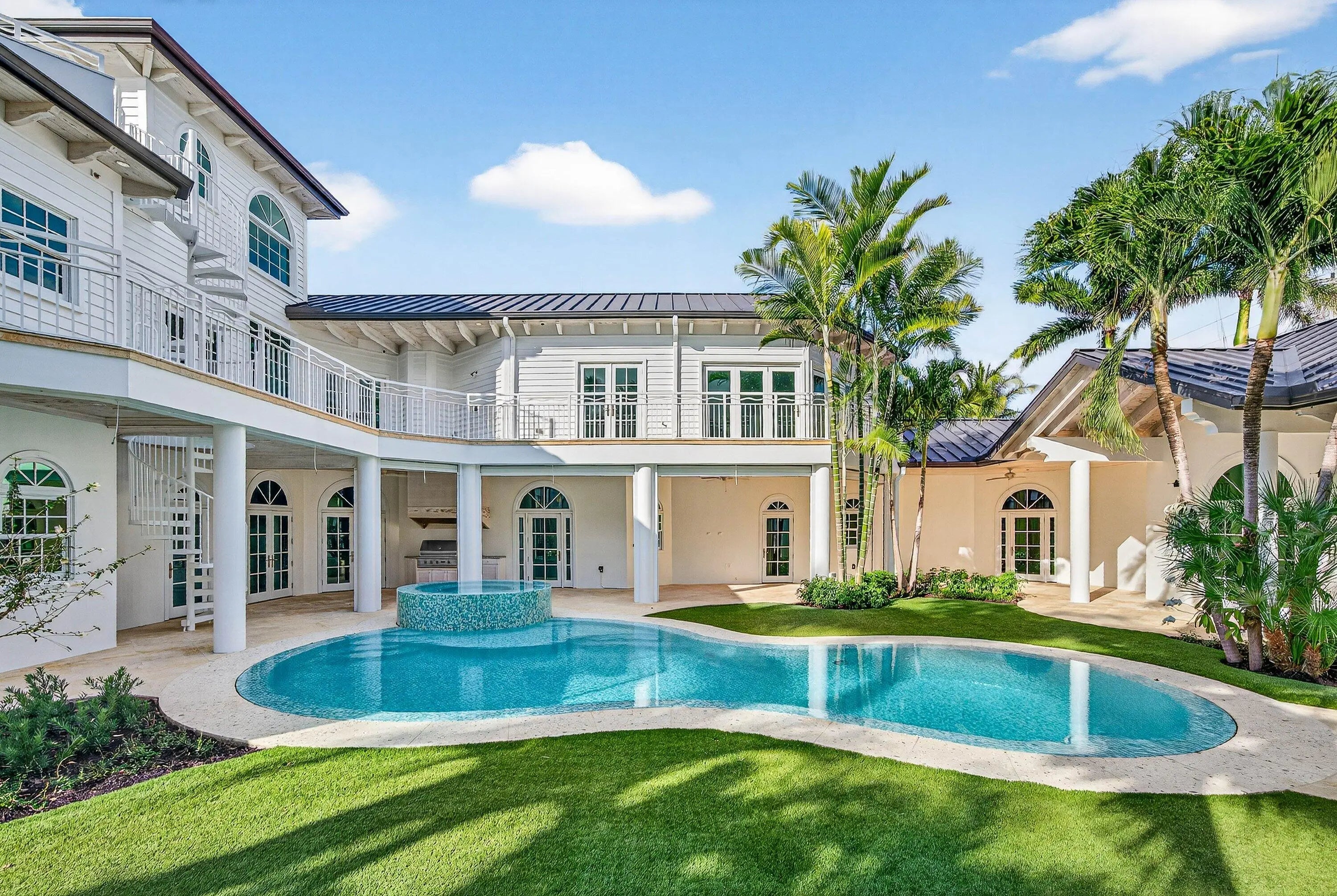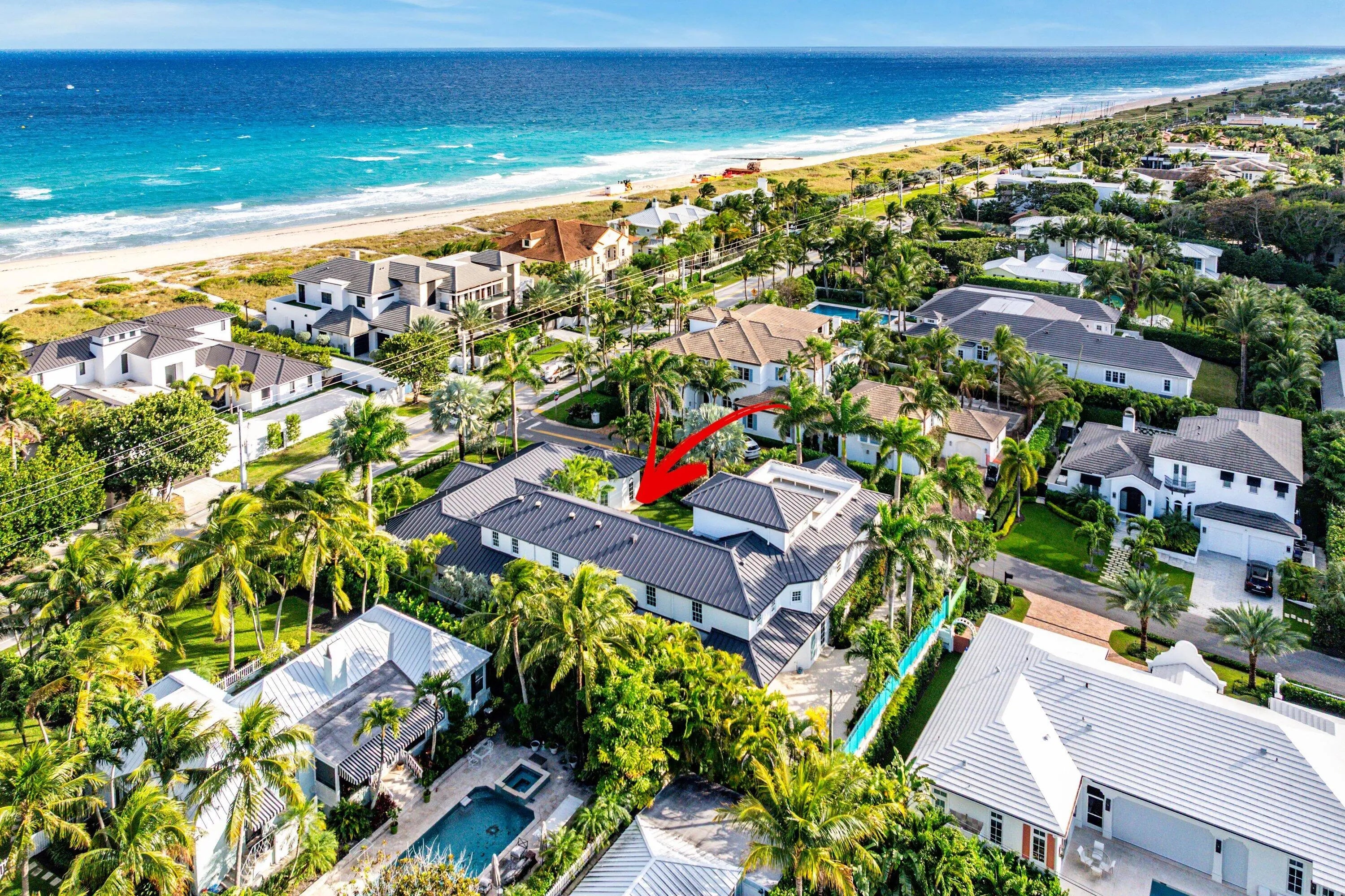 Welcome to an artfully designed luxury residence at 720 N Ocean Blvd, Delray Beach, FL, where whimsy meets modern comfort. This striking, unique single-family home spans over 7400 square feet and offers seven bedrooms, providing ample space for family and guests. Step inside to discover a world of architectural beauty, featuring built-ins, crown mouldings, and high ceilings that create an open and airy ambiance - a perfect backdrop for art. The spiral staircase is a striking focal point, while the sound system and wet bar enhance the home's entertainment capabilities. The chef's kitchen is a culinary dream, equipped to handle everything from intimate dinners to grand gatherings. Terrazzo floors flow throughout the home, complemented by the warm glow of chandeliers, recessed lighting, and natural light from skylights. The main floor primary suite offers a private retreat with luxurious amenities including a soaking tub and separate shower. The home offers a dual sided elevator, full house generator, reverse osmosis water filtration system, and video security system provides peace of mind. Outside, the property boasts a totally private, center courtyard that includes an infinity pool with spa, garage with gated drive access and a third floor sundeck with an ocean view, service kitchen and sauna. Private gated beach access ensures the opportunity to enjoy beautiful Delray beach. This home is not just a residence; it's a lifestyle, offering the perfect blend of privacy and convenience in the heart of Delray Beach. Don't miss the opportunity to make this exceptional property your own.