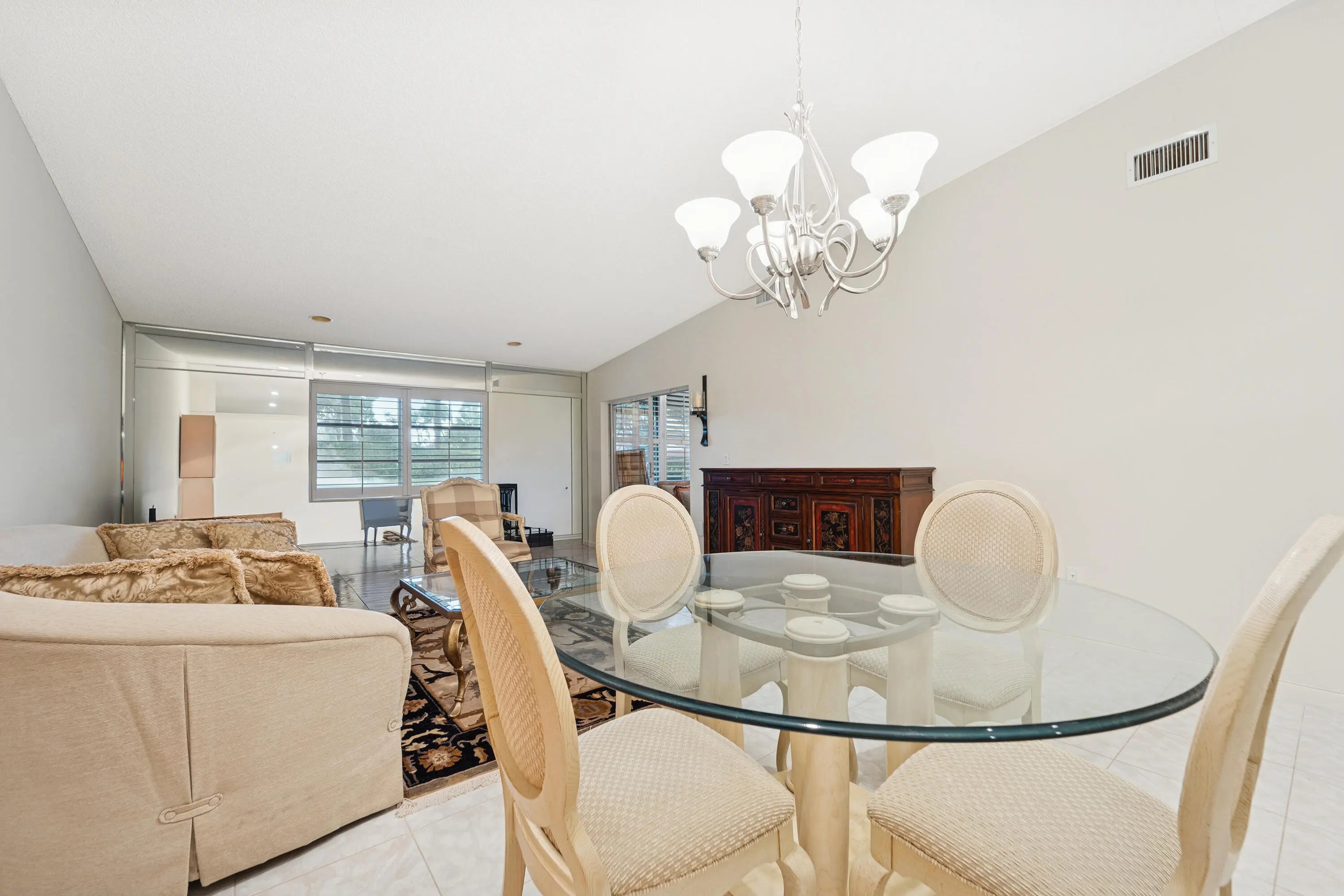 Walk right into the wide-open kitchen in this light, bright and beautifully maintained 2/2 Capri villa with air-conditioned, enclosed Florida room, inside laundry with room for full sized washer and dryer, and attached 1-car garage. Granite counter tops. Wood cabinets. Tile floors throughout except primary BR with high grade wood laminate. Two extra large closets in primary bedroom. Ensuite primary bath has new vanity, upgraded walk-in shower. New vanity in guest bath. Villa has been newly painted. Plantation shutters throughout including Florida room. Huntington Pointe is a meticulously maintained, 55+ guard-gated community offering a redesigned 53,000 sq. ft. clubhouse. Here you'll enjoy a 600-seat theater with year-round live entertainment and movies, an indoor heated pool, four outdoor heated pools with hot tubs, a fitness center, billiard room, aerobics studio, card rooms, ping-pong room, plus pickleball, bocce, and tennis. (Har-Tru courts coming soon). Residents can also take advantage of numerous clubs, activities, and a café that's open daily for breakfast and lunch.
