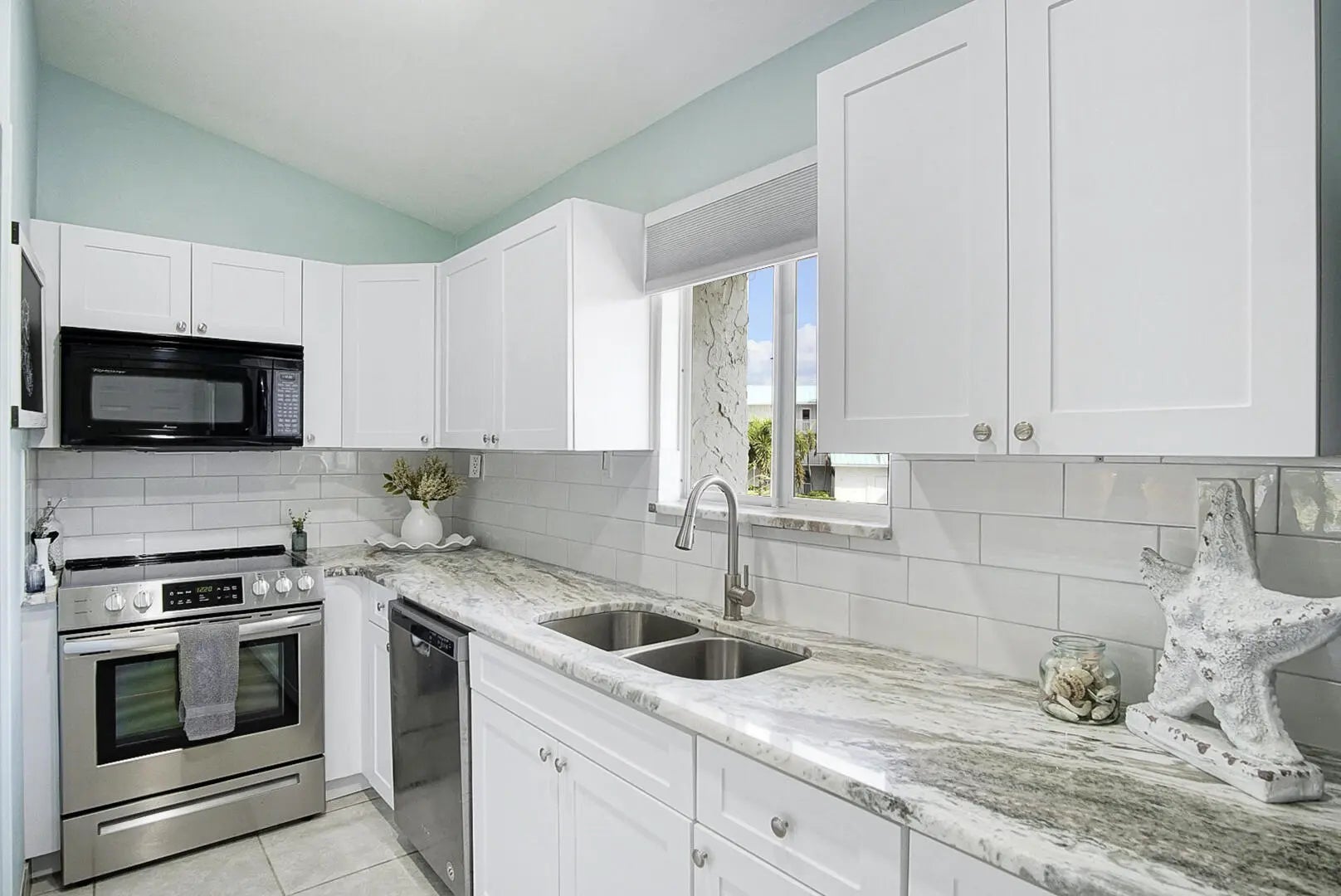 Gorgeous 2 bed, 2 bath, 2nd floor condo overlooking the 8th green, vaulted ceiling, master bed and living room lanai's, hurricane glass through out, close to the restaurant and amenities and only a 2 minute walk to the beach! Amazing rental income potential as well. Partially furnished. Enjoy beautiful Ocean Village and the many amenities it has to offer including 3500 feet of private beach, 9-hole 3 par golf course, bocce ball, shuffle board, tennis, pickleball, multiple pools and hot tub, fitness center, new restaurant and tiki bar, new resort style main pool, 24 hour gated community and close proximity to the Jetty and downtown Ft. Pierce.