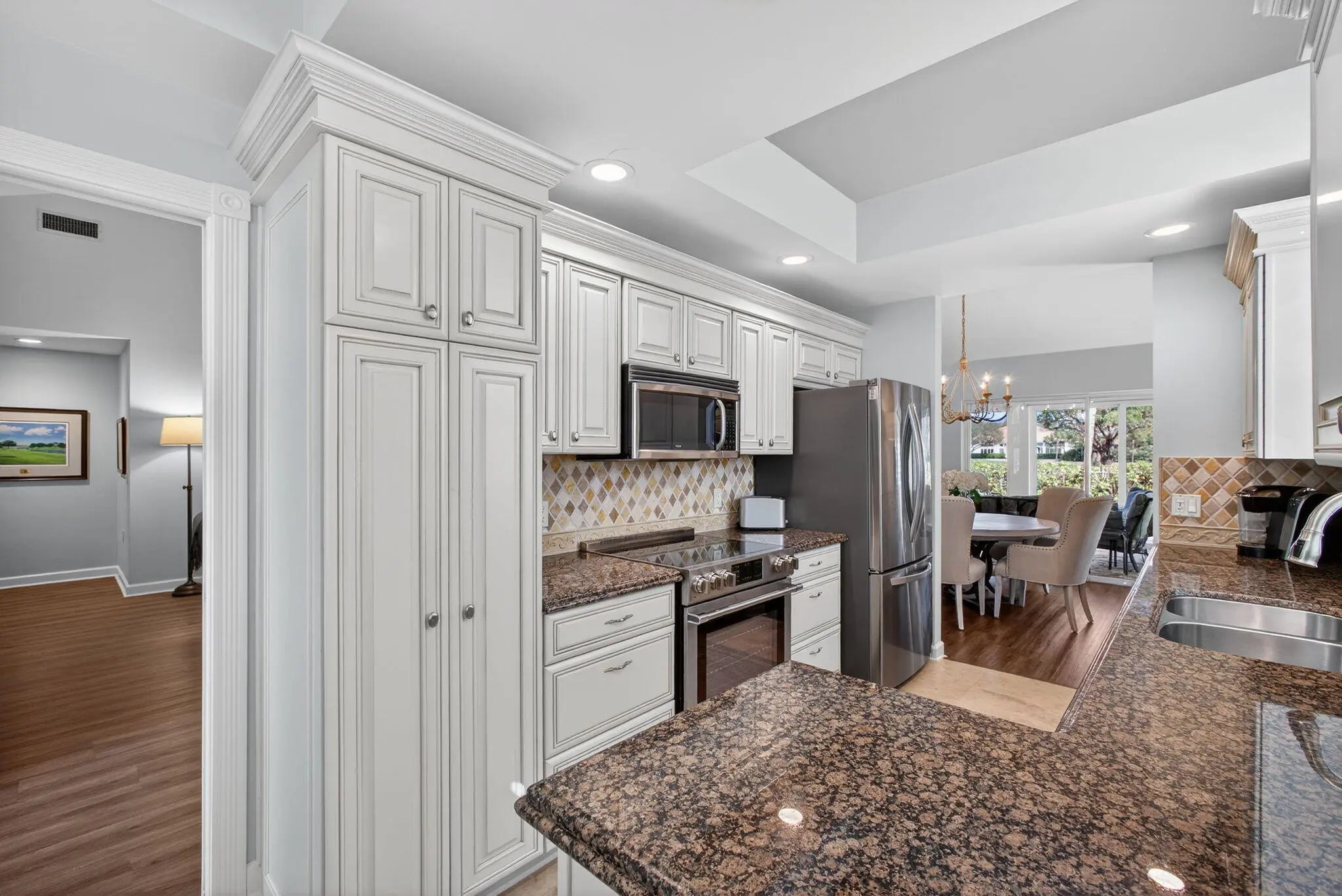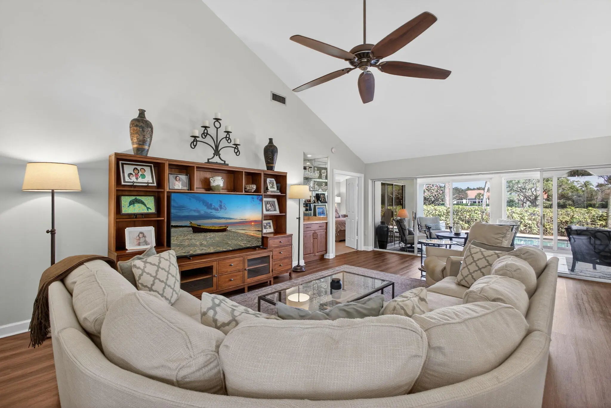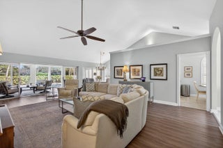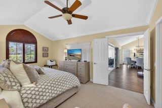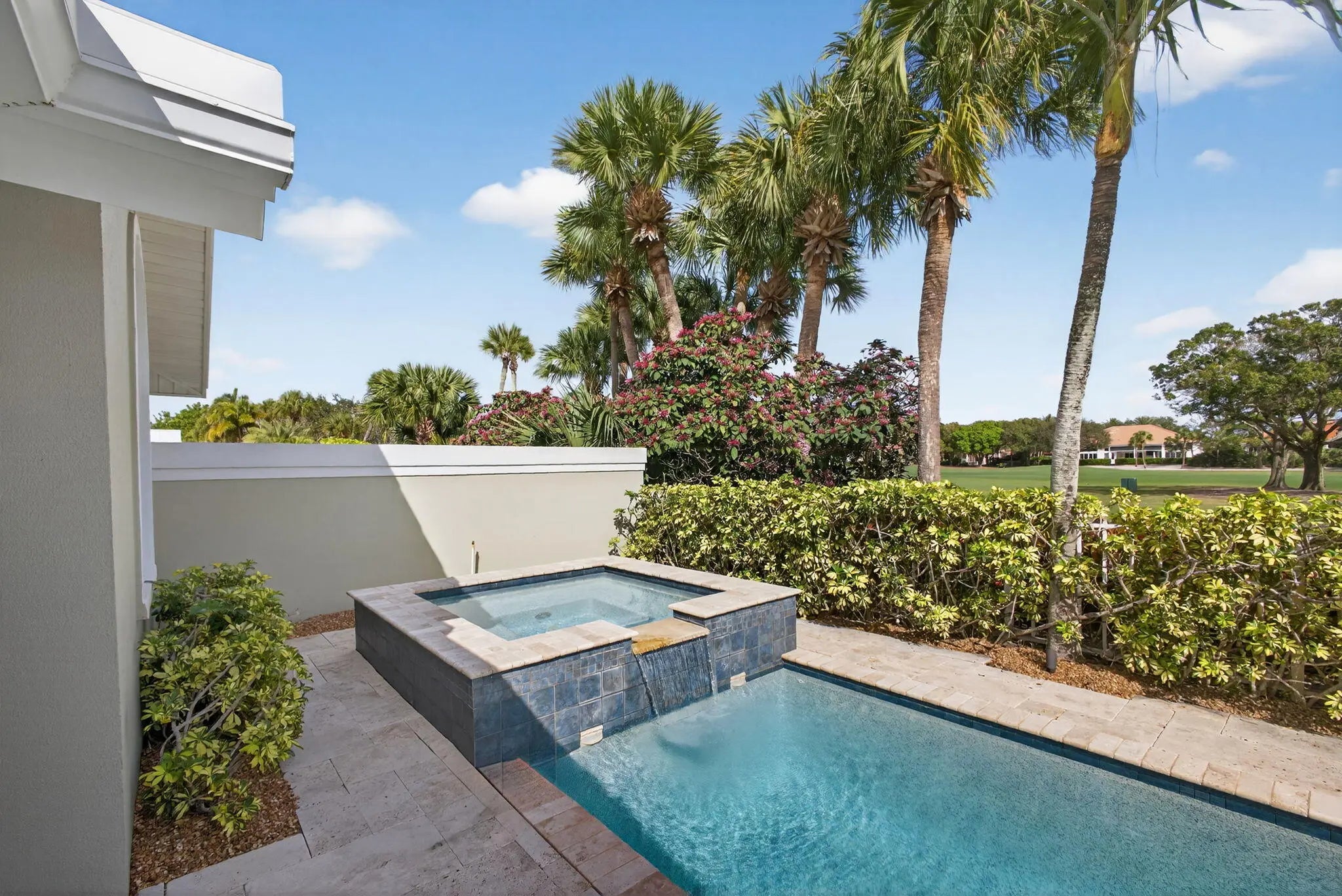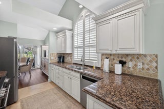 Beautifully renovated pool home nestled on spectacular golf course lot! This impressive single-story residence was renovated to perfection and features over 2,200 SF under air with 3 bedrooms, 2 baths, 2 car garage, extended living space, open patio with heated pool and spa, surrounded by hurricane impact windows! This enchanting home boasts open floor plan awash with tons of natural light, vaulted ceilings, wood-look tile floors, custom built-ins, elegant lighting and Plantation shutters throughout. Gourmet kitchen perfectly equipped with French style custom cabinetry, granite counter tops, decorative tile backsplash, stainless steel appliances and cozy breakfast area. Expanded lanai allows for additional living space (perfect for entertaining, office or media room), with an array of sliding glass doors for enjoyment of your fabulous backyard, pool/spa and sweeping golf course vistas. Grand primary suite with vaulted ceilings, crown molding, Berber carpet, and his & her closets lead to luxurious bath. This elegant bath boasts custom vanity, dual sinks and mirrors, tiled flooring, separate tub and extended shower with frameless glass. Visitors will enjoy their warm and inviting bedrooms and renovated guest bath. Separate laundry room with an abundance of cabinets, laundry tub/sink and washer and dryer. Bask in your incredible outdoor oasis! Sprawling backyard boasts travertine patio, pool and spa, sweeping golf views and fenced yard. Meticulously maintained, this beautiful pool home has an array of details and finishes that cannot be captured through photos. This is a perfect opportunity to live in the desirable DiVosta-built community of Saratoga Bay. Centrally located overlooking the prestigious Bear Lakes Country Club and minutes to Downtown West Palm Beach, Clematis Street, PBI Airport, and Florida's finest beaches!