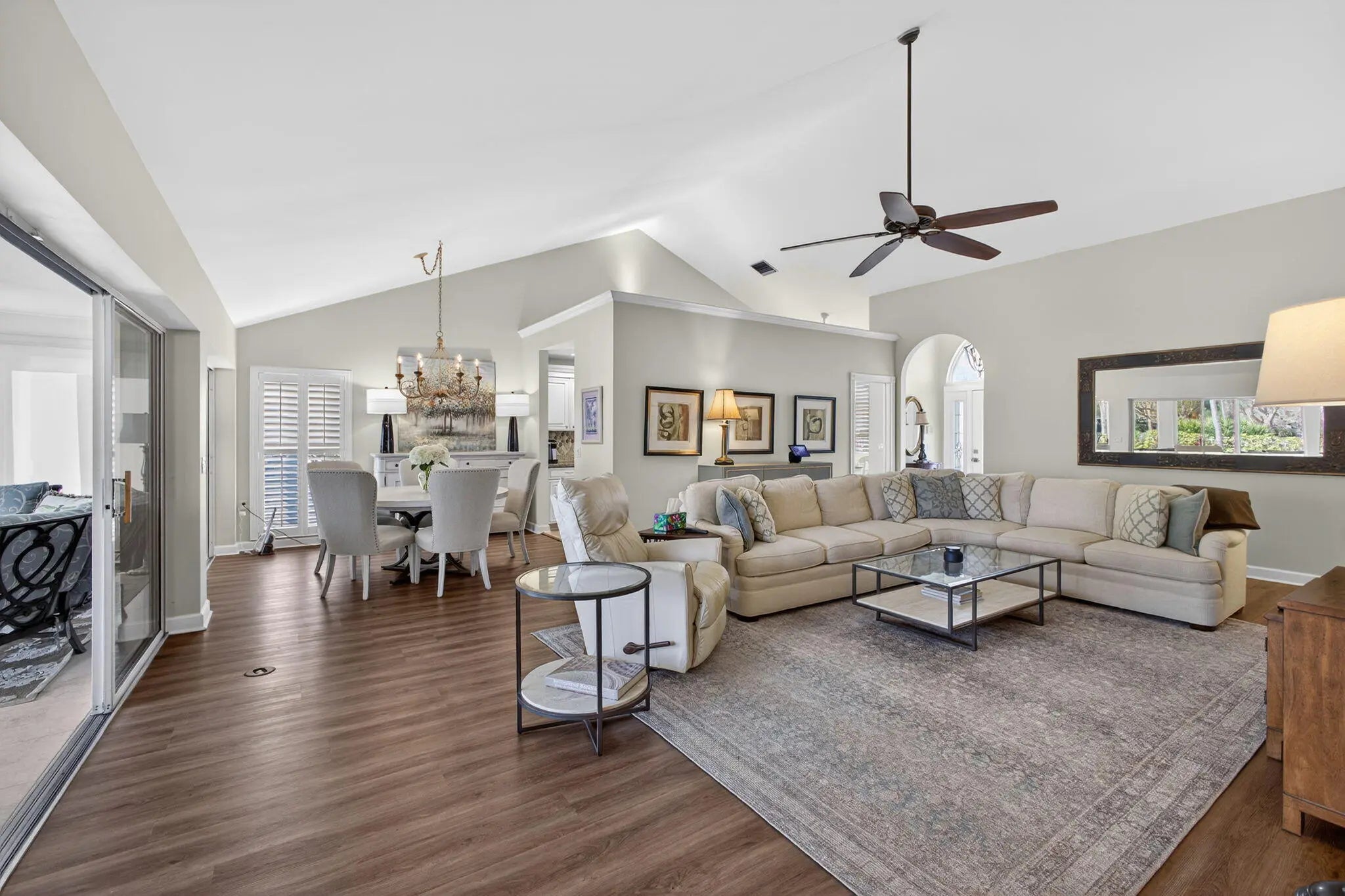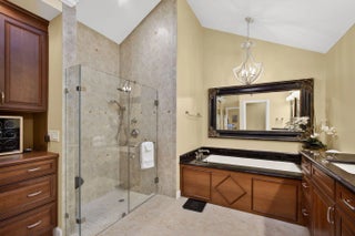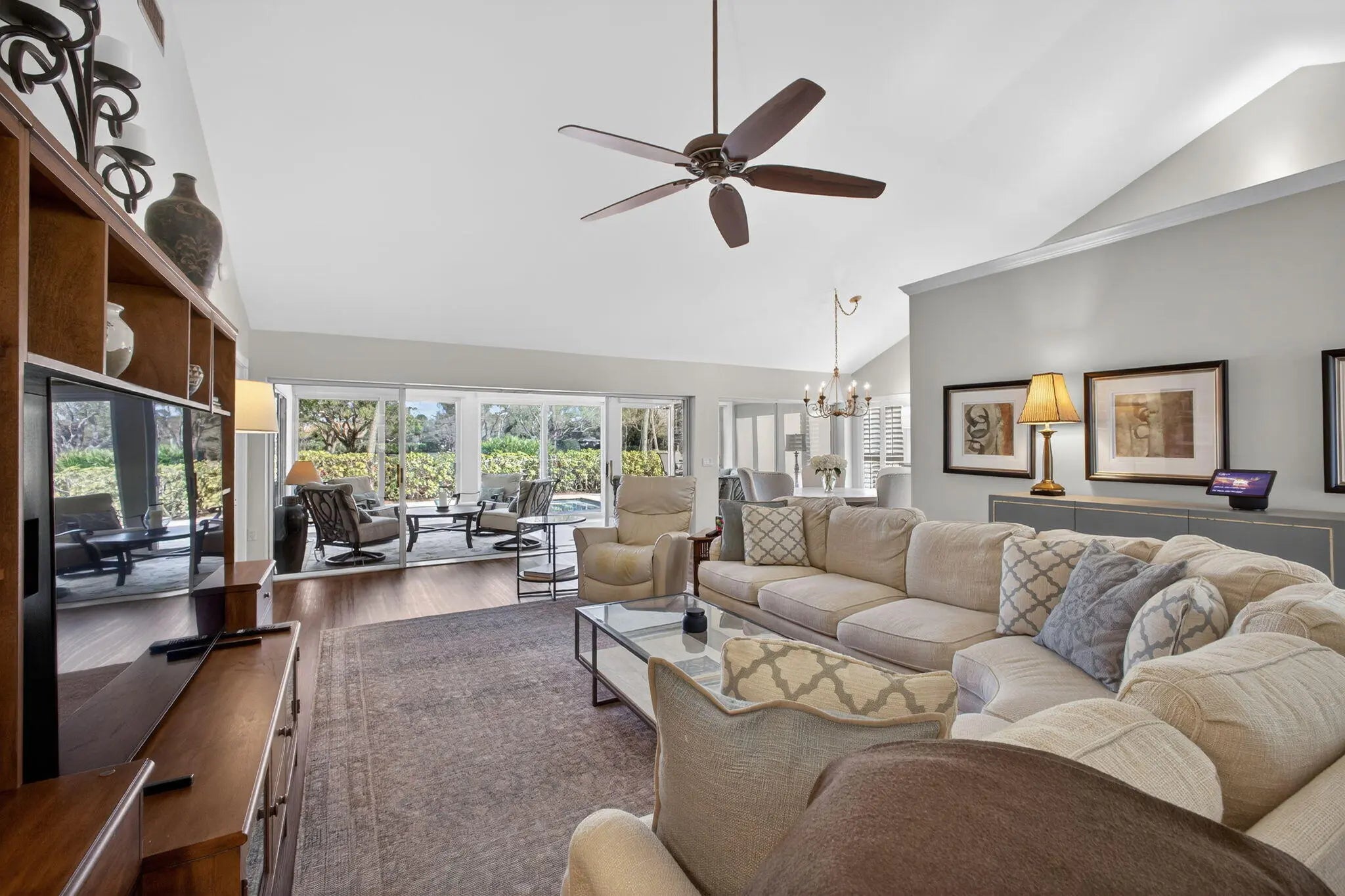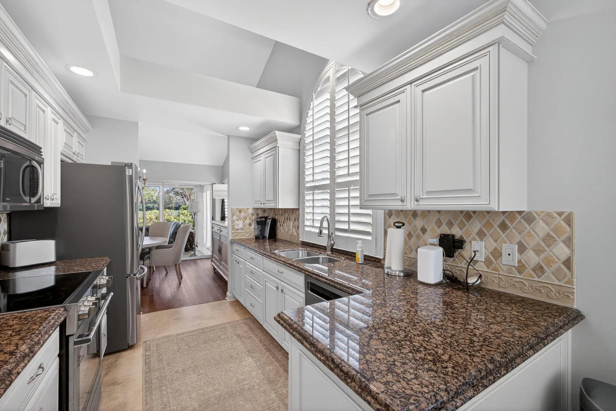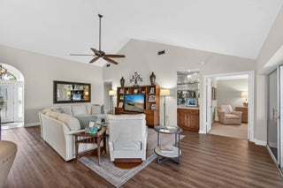 Beautifully renovated pool home nestled on spectacular golf course lot! This impressive single-story residence was renovated to perfection and features over 2,200 SF under air with 3 bedrooms, 2 baths, 2 car garage, extended living space, open patio with heated pool and spa, surrounded by hurricane impact windows! This enchanting home boasts open floor plan awash with tons of natural light, vaulted ceilings, wood-look tile floors, custom built-ins, elegant lighting and Plantation shutters throughout. Gourmet kitchen perfectly equipped with French style custom cabinetry, granite counter tops, decorative tile backsplash, stainless steel appliances and cozy breakfast area. Expanded lanai allows for additional living space (perfect for entertaining, office or media room), with an array of sliding glass doors for enjoyment of your fabulous backyard, pool/spa and sweeping golf course vistas. Grand primary suite with vaulted ceilings, crown molding, Berber carpet, and his & her closets lead to luxurious bath. This elegant bath boasts custom vanity, dual sinks and mirrors, tiled flooring, separate tub and extended shower with frameless glass. Visitors will enjoy their warm and inviting bedrooms and renovated guest bath. Separate laundry room with an abundance of cabinets, laundry tub/sink and washer and dryer. Bask in your incredible outdoor oasis! Sprawling backyard boasts travertine patio, pool and spa, sweeping golf views and fenced yard. Meticulously maintained, this beautiful pool home has an array of details and finishes that cannot be captured through photos. This is a perfect opportunity to live in the desirable DiVosta-built community of Saratoga Bay. Centrally located overlooking the prestigious Bear Lakes Country Club and minutes to Downtown West Palm Beach, Clematis Street, PBI Airport, and Florida's finest beaches!