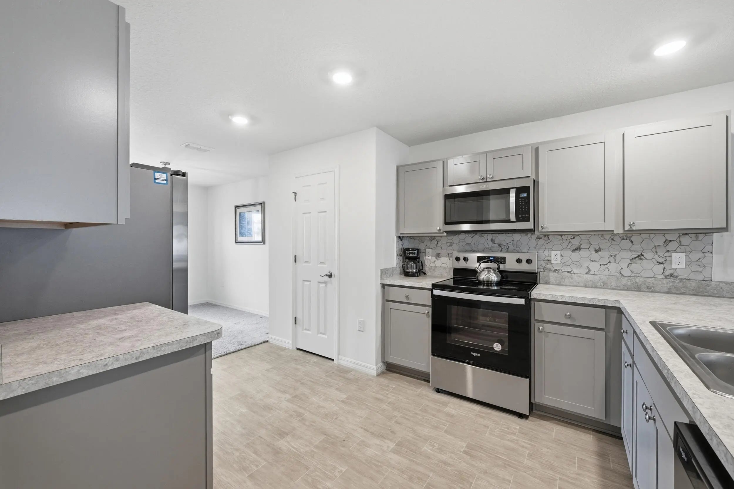 MOVE IN READY POOL HOME! BRING OFFERS! Why wait to build? Enjoy peace of mind in this 2024 home with a pool, featuring 3 bedrooms, 2 bathrooms, and a 2-car garage with attractive stone accents on the front exterior. The kitchen boasts a stylish backsplash and an open flow and functional layout. Step outside to a 12x24 pool completed in 2025, with a sitting ledge, app-controlled automatic cleaning system, programmed control box, and pool equipment including a pool vacuum. A white vinyl fence (2025) adds privacy. Dont miss your chance to get into a newer home with a pool, this doesn't happen often. Great Location to amenities, restaurants, and the Port District.
