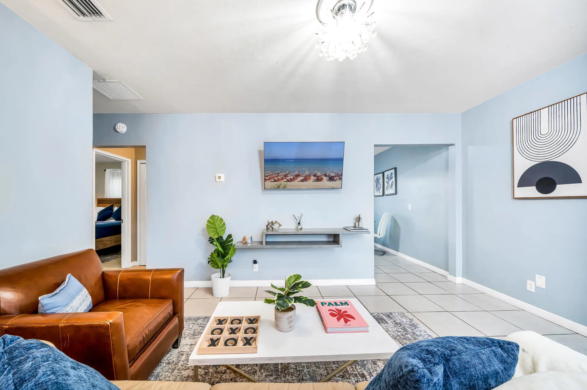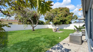 Fully furnished and remodeled classic, one-story, 2BR/1BA beach home offered as a Seasonal or Annual Rental. This private, tropical, fully-fenced backyard terrace is an entertainer's dream! Giant backyard. The home sleeps 6 guests. The total monthly rent is $5,950 for a seasonal lease & $3,950 for an annual lease.