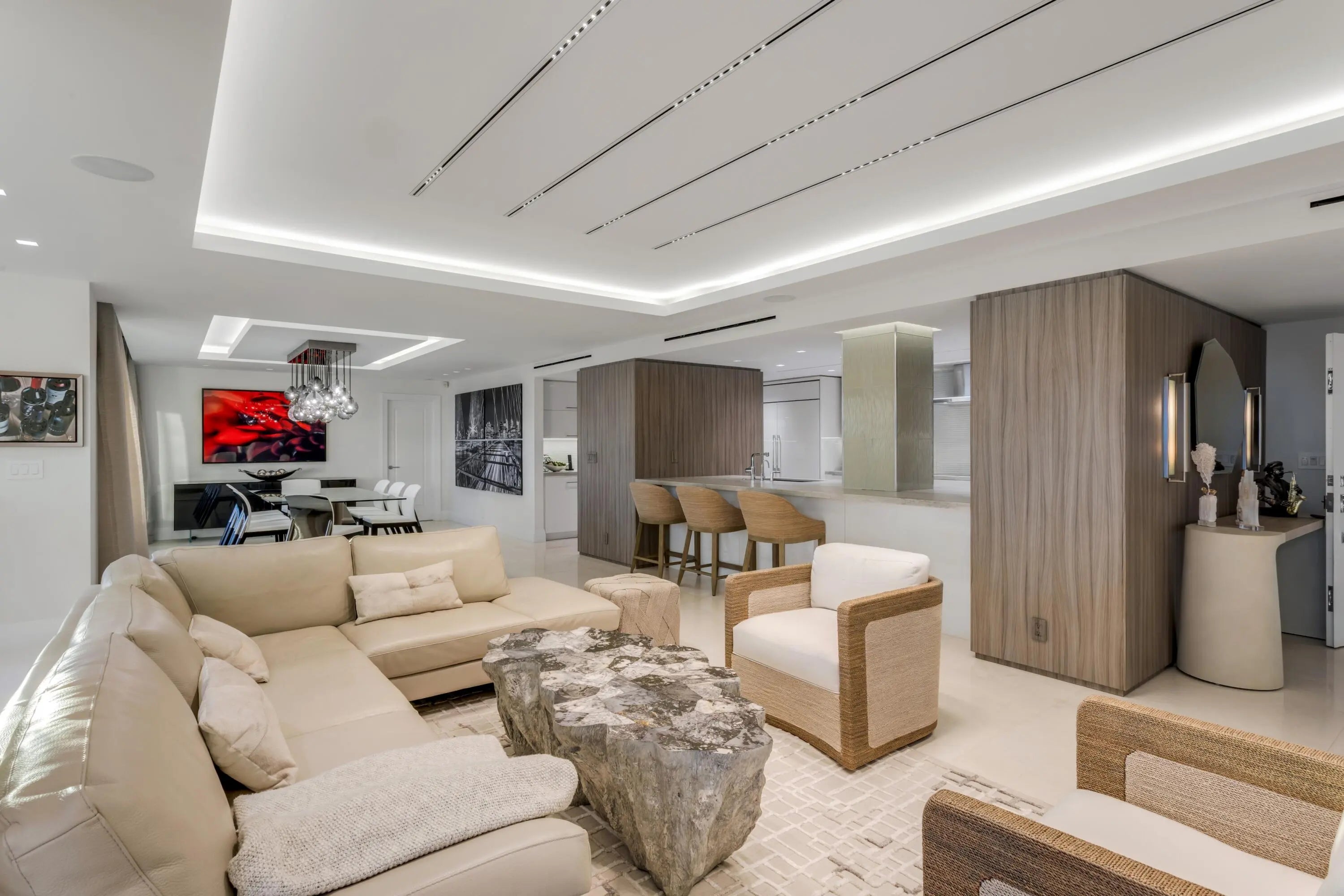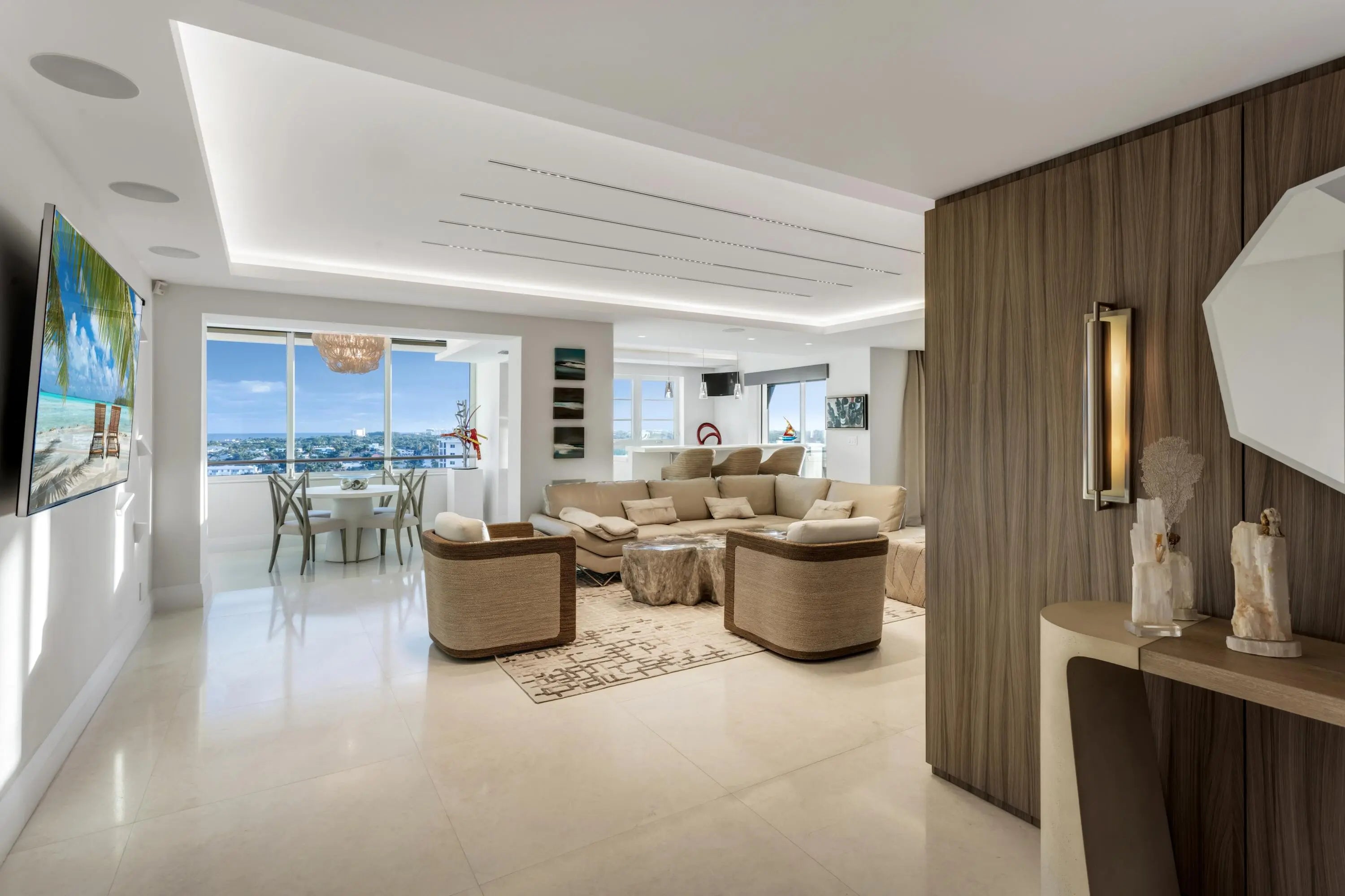 Moments away from the ocean on Atlantic Avenue, Delray Beach, this chic contemporary penthouse offers awe-inspiring ocean, Intracoastal and city views. Details include a flowing open-concept layout, a split-bedroom plan for privacy, gourmet kitchen and a lounge with a bar. This sophisticated loft-like in-town retreat offers the discerning owner the epitome of luxury seaside resort-style living. 50 East Road Penthouse 12-G, Delray Beach, Florida. The 12-floor 95-unit Barr Terrace condominium complex offers waterfront living in a downtown Delray Beach location, just moments away from the ocean and at the very doorstep of vibrant Atlantic Avenue's shopping, dining and nightlife venues. Amenities and services include an onsite lobby manager, fitness center, community/card room, BBQ area and bike storage. PROPERTY: On beautifully landscaped grounds fronting the Intracoastal Waterway and Delray Beach's tony Atlantic Avenue, residents of Barr Terrace enjoy a resort-style pool set within an expansive patio. RESIDENCE: Welcome to your personal slice of paradise! This rare 3,400± square-foot double-unit penthouse is perched on the top floor of Barr Terrace, the tallest building in Delray Beach. Its premier location offers easy access to all that the town has to offer. Vibrant Atlantic Avenue, pristine sugar-sand beaches and the private Seagate Beach Club are all just moments away. Completely oriented to take advantage of extraordinary ocean, intercoastal and city views, the principal formal rooms open to the bright and airy family room and sunroom, both wrapped in multiple banks of windows, in an ideal layout for gracious entertaining and casual gatherings. Also, the elegant living room and dining room feature a congenial amenity for hosting. Both are adjacent to the lounge, where the full-service bar is detailed by an underlit countertop and accommodates seating. The gourmet kitchen blends form with function, fitted with sleek custom cabinetry, quartz countertops, glass-mosaic backsplashes and professional grade appliances. With a split bedroom plan, the primary suite is placed separately for the ultimate in privacy. The bedroom, with an attractive built-in wall headboard, offers spectacular views. Completing the suite are two custom-fitted walk-in closets and a spa-inspired bathroom with custom cabinetry, quartz countertop, dual sinks, spa tub and a glass-enclosed multi-head shower. The guest bedroom suite, also offering awesome views, comprises a luxe ensuite bathroom and a large custom fitted walk-in closet. The third guest bedroom can also serve as an office/library. Details throughout include large-format marble flooring, decorator ceilings, elegant wall coverings, designer lighting, impact-glass windows and remote-controlled Hunter Douglas blinds. Completing the layout is a laundry room, and coming with this penthouse is covered parking. This sophisticated loft-like in-town retreat with incredible views offers the discerning owner the epitome of luxury seaside resort-style living. DISCLAIMER: Information published or otherwise provided by the listing company and its representatives including but not limited to prices, measurements, square footages, lot sizes, calculations, statistics, and videos are deemed reliable but are not guaranteed and are subject to errors, omissions or changes without notice. All such information should be independently verified by any prospective purchaser or seller. Parties should perform their own due diligence to verify such information prior to a sale or listing. Listing company expressly disclaims any warranty or representation regarding such information. Prices published are either list price, sold price, and/or last asking price. The listing company participates in the Multiple Listing Service and IDX. The properties published as listed and sold are not necessarily exclusive to listing company and may be listed or have sold with other members of the Multiple Listing Service. Transactions where listing company represented both buyers and sellers are calculated as two sales. "No payments made until title passes" Some affiliations may not be applicable to certain geographic areas. If your property is currently listed with another broker, please disregard any solicitation for services. Information published or otherwise provided by seller, listing company or its representatives is deemed reliable but are not guaranteed and subject to errors, omissions, or changes without notice. Copyright 2024 by the listing company. All Rights Reserved.