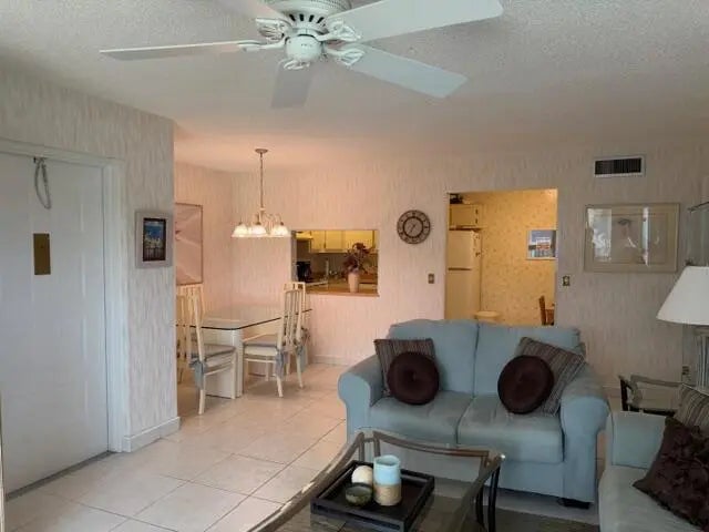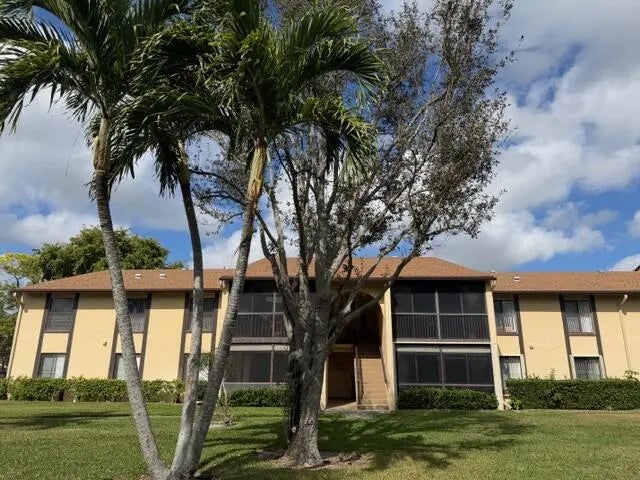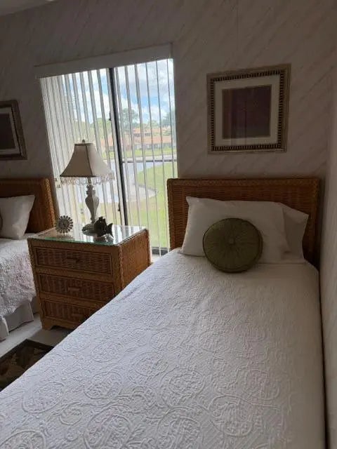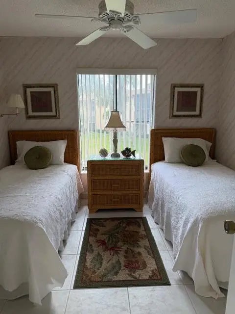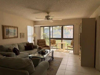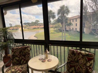 NEW TO THE MARKET! This beautifully maintained two-bedroom, two-bath condo is located in a desirable 55+ adult community and offers serene water views from every window. The highlight of this residence is the spacious covered screened patio to enjoy your morning coffee as well as an evening cocktail overlooking the peaceful pond. The residence features updated white tile flooring throughout and has been meticulously cared for, having been used only seasonally. Enjoy peace of mind with all-newer appliances, including air conditioning, kitchen and laundry, along with new toilets, updated hardware and ceiling fans throughout the home. Every detail reflects pride of ownership. The very active community offers and exceptional array of amenities. Start your day with a game of pickleball, tennis or bocce. Move over to the Olympic-size heated swimming pool or hot tub mid day and then finish the day playing cards in the game room which are all perfect for an engaging and social life. Ideally situated in West Palm Beach, residents are just minutes from vibrant entertainment, theater, dining and some of Florida's most beautiful beaches. A rare opportunity all for under $175,000 to enjoy comfort and convenience. Low condo fees include water, basic cable and building maintenance. New roof 2024.NO ASSESMENTS.OFFERED FULLY FURNISHED PROVIDING A TURNKEY OPPORTUNITY FOR EFFORTLESS LIVING.