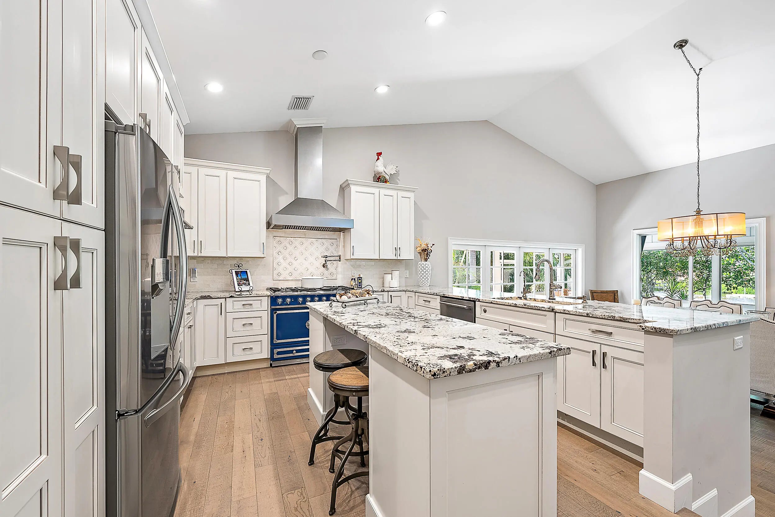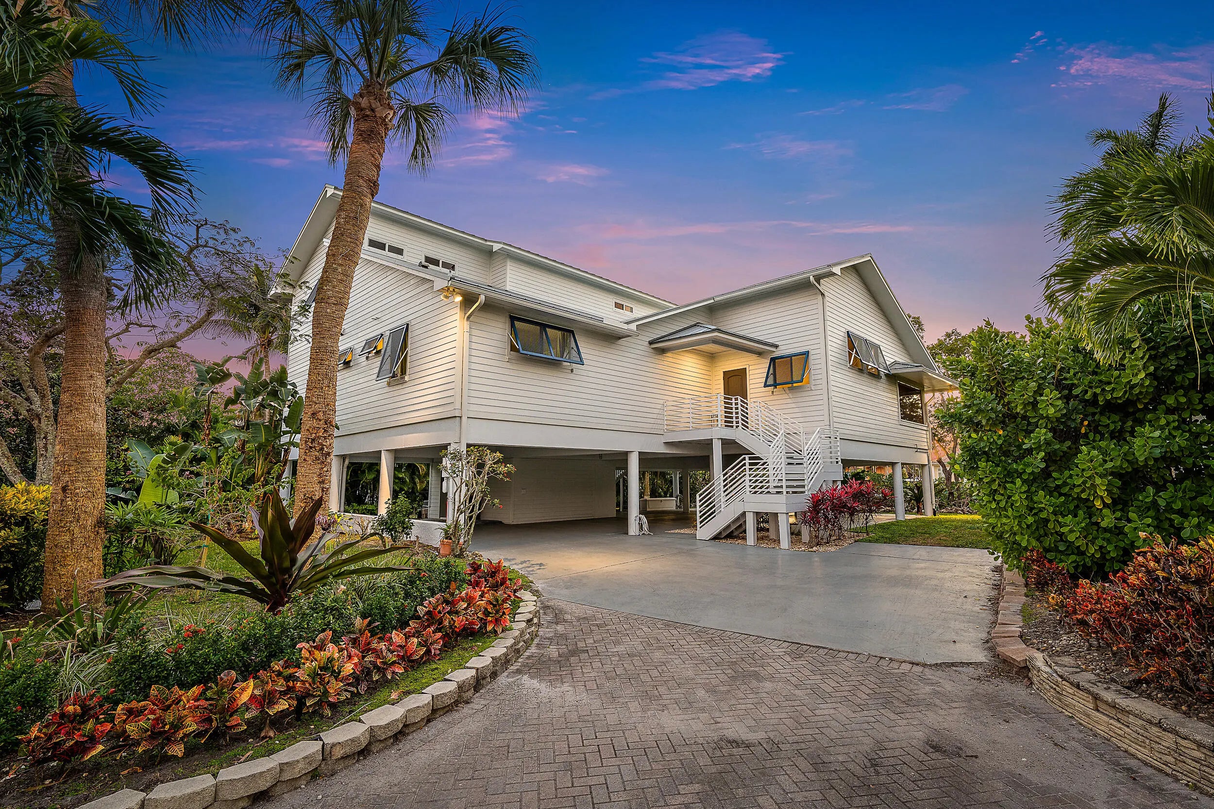 This gorgeous riverfront home boasts 100 feet of water frontage, sweeping views, and a dock with a 12,500 lb boat lift. It's a 4-bedroom, 3-bath masterpiece, impeccably remodeled, with top tier finishes. It boasts gorgeous furniture and furnishings, making it completely turnkey. Enjoy a wraparound porch with sunset views from every angle and a master balcony with stunning vistas. This rare gem won't last long!