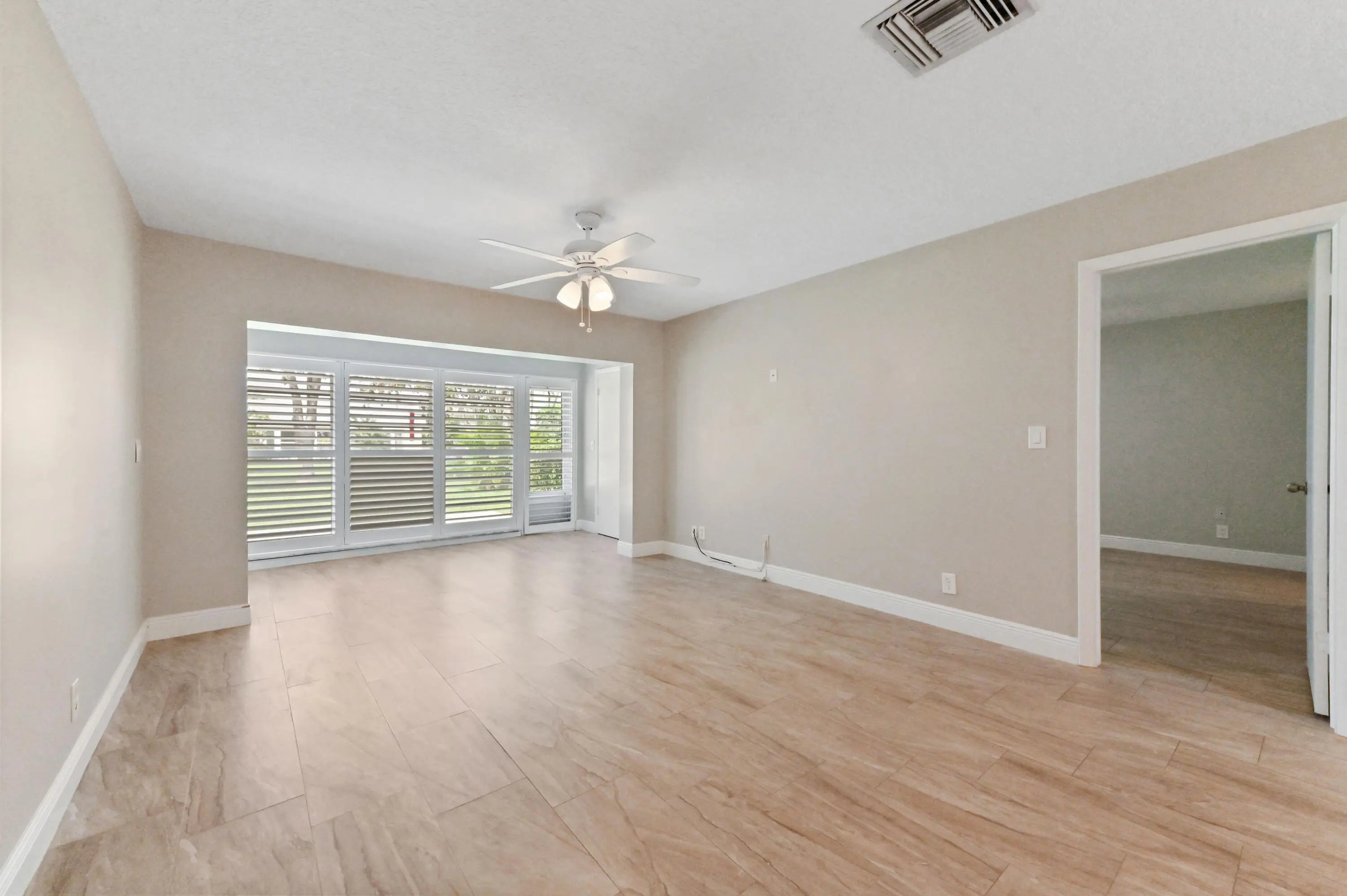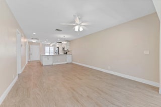 Step into this beautiful 2-bed, 2-bath villa, designed for ultimate tranquility with no neighbors above. From the moment you enter, natural light floods the space, highlighting luxury upgrades throughout. The custom kitchen boasts modern finishes, while the elegantly remodeled bathrooms and sleek tiled flooring elevate the home's aesthetic. Plantation shutters add a refined touch, and the open-concept design seamlessly connects the kitchen to the spacious living area—ideal for both everyday living and entertaining. Step outside to your private patio, surrounded by lush greenery, offering a serene retreat. With an in-unit washer and dryer, convenience is at your fingertips. This villa is located in the 55+ Active Adult Community of Palm Greens, an expanding neighborhood enhanced by Lenna with resort-style amenities. A short walk leads you to the clubhouse, where a world of activities awaits. Whether you enjoy tennis, pickleball, billiards, or staying fit in the gym, you'll find plenty to do. Relax by the resort-sized pool with a hot tub, or join one of the many social clubs available. The vibrant community ensures there's always something happening, and with no membership required, you can enjoy it all from day one. Palm Greens offers the perfect blend of relaxation and recreation, all just under 6 miles from award-winning beaches and a host of dining and entertainment options. Monthly dues are comprehensive, covering water, cable, exterior maintenance, lawn care, and more, ensuring a hassle-free lifestyle. Don't miss this opportunity to experience upscale living in one of the area's most desirable 55+ communities!