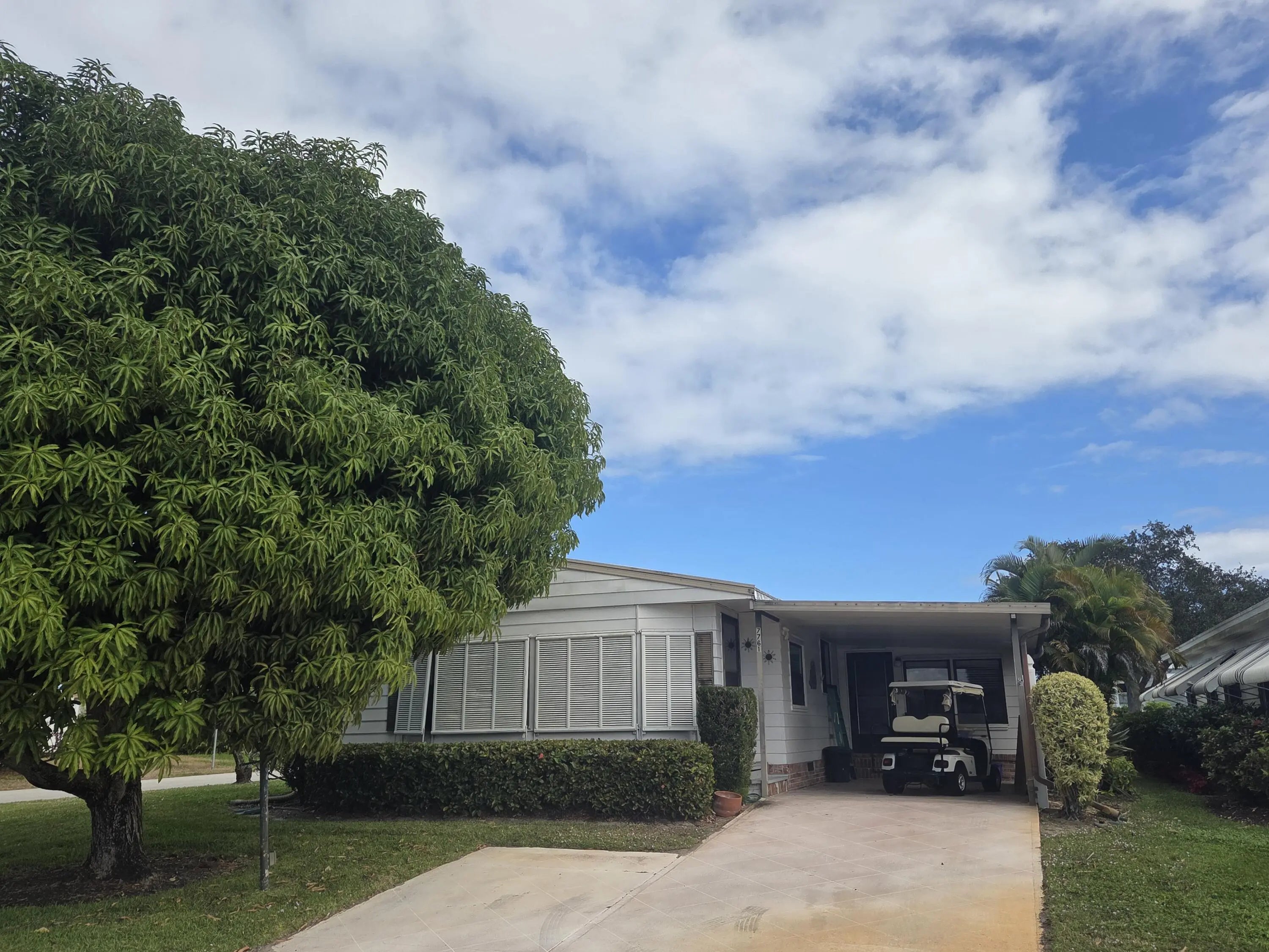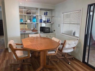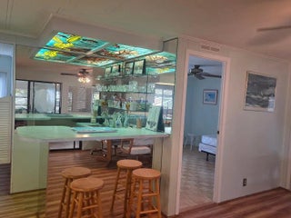 This open concept Palm Harbor manufactured home is located in the desirable Cambridge in Heritage Ridge. Designed for entertaining, it features a wet bar with plenty of room to spread out. The attached Florida room is fully air conditioned. LVP flooring, AC 2019, Metal Roof 2002, Shower 2026, and brick skirting complete this package.On a corner oversized lot it provides a huge mango tree and space for gardening or pets. This 55+community offers land ownership and plenty of social activites, and a very LOW HOA. Pets are welcome. Close to restaurants, beaches, boat ramps, parks, shopping and medical, this is the one to see.