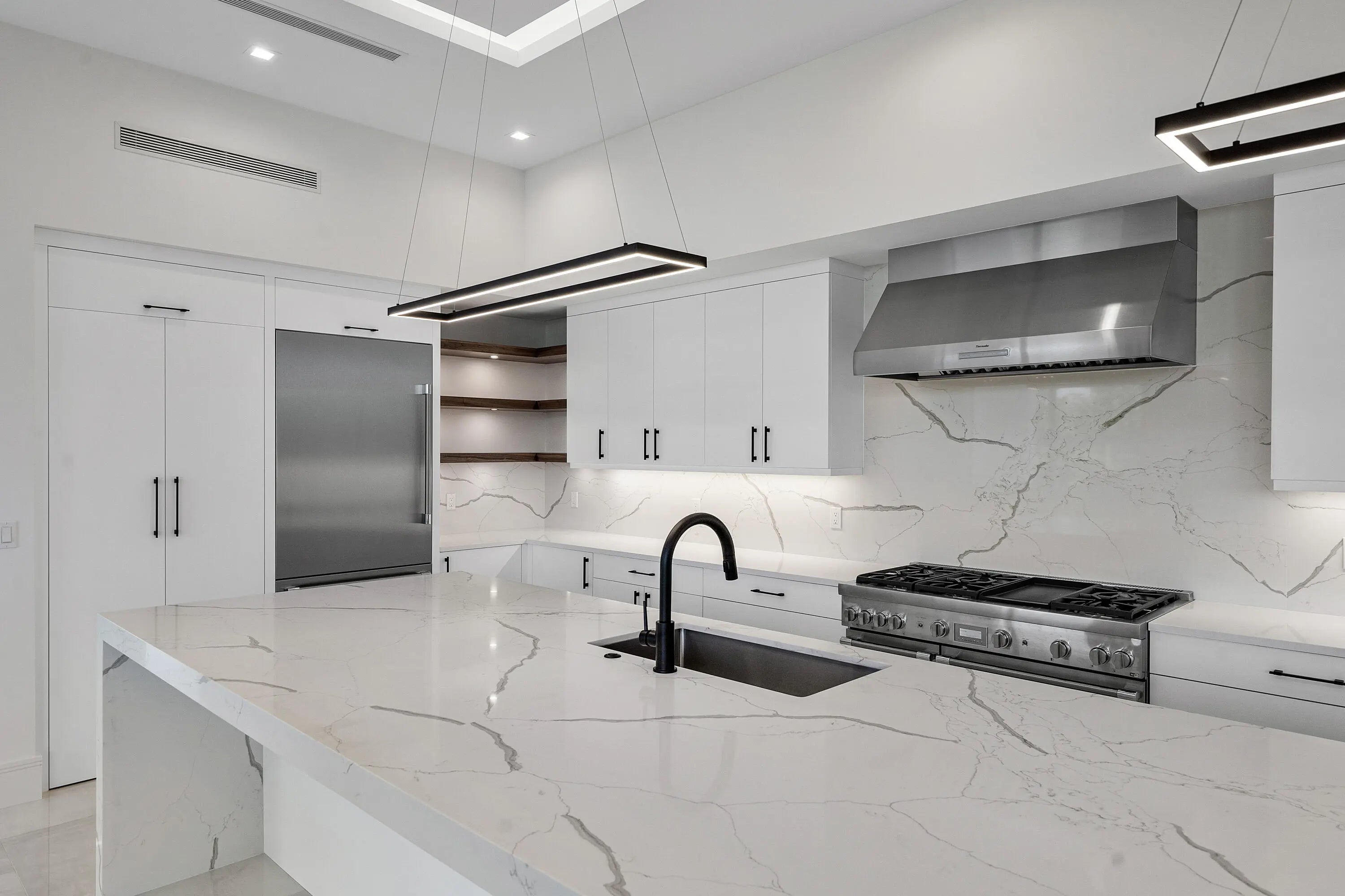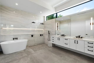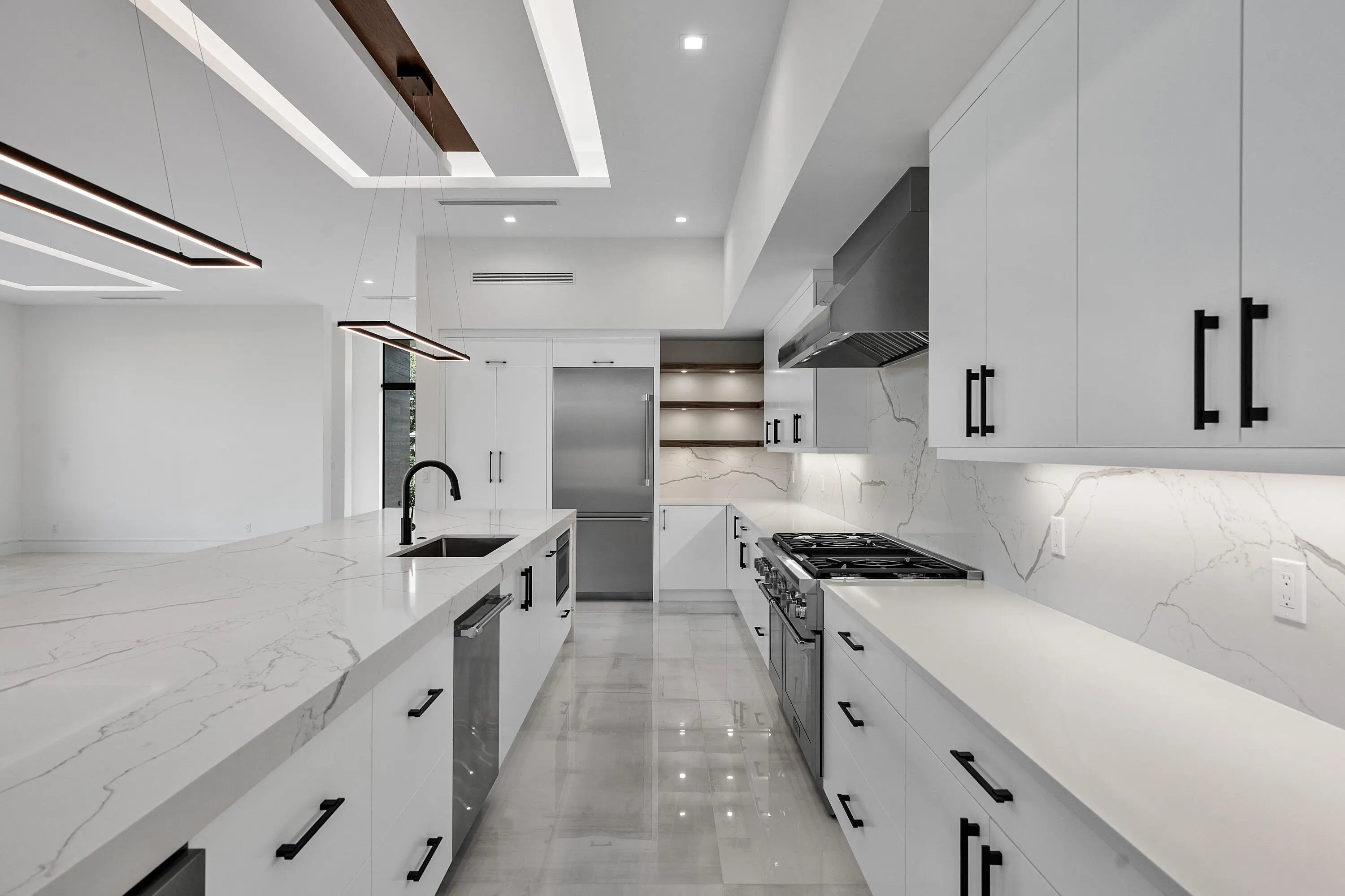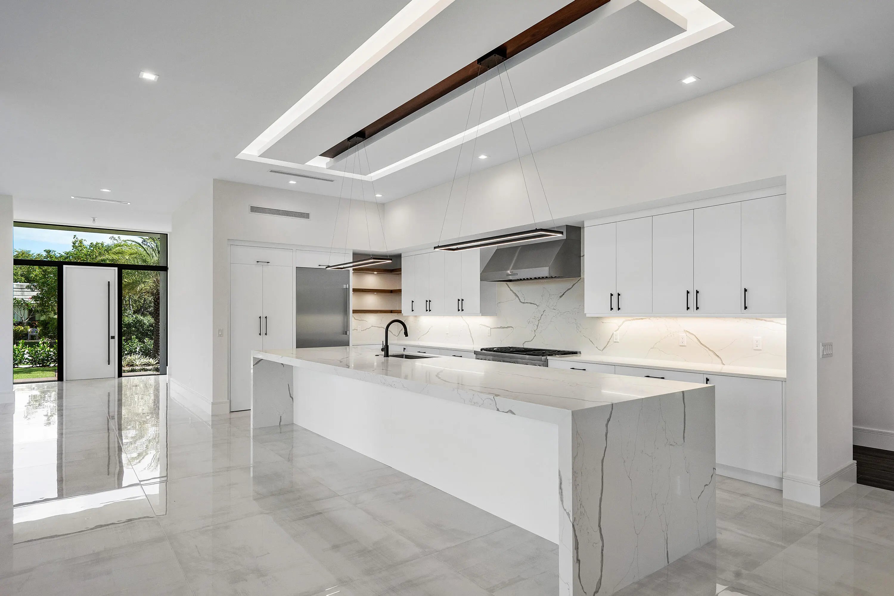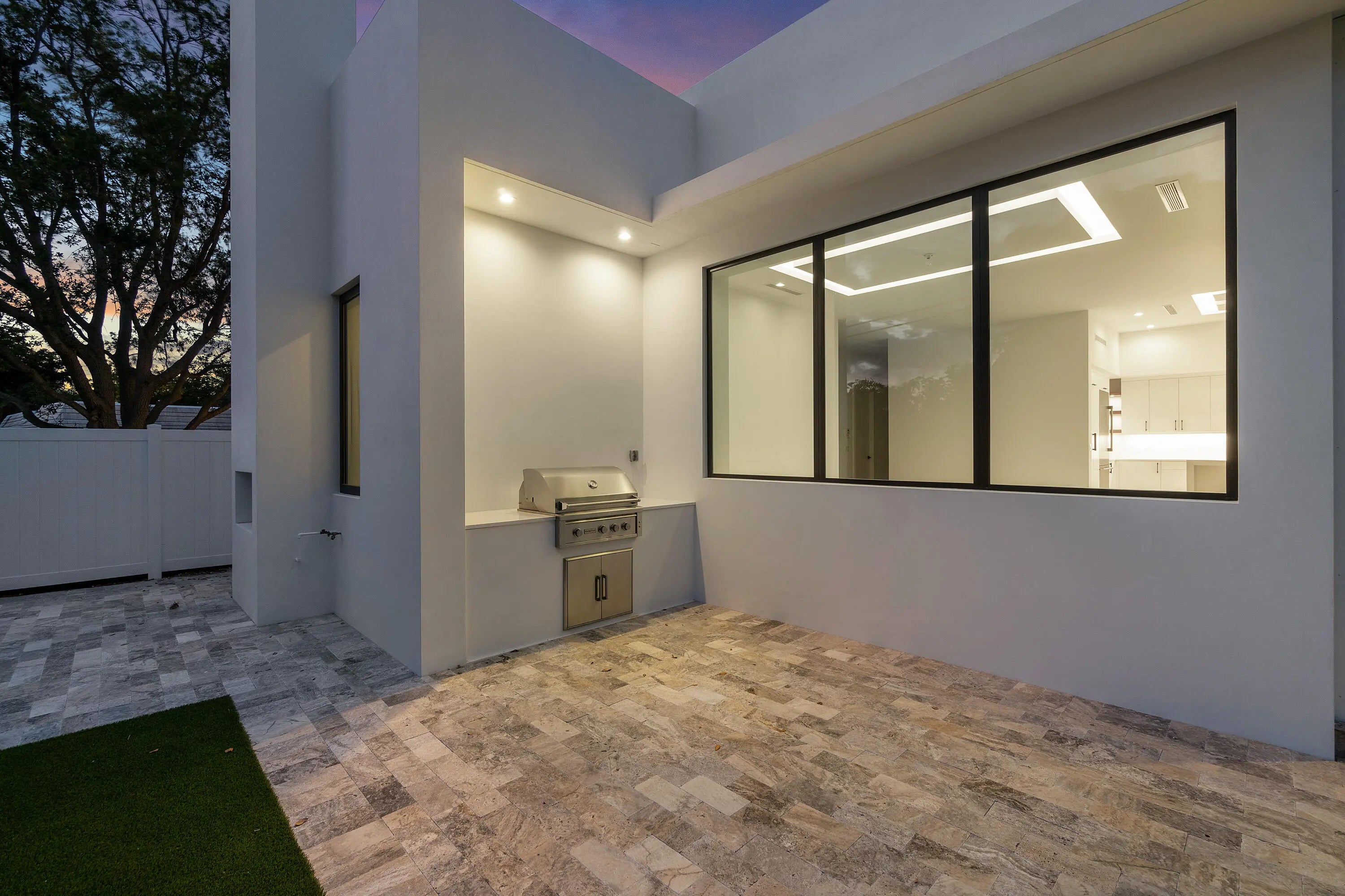 Built by Marc Julien and completed in 2021, this modern residence has been impeccably maintained by the original owner and offers clean architecture, high ceilings, and abundant natural light throughout. The home features 4 bedrooms plus an office or den, 3 full bathrooms, and 1 half bath. A large, open kitchen anchors the home with a massive island, premium finishes, and a spacious hidden pantry. The layout flows effortlessly into the main living area and a dedicated dining space, ideal for both everyday living and entertaining. Two sets of large sliders open to a covered patio and alfresco dining area, automated screens for year round enjoyment, leading to a generously sized pool and outdoor summer kitchen. The primary suite offers a true retreat with a spa-style bath featuring a wet room, double vanity, transom windows, and separate his-and-her closets. Automated blackout window treatments provide comfort and privacy. Additional features include a two-car garage, Tesla charger, and whole-home generator. A turnkey Delray Beach home that delivers modern design, seamless indoor-outdoor living, and effortless ownership.