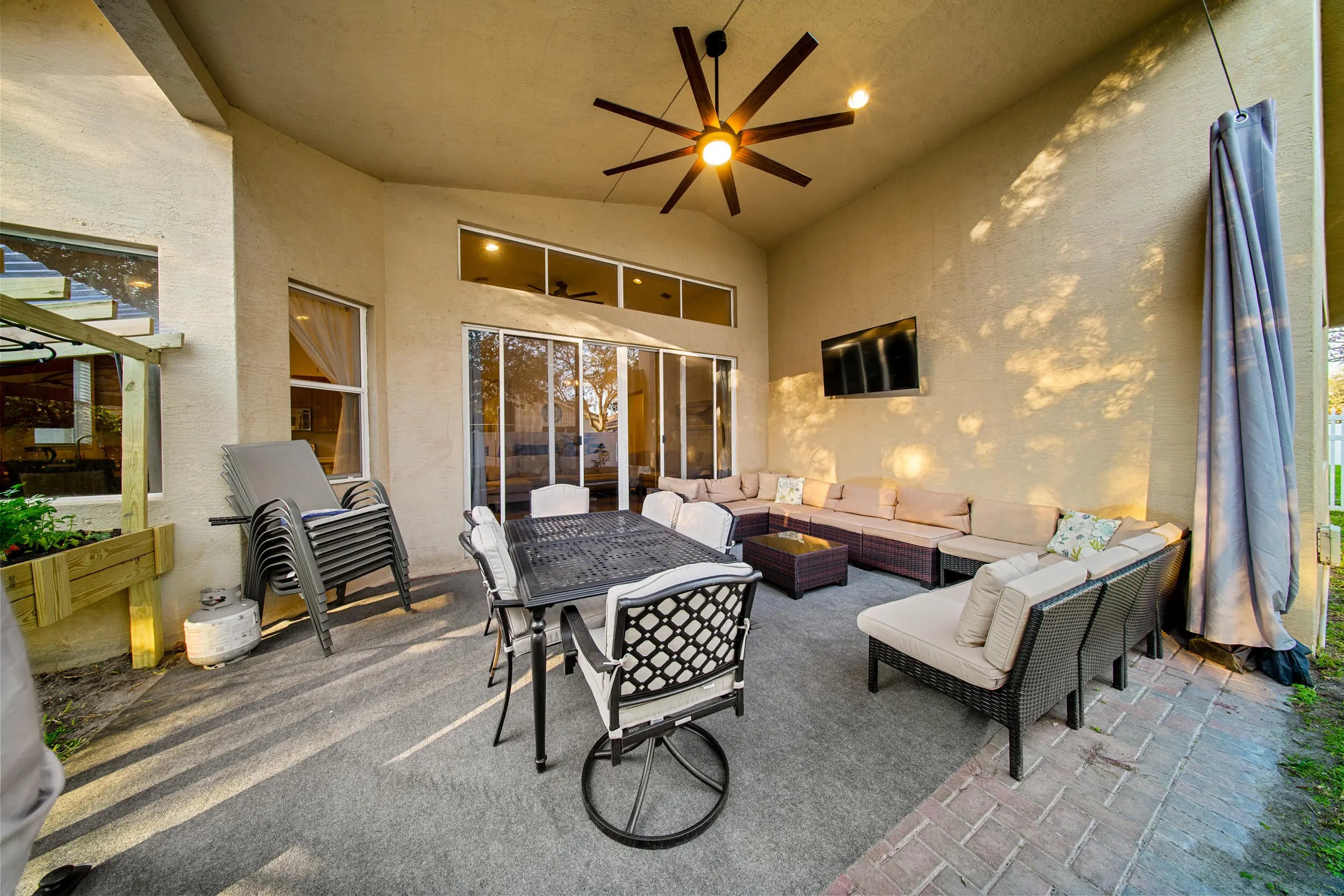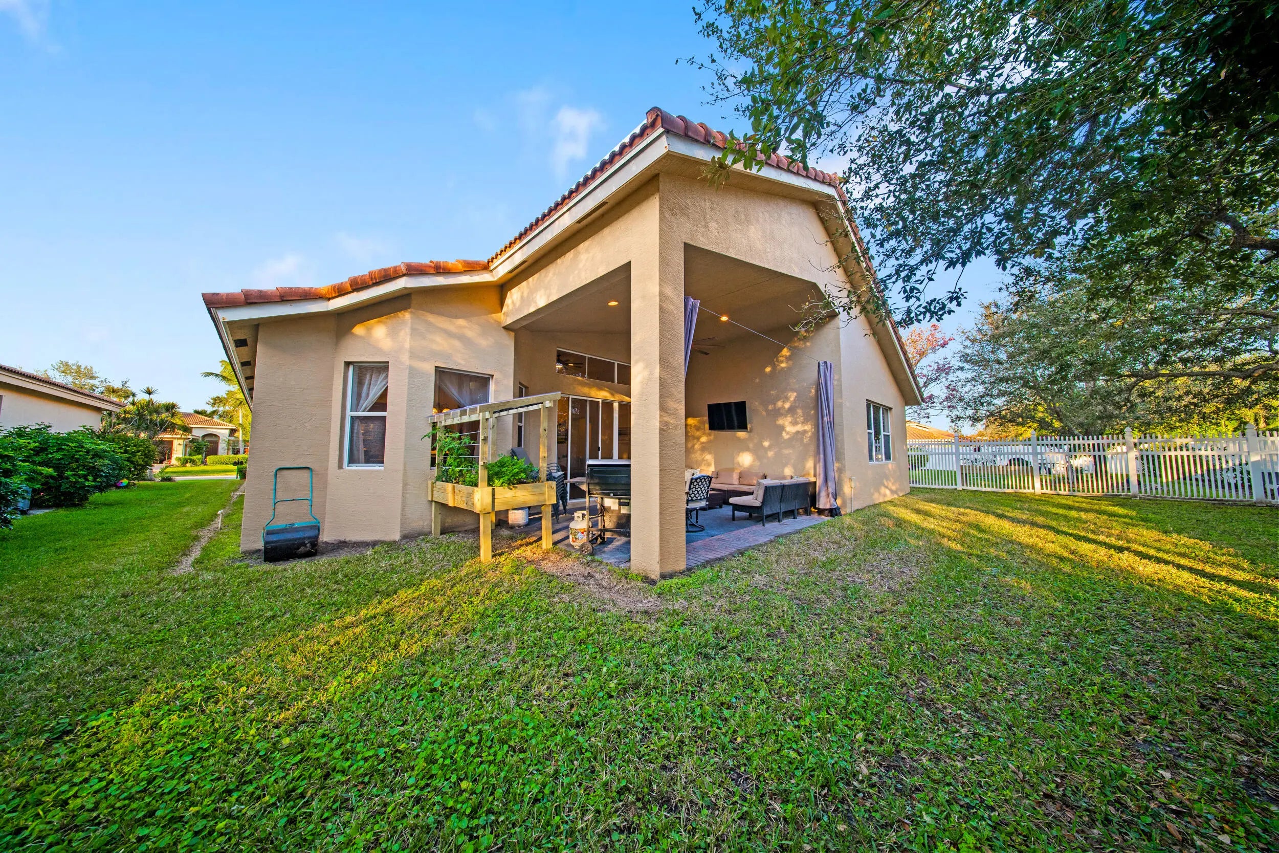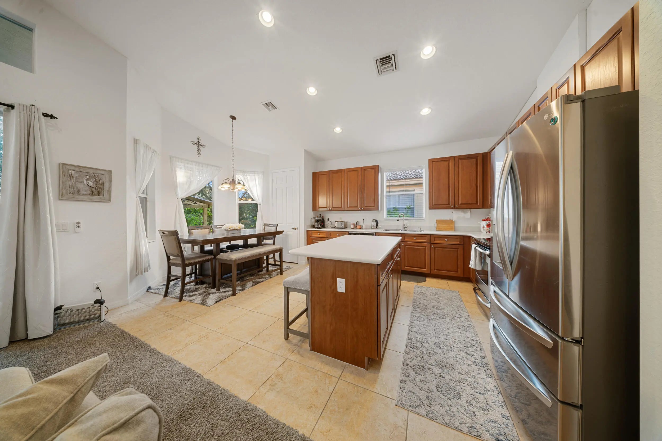Nestled in the highly sought-after Bent Creek community, this beautifully maintained 5-bedroom, 3-bath residence offers 2,759 square feet of thoughtfully designed living space. The open layout is complemented by soaring ceilings and a spacious kitchen with a large center island and recently updated appliances, making it ideal for both everyday living and entertaining. Just off the kitchen, a flexible bonus space has been professionally converted into a true fifth bedroom, perfect for guests, a home office, or multi-generational living. The primary suite features a well-appointed en-suite bath, while the additional bedrooms provide plenty of versatility for family and work-from-home needs. Recent improvements include dual AC systems installed in 2023, a new water heater in 2023, and updated toilets, shower heads, and bathroom faucets, all contributing to a truly move-in-ready home. Step outside to a peaceful backyard retreat highlighted by mature mango, avocado, and pineapple trees. This home has had only two owners, with the original owners occupying it sparingly while maintaining it with exceptional care. The result is a property that still shows beautifully years after construction. Additional highlights include a three-car garage, built-in storage, and access to resort-style amenities such as a community pool, fitness center, basketball courts, and clubhouse. Conveniently located near schools, shopping, major highways, and area beaches, this is a rare opportunity to own a meticulously cared-for home in Fort Pierce. Schedule your private showing today.