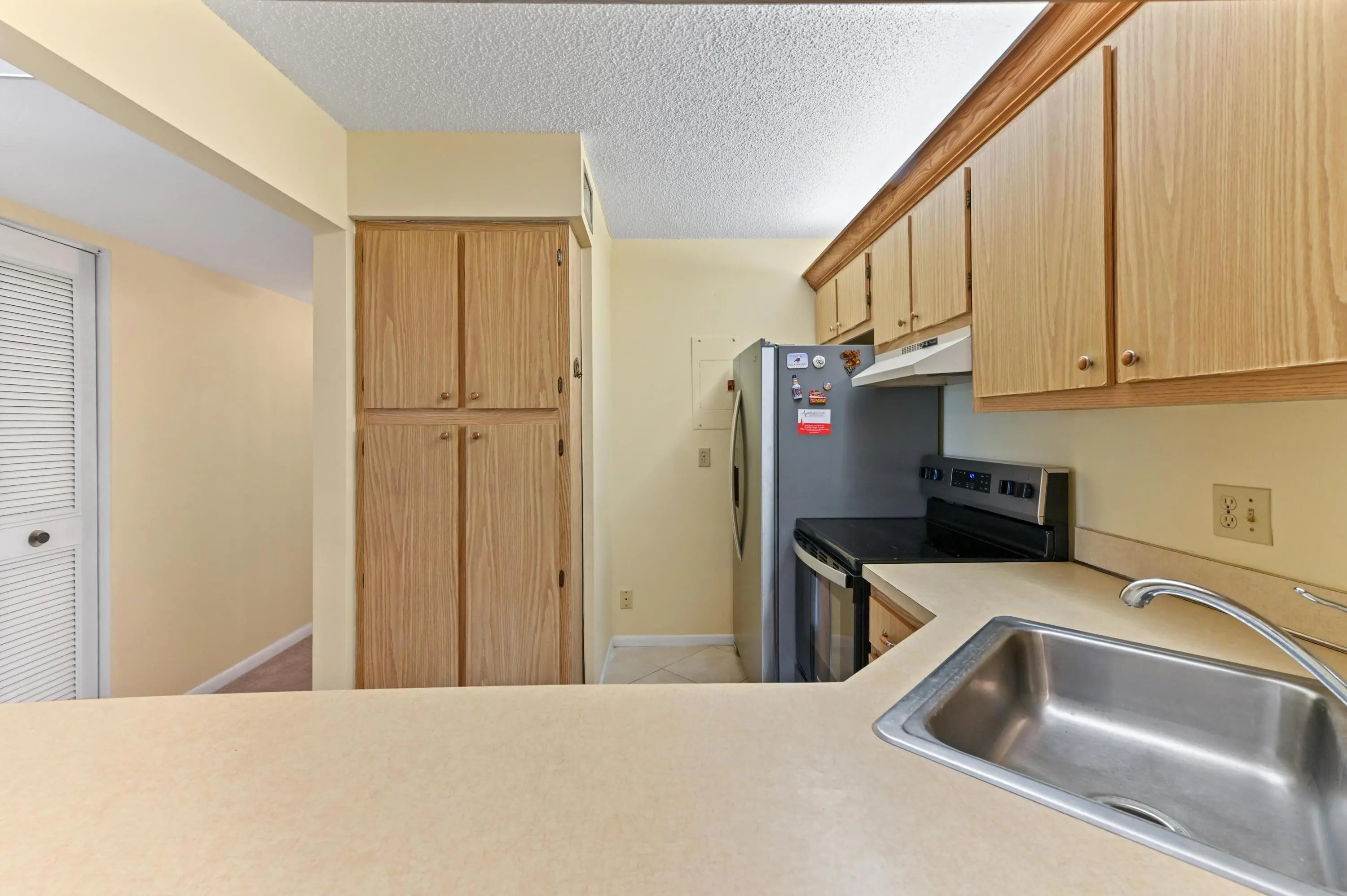 Priced to sell 2 bedrooms/2 bathroom FHA eligible condo Enjoy relaxing lake views from the screened and covered balcony, complete with accordion shutters on the full sliding door for added protection. The open living and dining areas create a comfortable layout, complemented by a kitchen with countertop bar seating perfect for casual dining or entertaining. Carpeted flooring runs throughout the unit, offering a warm and cohesive feel. A great opportunity to enjoy low-maintenance condo living with scenic views and community amenities.