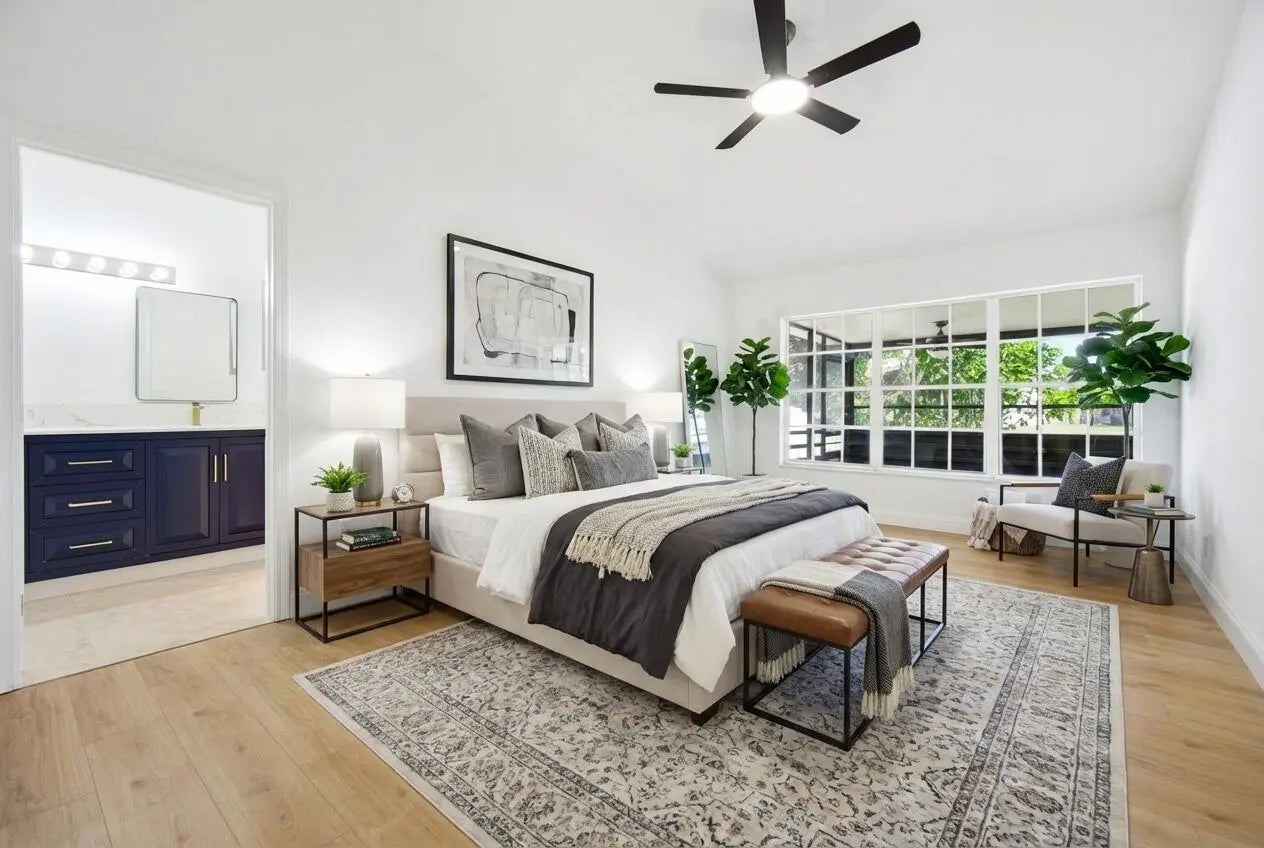 Gorgeous lake views! Exquisite 2-bedroom, 2-bathroom residence, fully renovated in 2025. The gourmet kitchen boasts luminous Calacatta quartz countertops, bespoke soft-close shaker cabinetry, and premium high-end finishes, designed to inspire culinary excellence. Luxurious spa-inspired bathrooms feature sophisticated tile work, free standing tub, gorgeous vanities, and contemporary fixtures, elevating daily rituals to a serene escape. Impeccable waterproof laminate flooring, freshly painted interiors and exteriors, and brand-new, top-tier appliances blend style with functionality. Enjoy effortless access to I-95, premier shopping, and dining. This residence seamlessly blends modern luxury with timeless comfort.