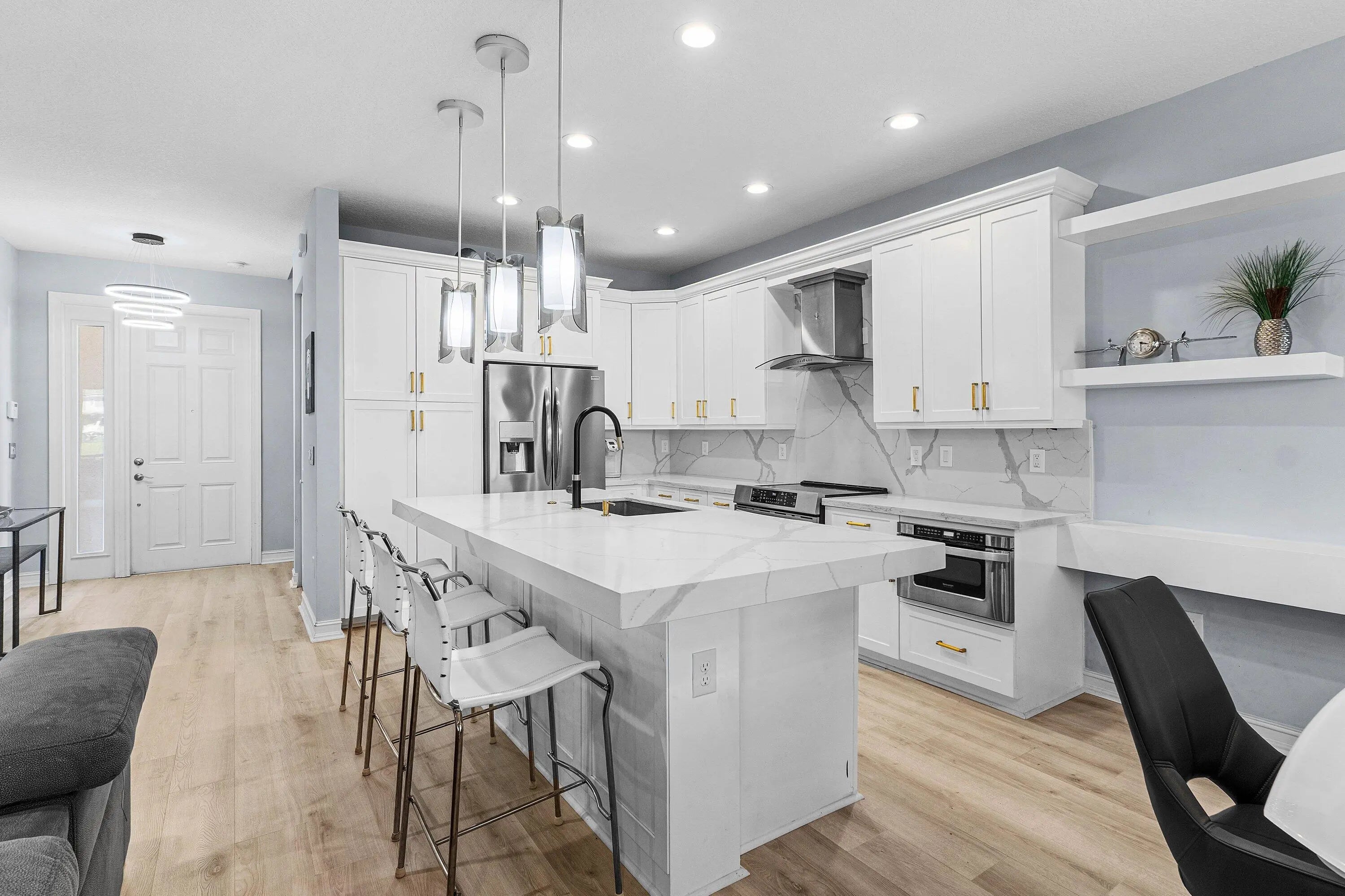 Stunning lakefront 4 bedroom 3 bath home at Tuscany North in Delray Beach. Fresh, bright and sun drenched lake views! Enjoy Renovated modern kitchen with quartz countertops, stainless appliances, ample storage with eat in dining space. Built in 2016 by GL Homes. One bedroom and bath downstairs, 3 bedrooms plus loft upstairs. Primary boasts huge walk in closet! All impact doors and windows. Fenced in yard perfect for pets and kids. Tuscany North is a guard gated community in west Delray Beach with resort like amenities including gym, pool, splash pad, tennis and basketball courts and more. Don't miss this opportunity!