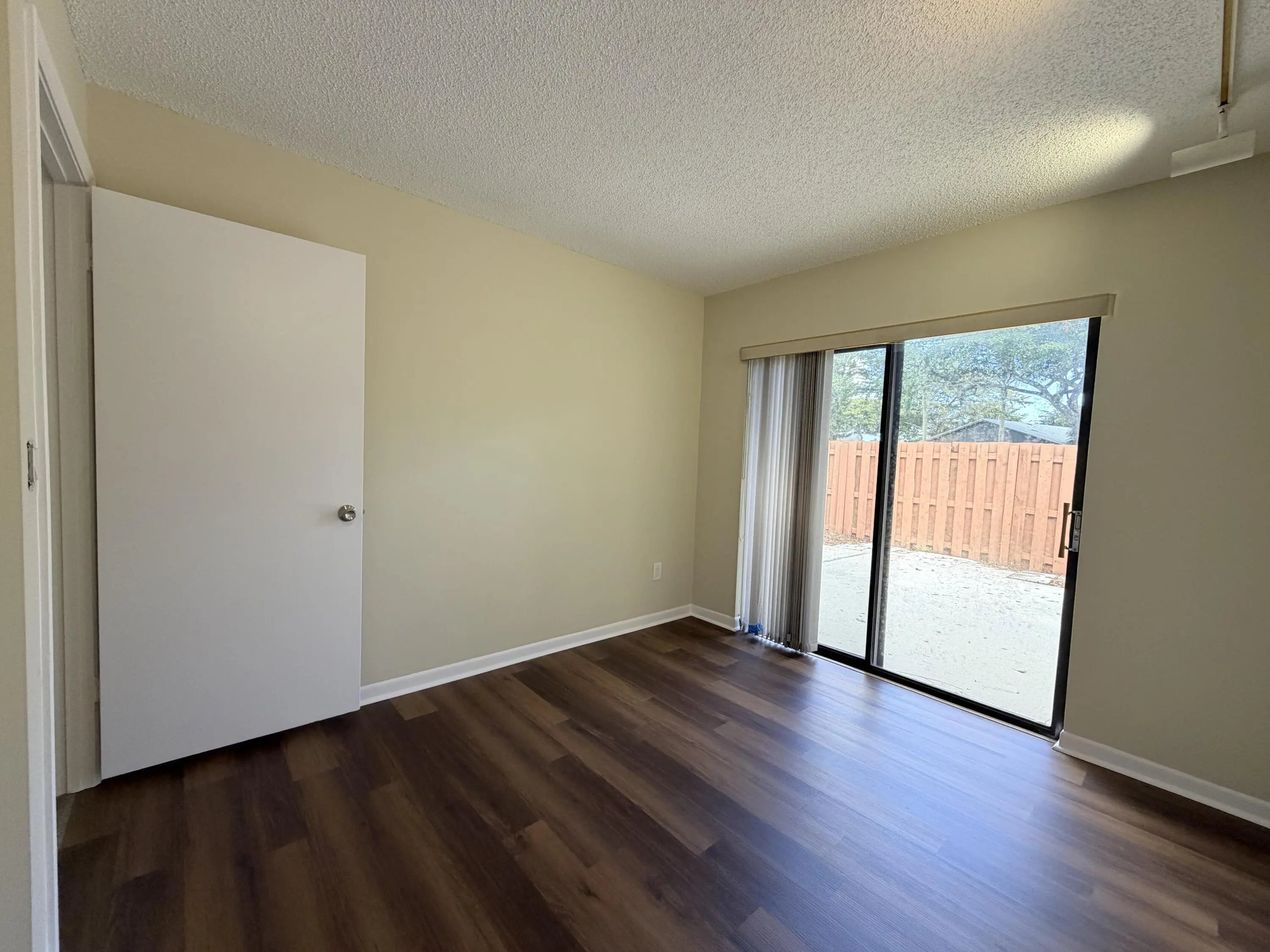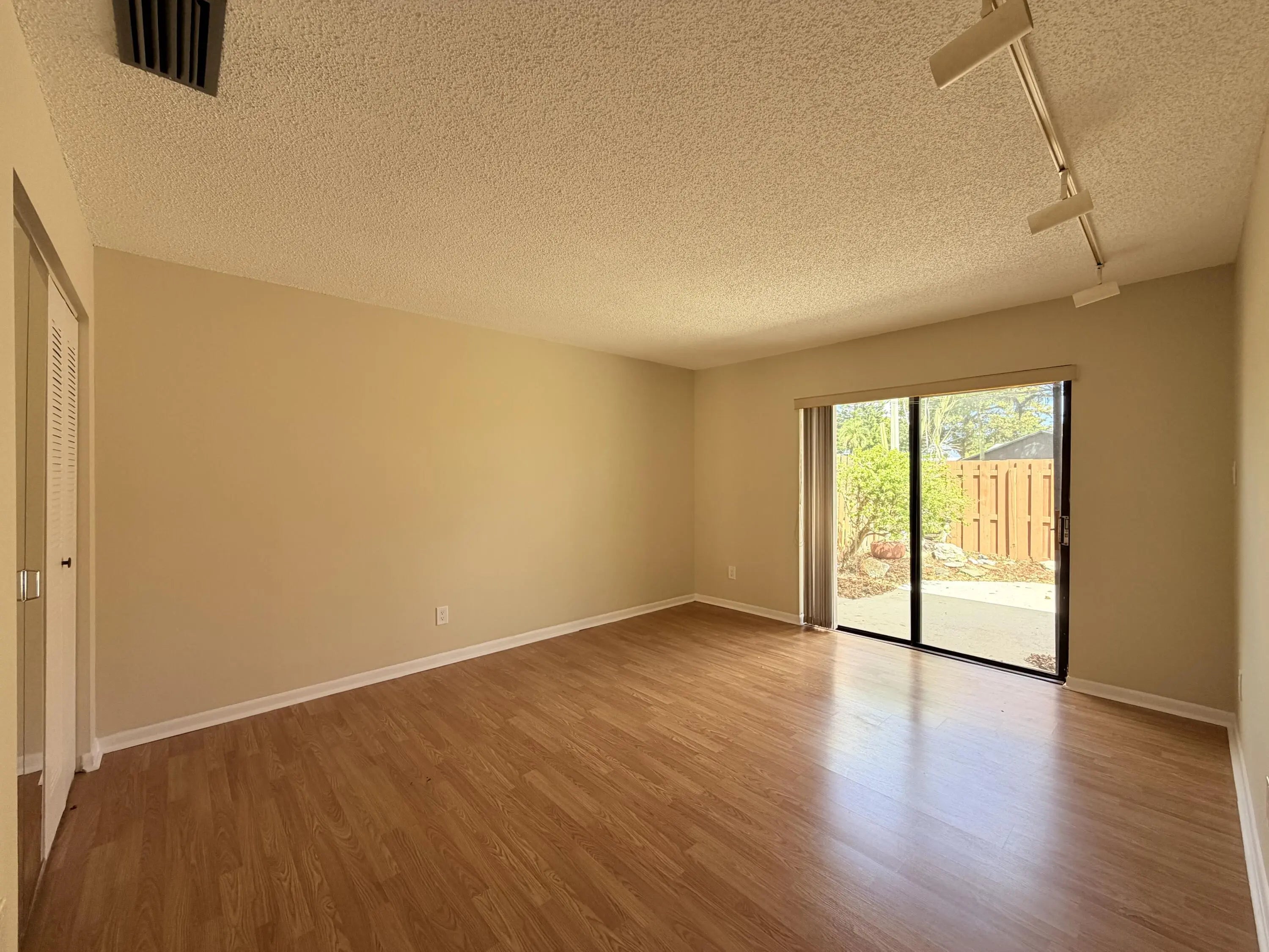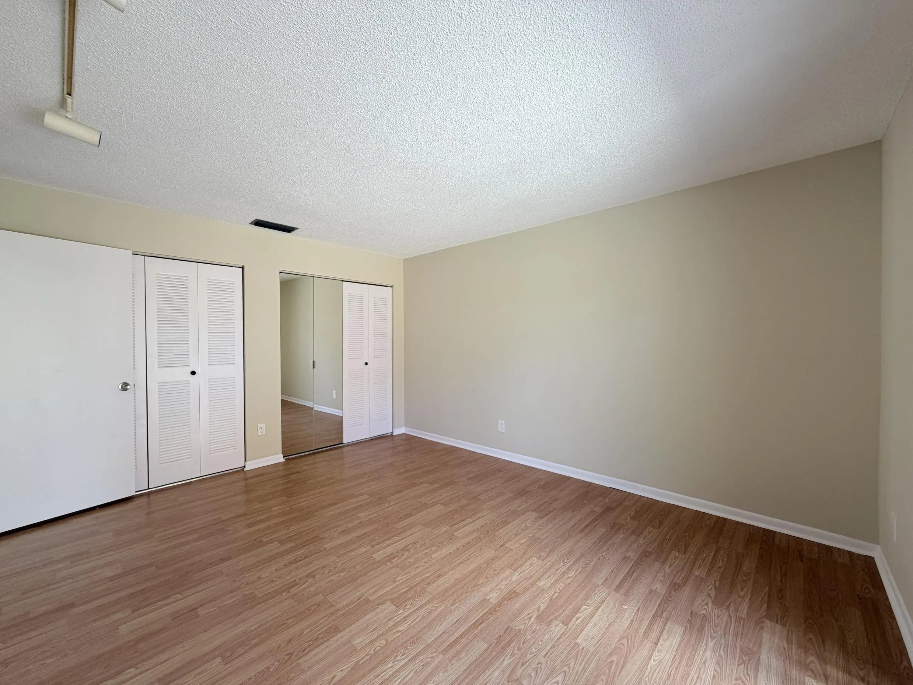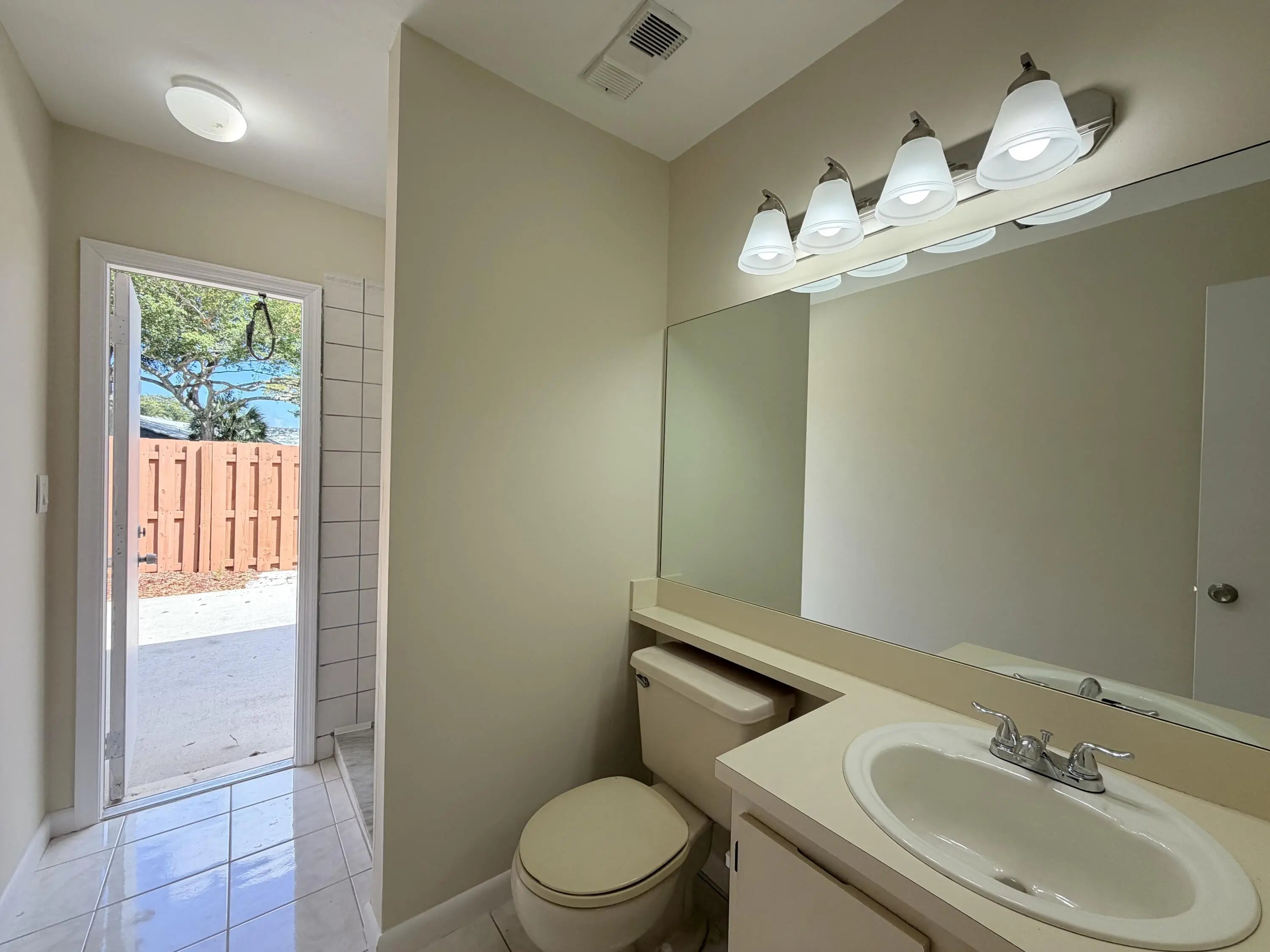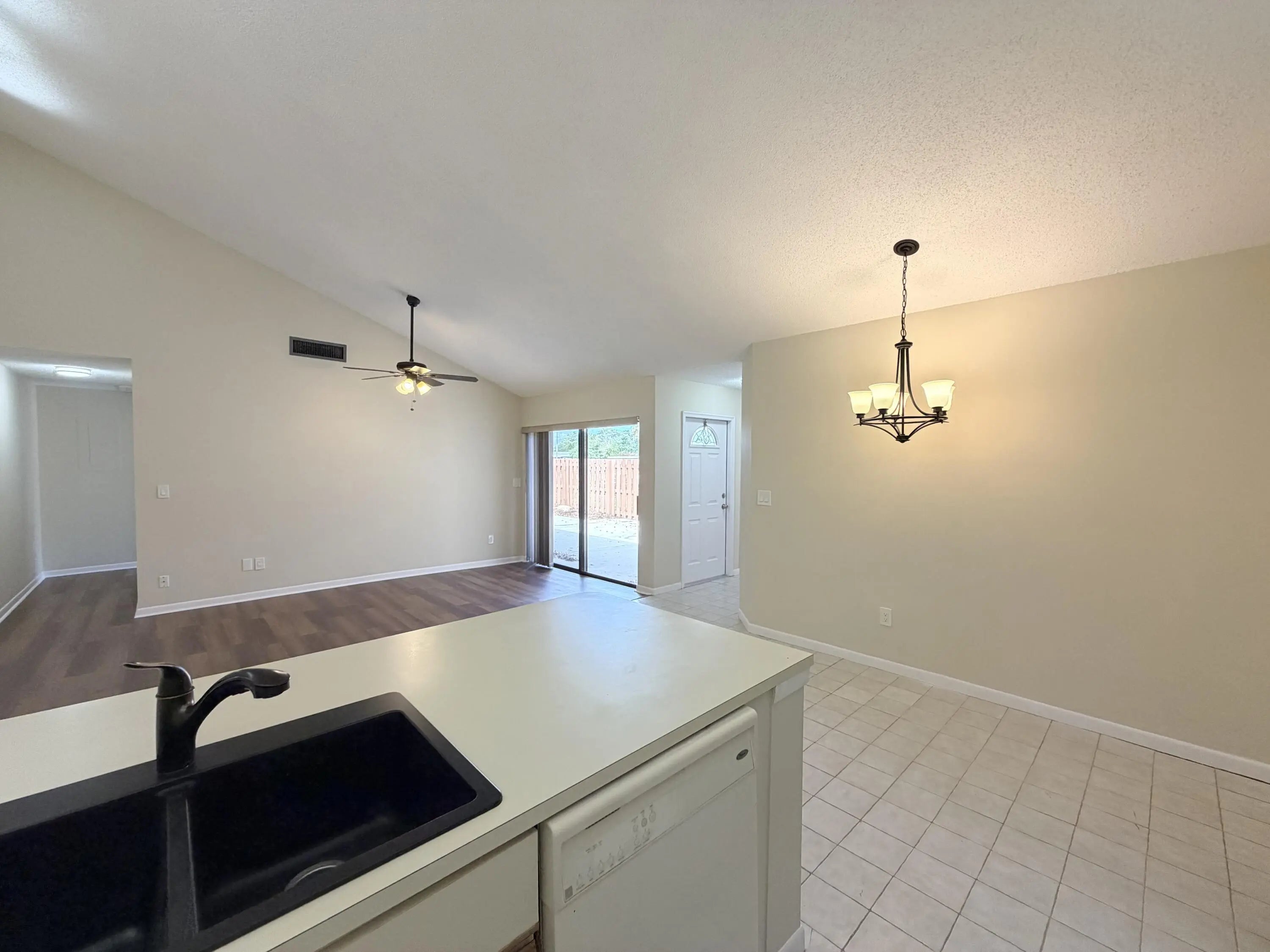 WELCOME HOME to this beautifully maintained 3 bedroom, 2 bathroom villa offering comfort, privacy, and a spacious layout designed for easy living. Freshly painted with new vinyl flooring and no carpeting throughout. The home features a bright, open feel with vaulted ceilings, modern lighting, and ceiling fans that enhance the airy atmosphere. The dining area is highlighted by a stylish chandelier, while the kitchen offers plenty of cabinetry, black appliances, and an open flow to the living area, making it perfect for both everyday living and entertaining. The thoughtfully designed split floor plan places the primary suite in its own private wing, complete with vaulted ceilings, a master bathroom with a large vanity, shower/tub combo, a walk-in closet, and sliding glass doors overlookin the patio. The second largest bedroom features a walk-in closet for excellent storage while over looking the patio. The guest bathroom doubles as a cabana bath with a walk-in shower and direct access to the patio. And the third bedroom is in middle with a slider door to the patio as well. Additional features include a coat closet at the front entrance, a pantry, high hat lighting in the bedrooms and living room, and a brand new stackable washer and dryer along with a new water heater. One of the standout features of this home is the oversized fenced patio, offering exceptional outdoor living space with three sliding glass doors leading outside and door to the cabana bathroom. With a new fence being installed, this private outdoor area is perfect for gardening, relaxing, or entertaining guests, and even provides the option to install a private in-ground pool if desired. The property is tucked in a private location with low monthly maintenance, making it ideal for both full-time residents and seasonal owners. Located in a highly convenient area near shopping, dining, parks, and major roadways, residents enjoy easy access to everything Palm Beach County has to offer while still enjoying the quiet comfort of a residential community. This charming villa is clean, inviting, and ready for its next owner to add their personal touch.