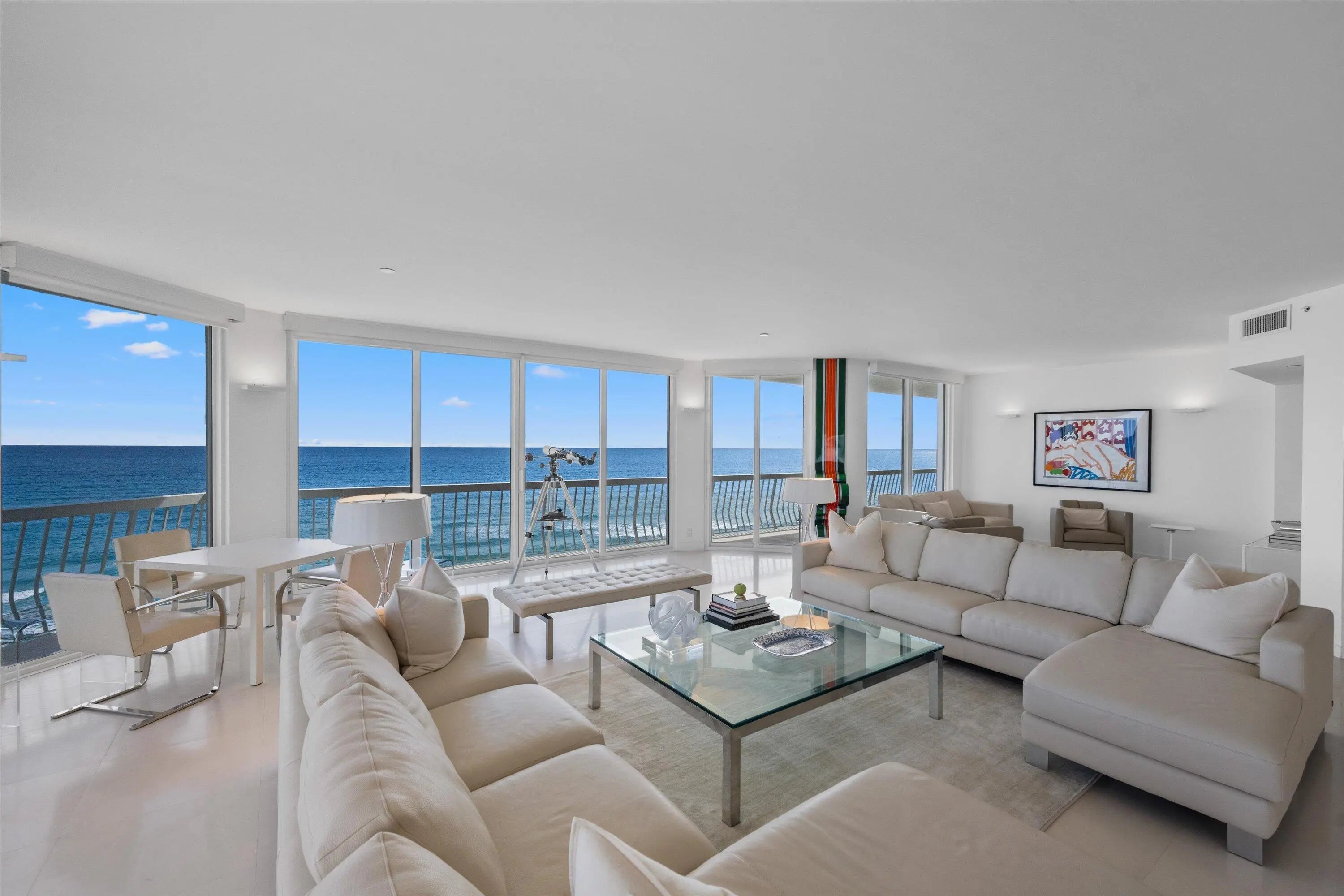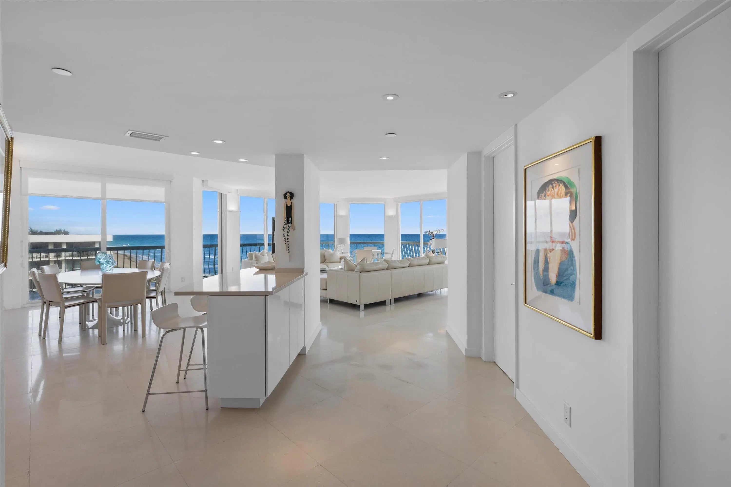 Beautifully maintained 3 bedroom, 3.5 bathroom penthouse featuring sweeping ocean views from the primary suite, guest bedroom, living room, and kitchen. Positioned on a high floor with a desirable NE exposure, this light-filled residence offers stunning coastal vistas, seamless flow for modern living, and neutral finishes throughout, creating the perfect blend of sophistication, comfort, and beachfront luxury. The 2100 building at Sloans Curve is newly reimagined and a premier full-service building offering resort-style amenities, including a 24/7 gatehouse, concierge services, heated pool and spa, fitness center, Tennis center with Har-Tru courts, and more.
