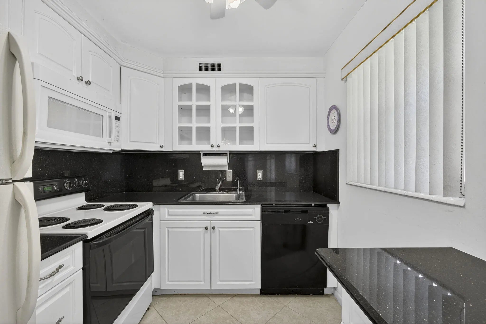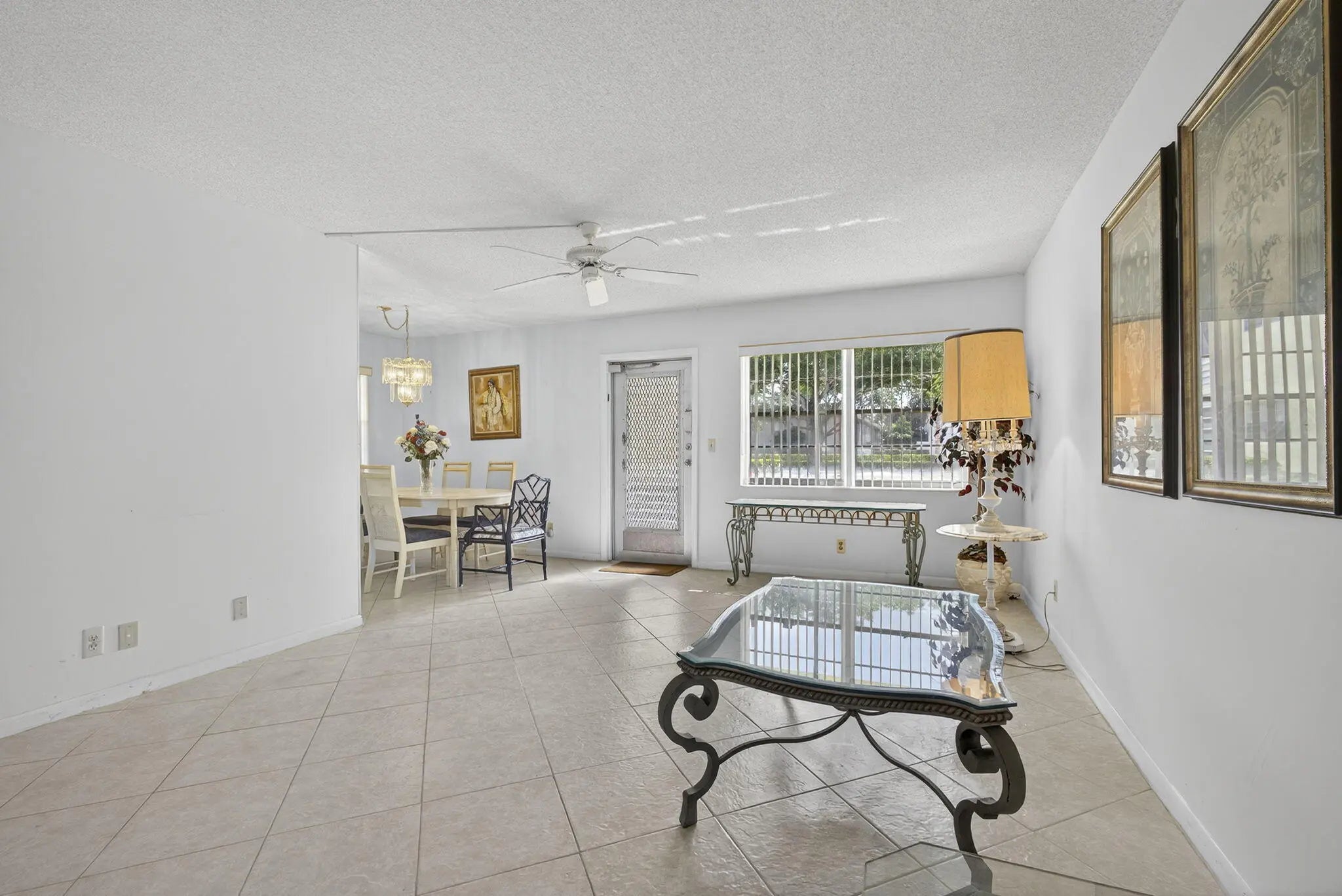 2 BED 1.5 BATHS MOVE IN READY GROUND FLOOR CORNER PARTIALLY FURNISHED UPDATED WHITE KITCHEN WITH GRANITE COUNTERS VERY CLEAN NO CARPETING EXTRA WINDOWS EXTRA SUNLIGHT CENTRAL AIR CONDITIONING. WELL MANAGED ASSOCIATION ROOF WAS REPLACED 2023 AND THEY HAVE AN OPEN PATIO TO SIT OUT AND RELAX ON. FANTASTIC CENTRAL LOCATION CLOSE TO HASTING FITNESS CENTER AND THE CLUBHOUSE. COME AND ENJOY RESORT STYLE LIVING IN CENTURY VILLAGE A GATED COMMUNITY FOR ADULTS 55+ CLUBHOUSE features a theater, indoor pool, card room, community/party room, billiard room ,shuffle board ,tennis , pickqleball ,bocce and two outdoor pools. Numerous heated outdoor pools throughout the community. Separate fitness center with gym , outdoor heated pool and a resistance pool. Two guarded gates and 24 hour ro Two guarded gates and 24 hour roving security patrol. GREAT LOCATION: close to shops, restaurants, PBI airport and beaches.