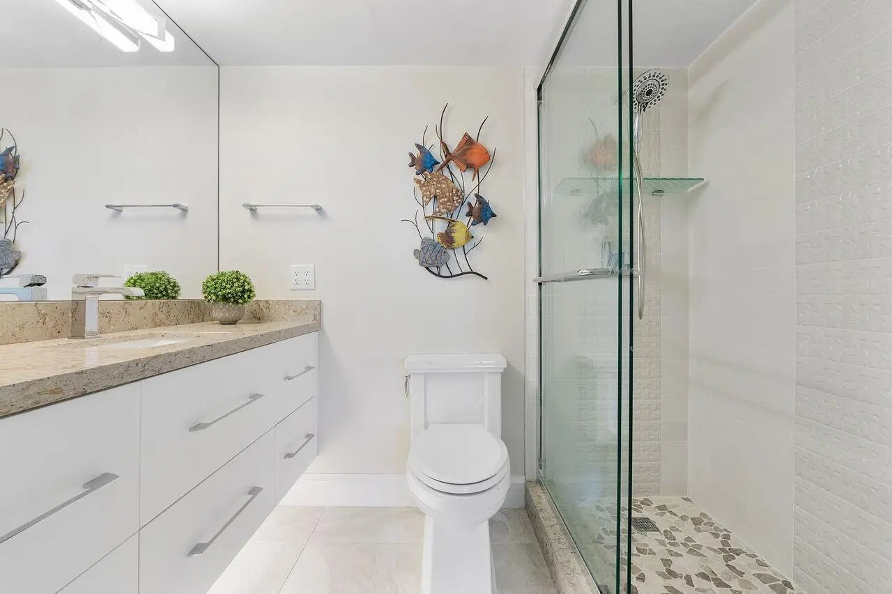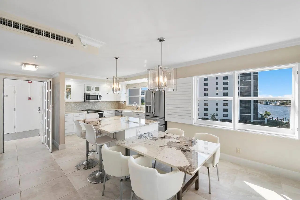 Modern Remodeled 6th Floor SE CORNER Residence Cascading over the INTRACOASTAL WATERWAY. BREATHTAKING DIRECT INTRACOASTAL, OCEAN & CITY VIEWS. This property was recently Remodeled with Exquisite attention to detail. This GRAND & SPACIOUS 2/2 CORNER residence features a one of a kind customized primary bedroom. The entry doors are moved to the west closer to oversized balcony to accentuate the spaciousness, the whole bedroom was luxuriously reconstructed with open walls and an en-suite open-custom one of a kind, primary bath with dual vanities & recessed lighting, New AC 1 year New HWH 1.5 years, New Electrical, Transferable Home Warranty Policy, Open Kitchen with NEW Refrigerator 1 year, full hurricane impact protection balcony sliders and full windows, new doors, new baseboards... ...window treatments, FULL W & D, built in full walk in closet, Neutral Ceramic Tile Flooring & fresh paint. This property features OCEAN & DIRECT WIDE INTRACOASTAL VIEWS WITH THE PERFECT HEIGHT & VANTAGE from every window in the CORNER home, plus unending city and ocean views. Thoughtful, modern-neutral improvements compliment the space. Seagate of Highland Beach has Luxurious and Affordable amenities such as 2 Pools with New Patio Furniture, Clubhouse on the Intracoastal, Private Deeded Beach Access, resurfaced Dockage, resurfaced shuffleboard, Bocci Ball, Putting Green, Fitness Room, BBQs, Dining and Social Entertainment Activities and On site property management.