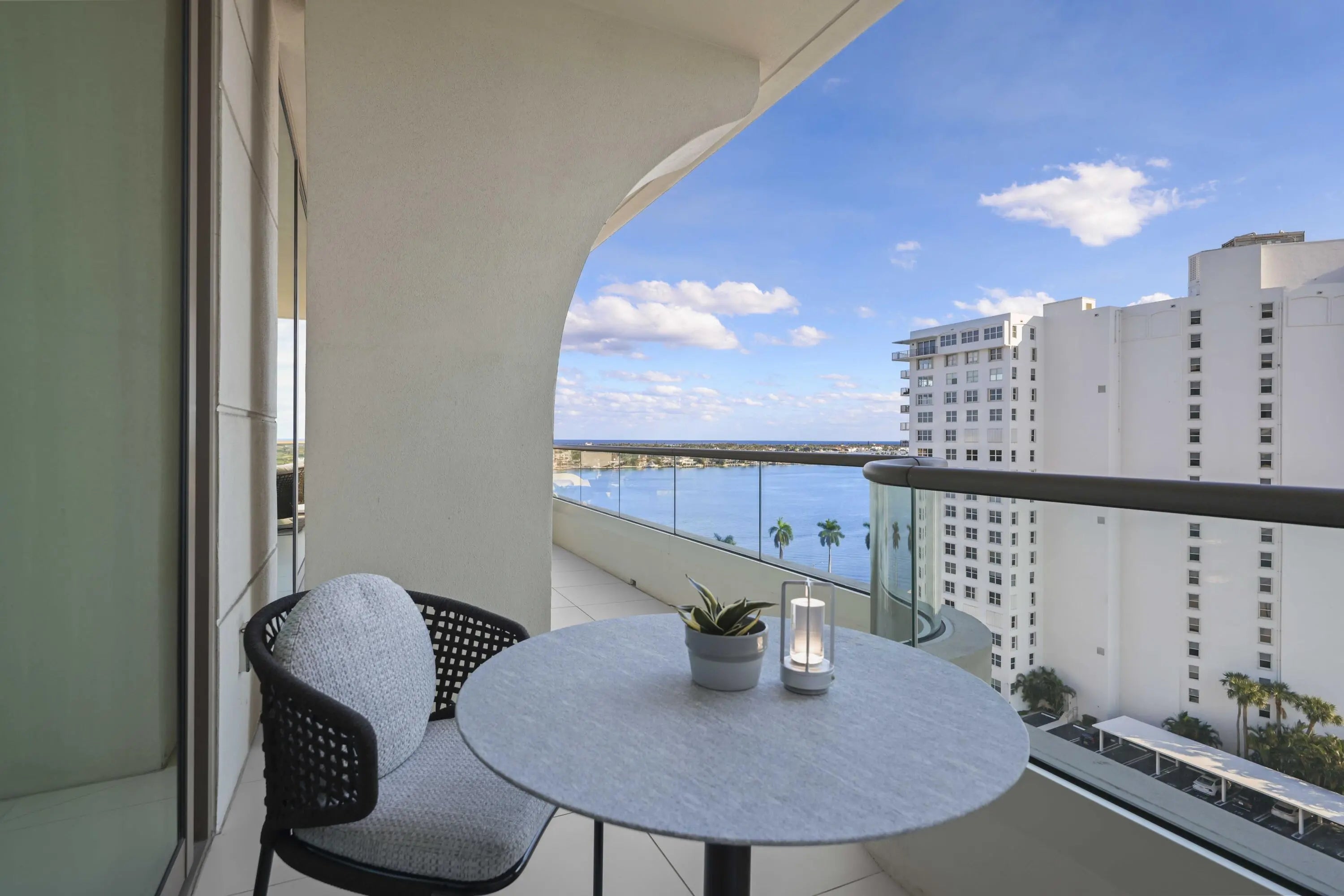 NEW, Turn-key, move-in ready residence with stunning waterfront views. Enjoy an open floor plan with water views from every room. Features include a chefs kitchen with Miele appliances, a gas cooktop, limestone flooring, spacious walk-in closets and more. La Clara is a full-service waterfront building offering 24-hour security, on-site management, fitness center, sauna, resident lounge, business center, gated access, and bike storage. Ideally located just minutes from Palm Beach, downtown West Palm Beach dining, shopping, and beaches. Two covered garage spaces included. Pet-friendly. Turnkey luxury living.