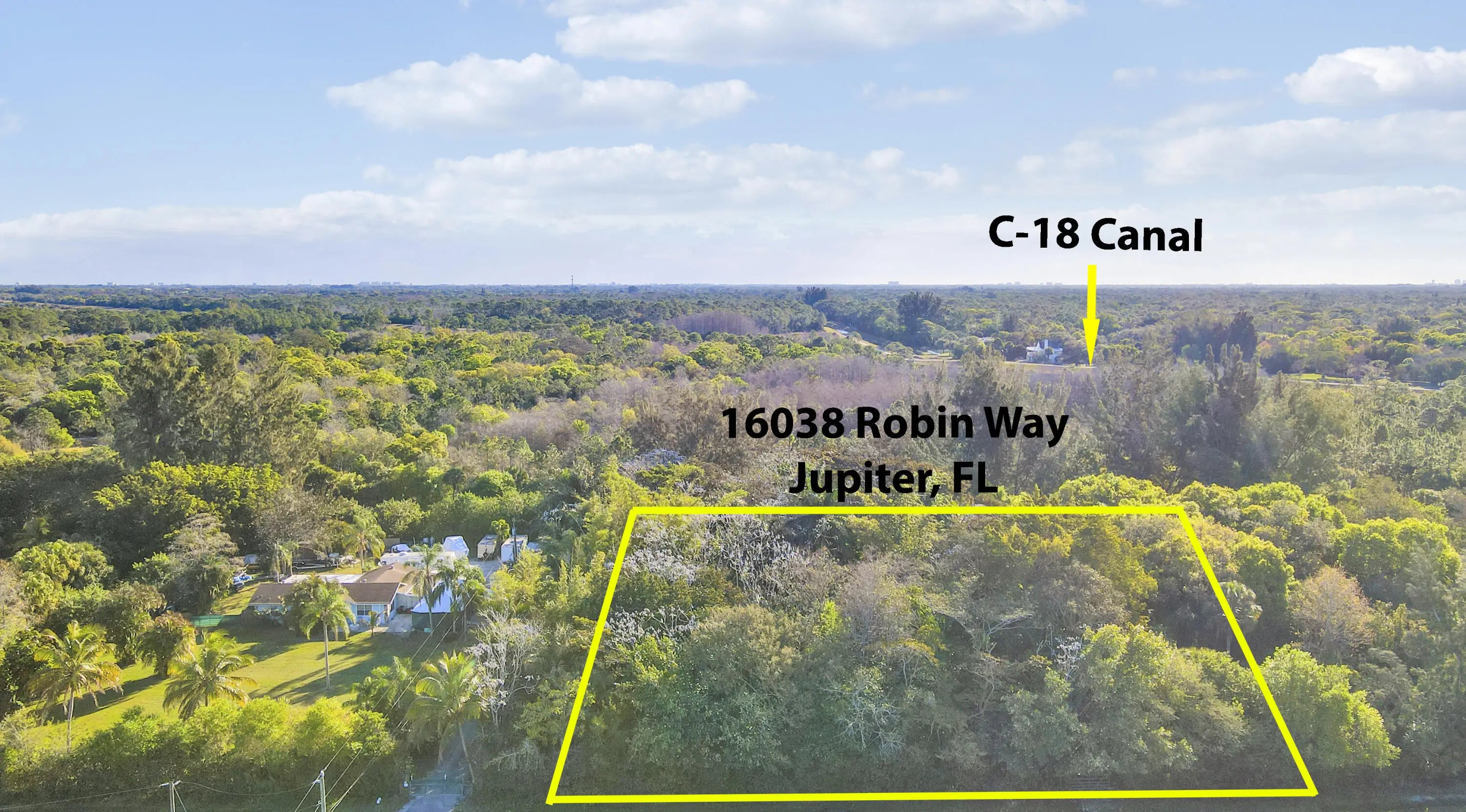 Jupiter Farms 1.19 acres on paved road. Lush tropical vegetation with excellent elevation. Canal access to River Bend Park and Jonathan Dickinson. Rare Lot for sale in Jupiter Farms. This is one of but a few remaining buildable lots currently for sale on Loxahatchee River in Jupiter Farms Florida. Located at 16038 Robin Way, the 1.19 acre property has 170 feet of frontage on a waterway feeding directly into the northwest fork of the Loxahatchee River. The river, described as ''one of the last two wild and scenic rivers remaining in Florida'', passes through Jonathan Dickinson State Park before emptying into the Jupiter Inlet and eventually the Atlantic Ocean. Since being purchased in 2000, the lot has seen twenty six years of continuous planting of tropical plants resulting in creating a subtropical rainforest with giant Kapok Monkey Pod, African Tulip, and a variety of huge Banyan trees to name but a few. A variety of palms, both native and nonnative together with giant bamboo are scattered throughout the property.The waterway bordering the back of the lot is home to alligator, manatee, otter, etc. As part of the greater Loxahatchee River Watershed, the waterway is popular for canoeing and kayaking. Riverbend and Loxahatchee River Battlefield Park borders the other side of the canal and offers hiking, biking, and horseback riding trails and the assurance that no homes or development will occur on that side of the waterway. On secluded end of street abutting another vacant lot with million dollar properties nearby, the lot offers privacy and solitude in a tropical garden setting.