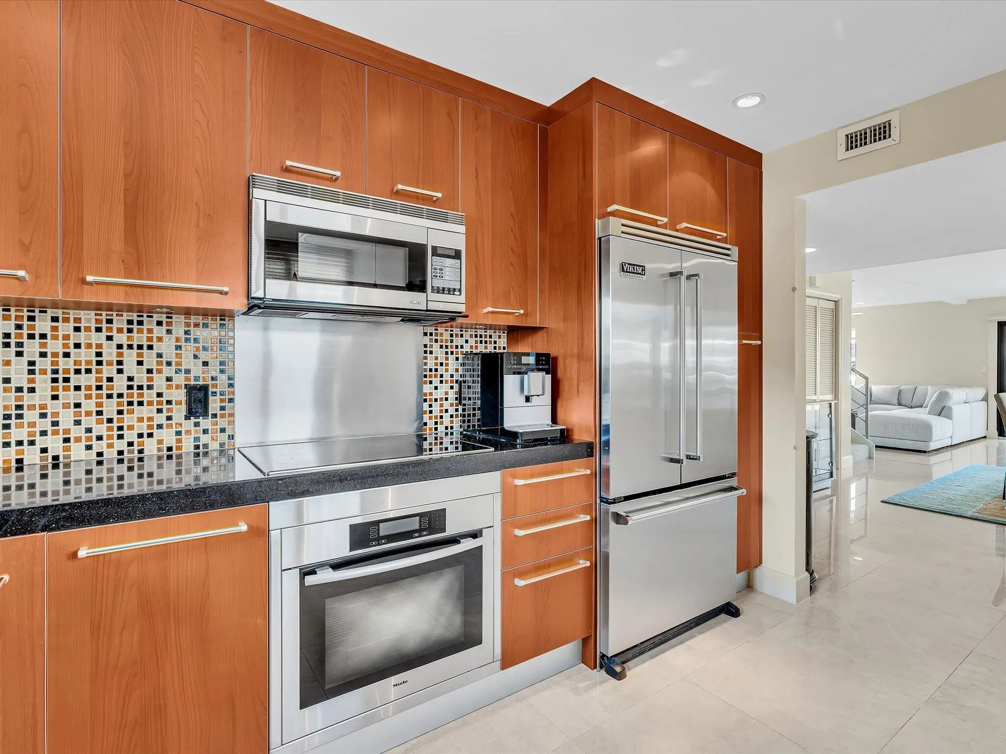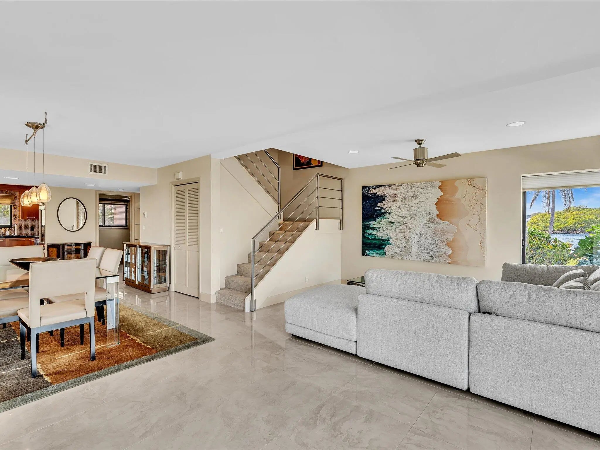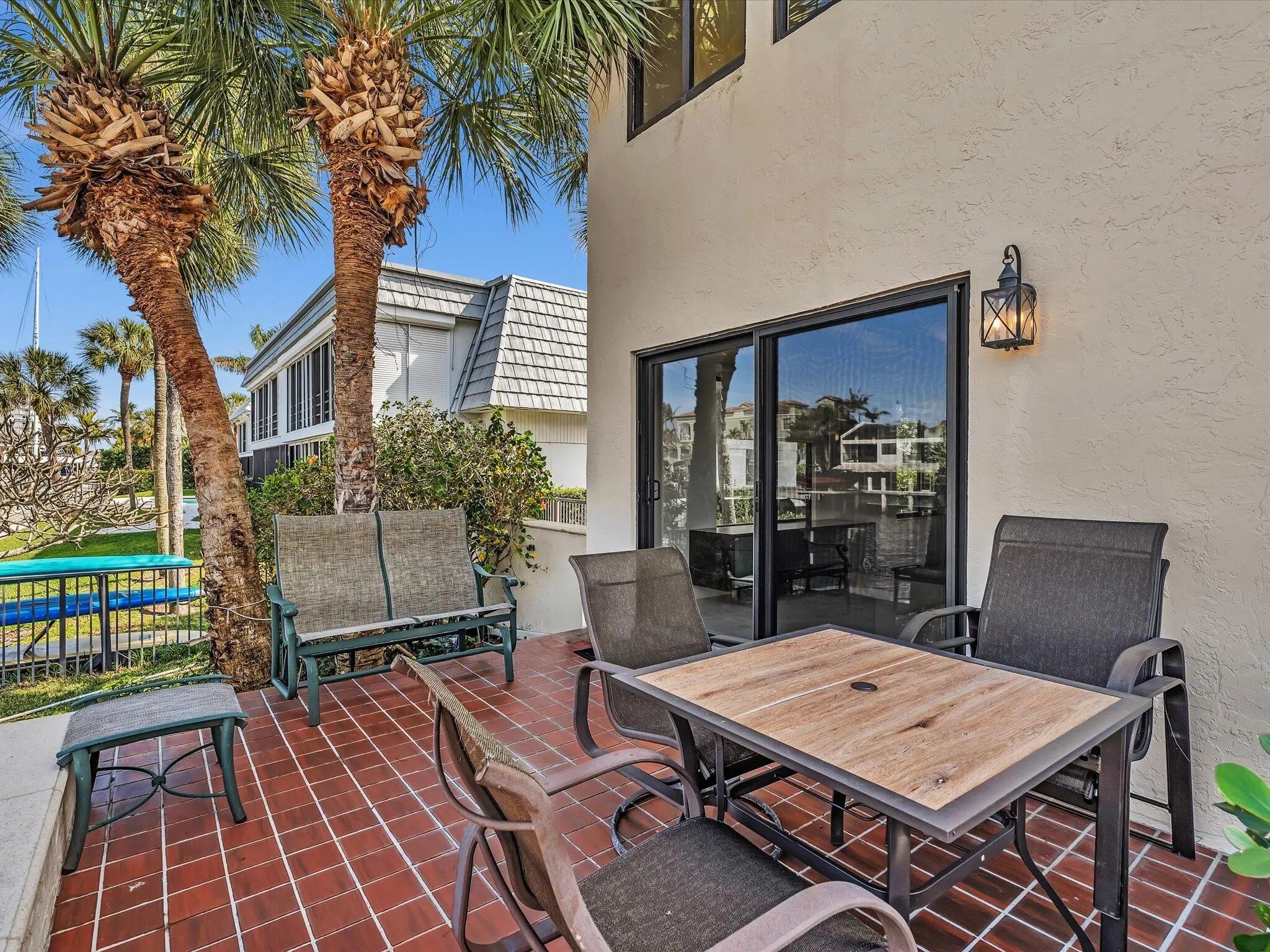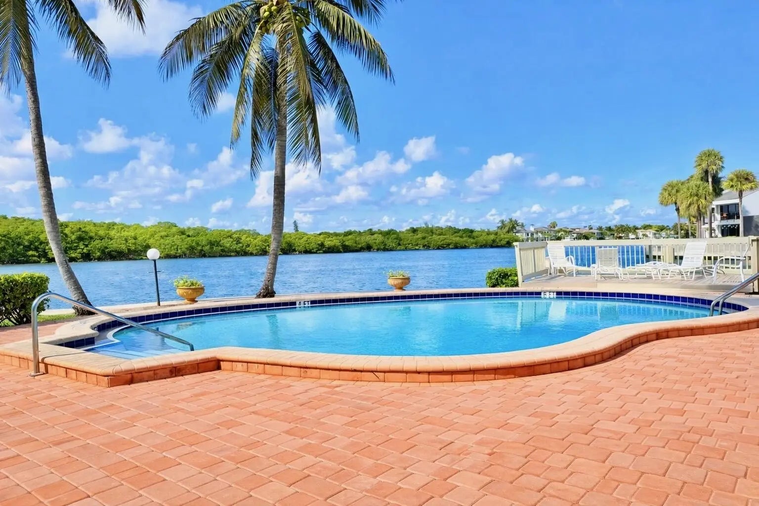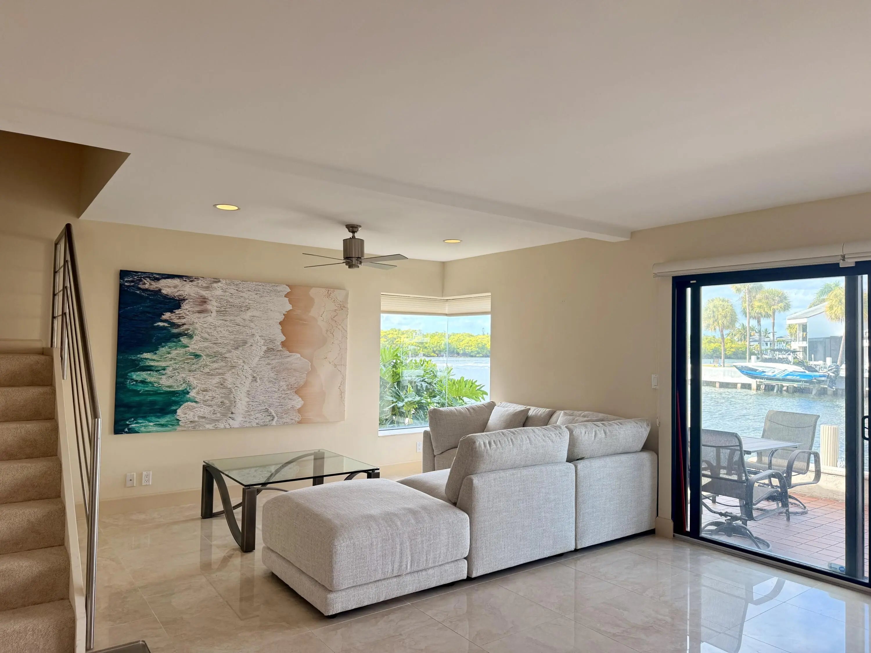 Direct Intracoastal end-unit townhouse with monthly HOA dues of $333. Optional private dockage available to residents for $200 per year. 6-unit community on a point lot with wide water views. Recent improvements include a new roof across all 6 units, impact-resistant hurricane-proof glass, new pilings and reinforcement for the sea wall, new pavers over the sea wall, new dock, new deck, new A/C unit, and new carpeting on the stairs and second floor. NEWER appliances in the kitchen. Very durable top-of-the-line NEWER kitchen cabinets. Waterfront community pool located at the corner of the property. All dimensions and square footage are approximate and should be verified by the buyer or buyer's representative. The primary bedroom was extended in 1984.